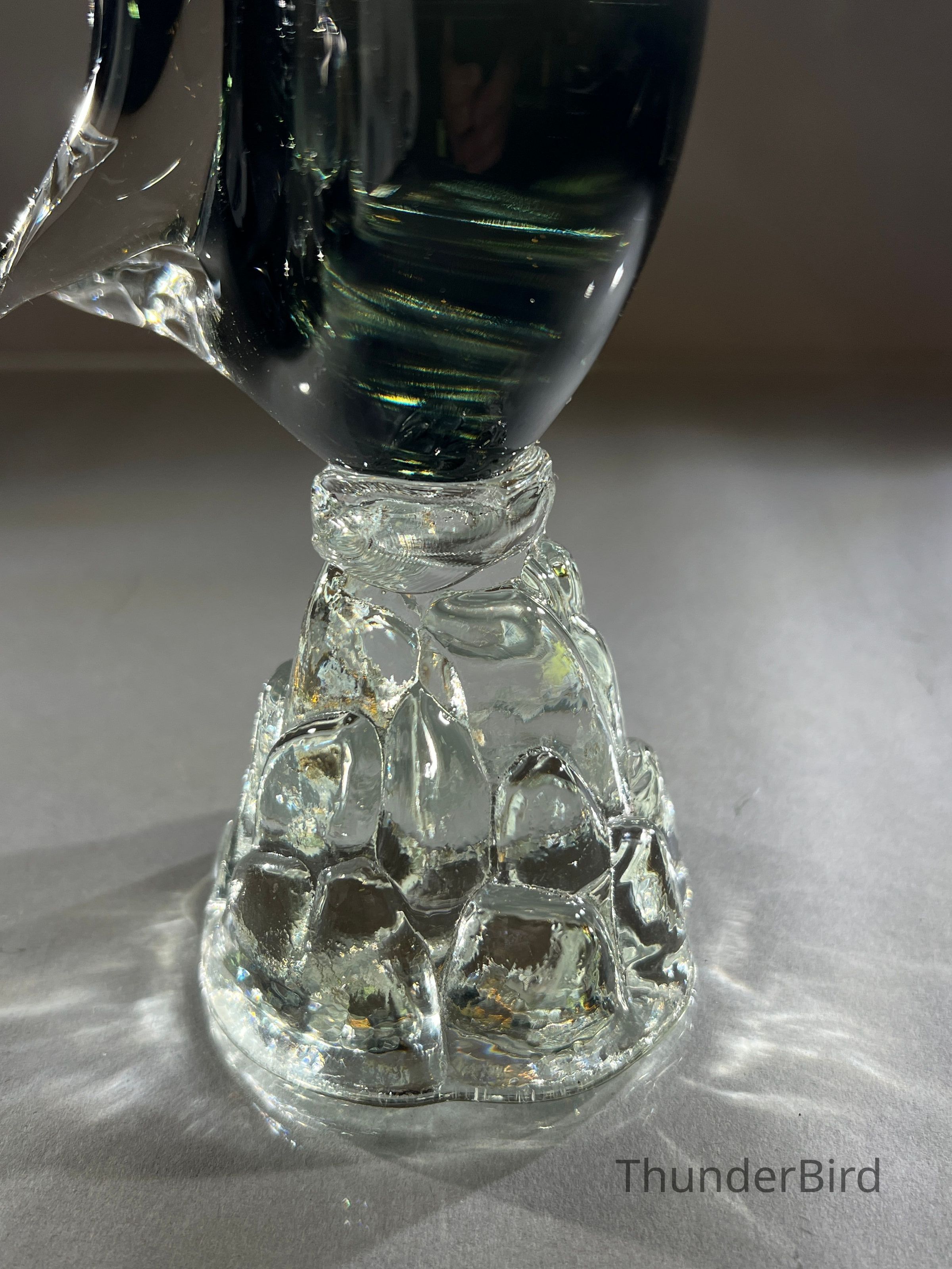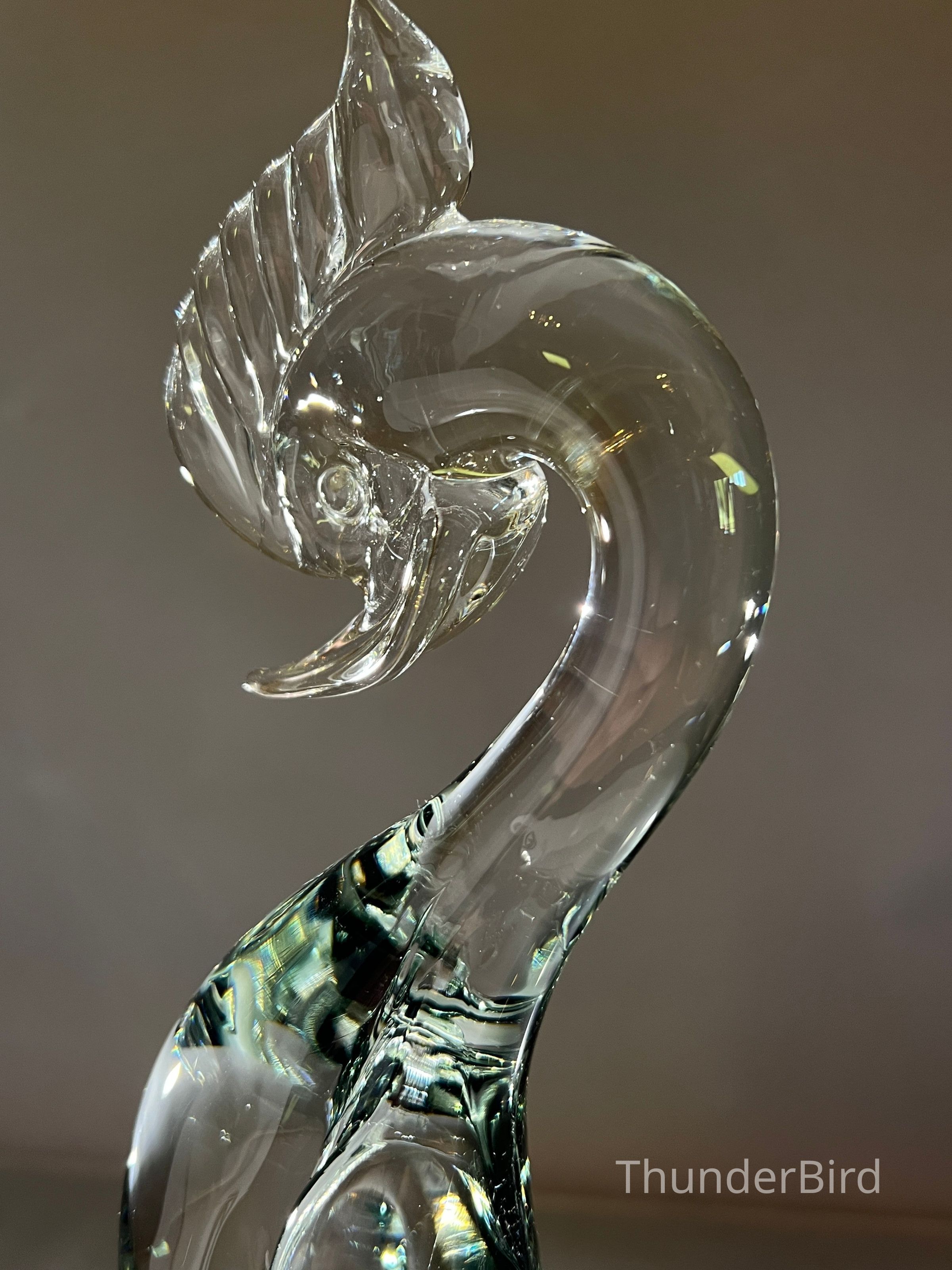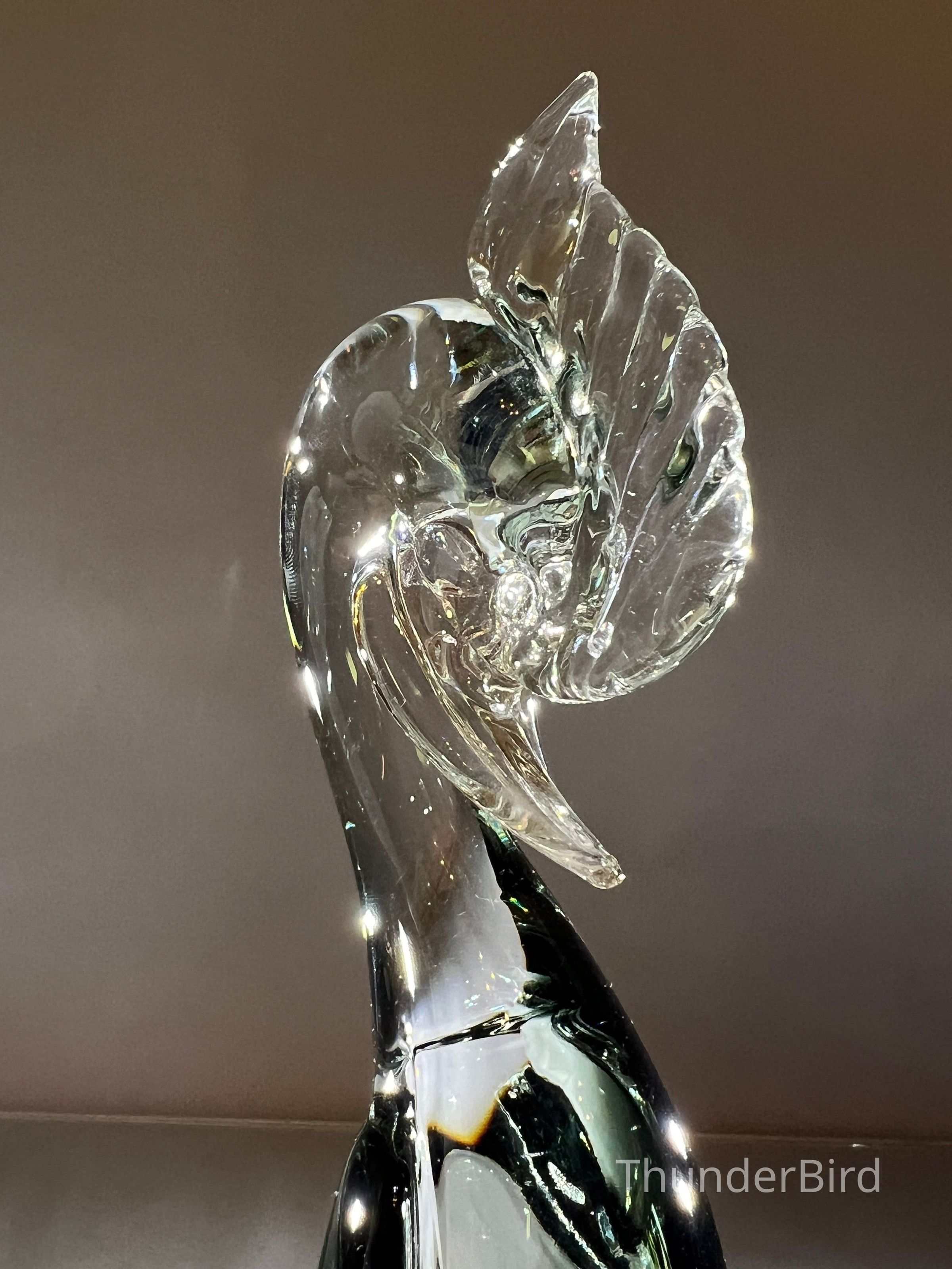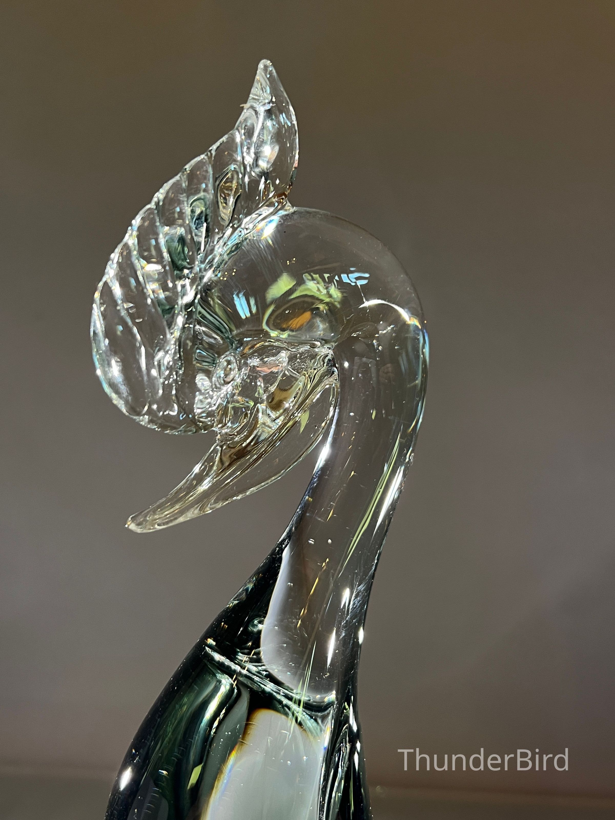 Large Mid-Century Murano Crested Bird – Clear & Smokey Grey GlassEntry/Object ID