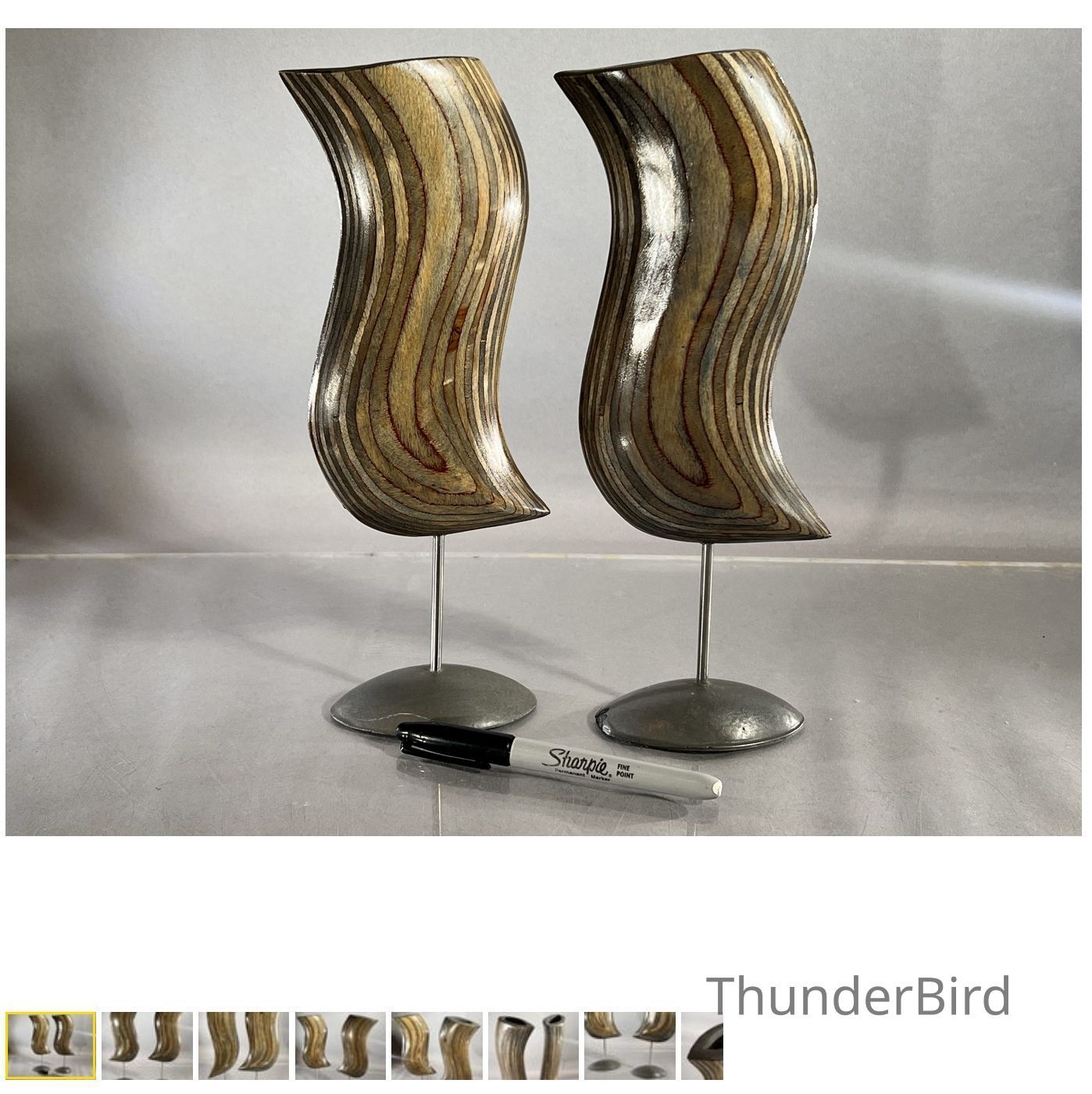This stunning pair of laminated wood sculptures showcases Borrie’s signature style, blending organic texture with modern design. The fluid, wavelike patterns in each piece echo nature's chronology, highlighting the beauty of natural materials. These are perfect for collectors who appreciate exceptional craftsmanship and contemporary artistry.