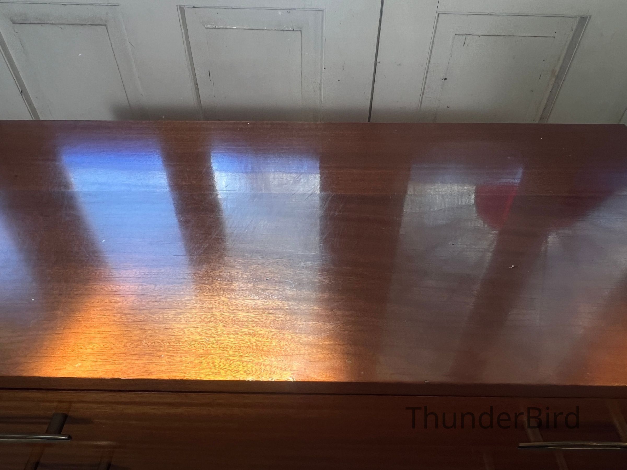 Very good original vintage condition with light surface wear consistent with age. Minor scratches and scuffs to the top, all drawers run smoothly. Structurally solid and presentable for everyday use.