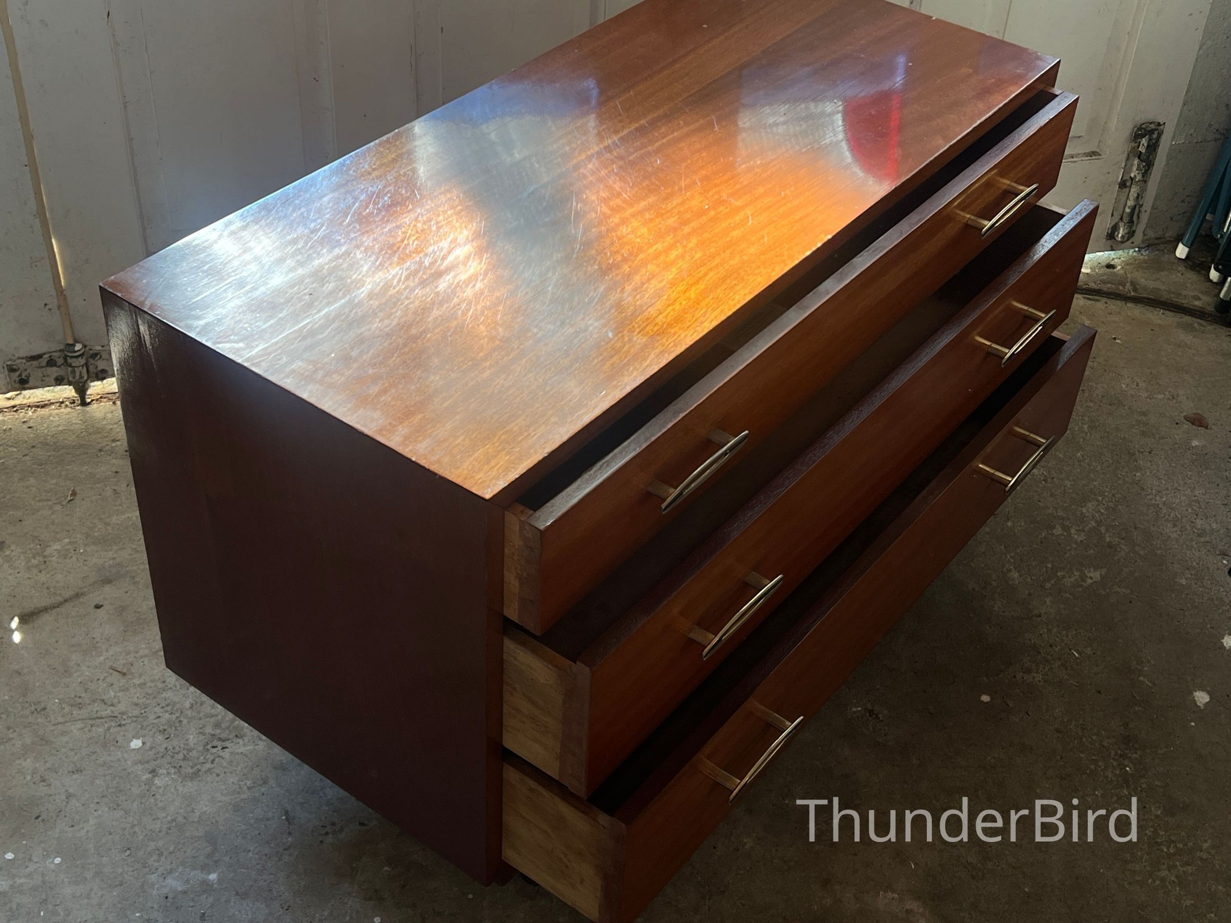 A classic New Zealand-made midcentury lowboy by Fowler, Drummond & Waddell Ltd, Hastings, labelled ‘Design No. Loretta’. The simple linear form and warm wood grain reflect timeless 1960s design aesthetics and quality NZ craftsmanship. Ideal as bedroom or hallway storage.