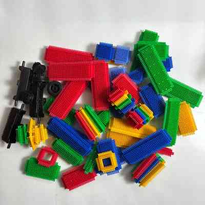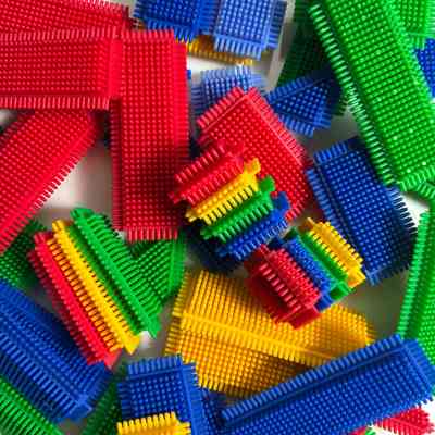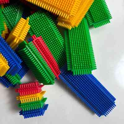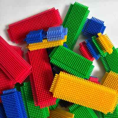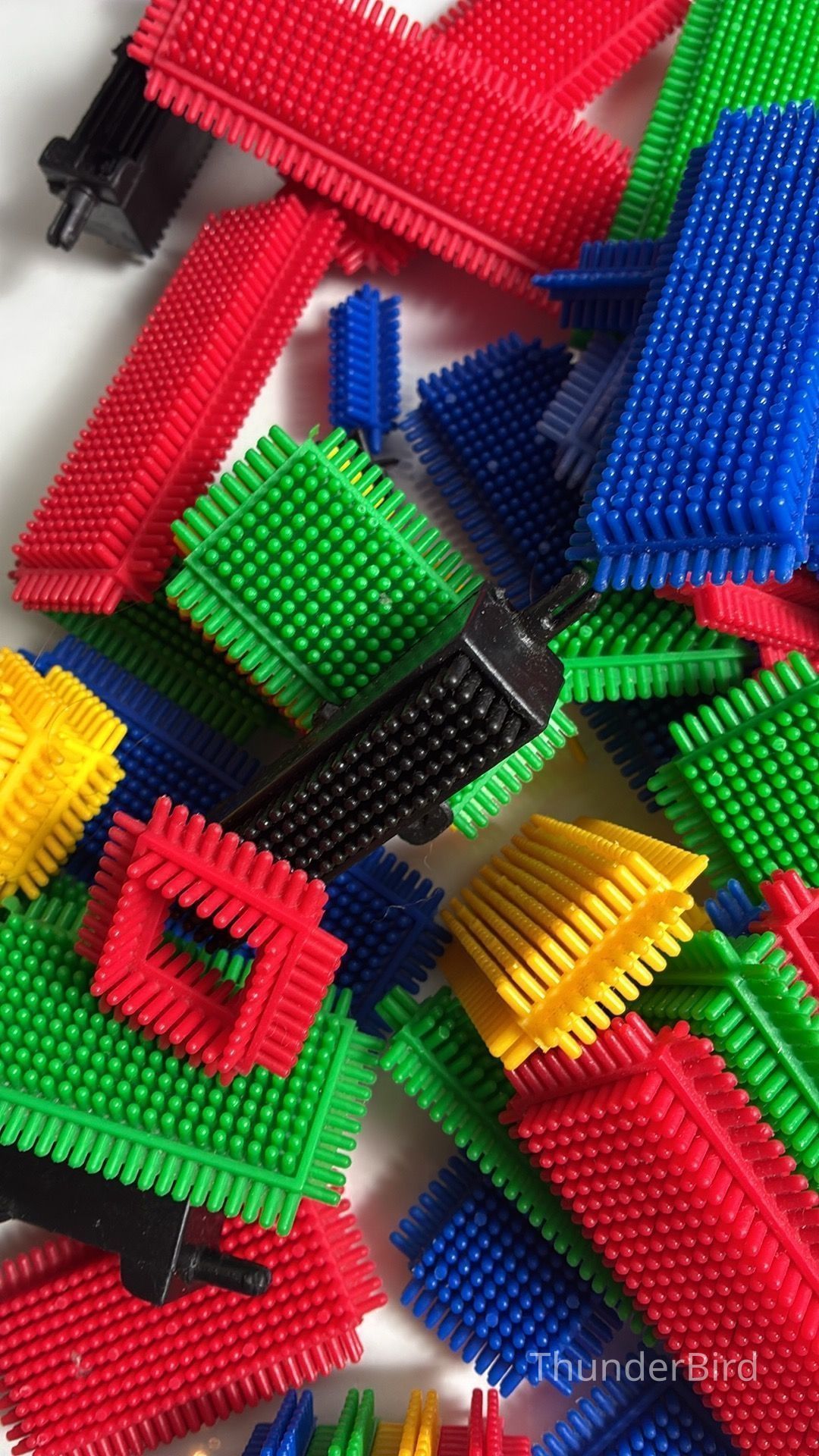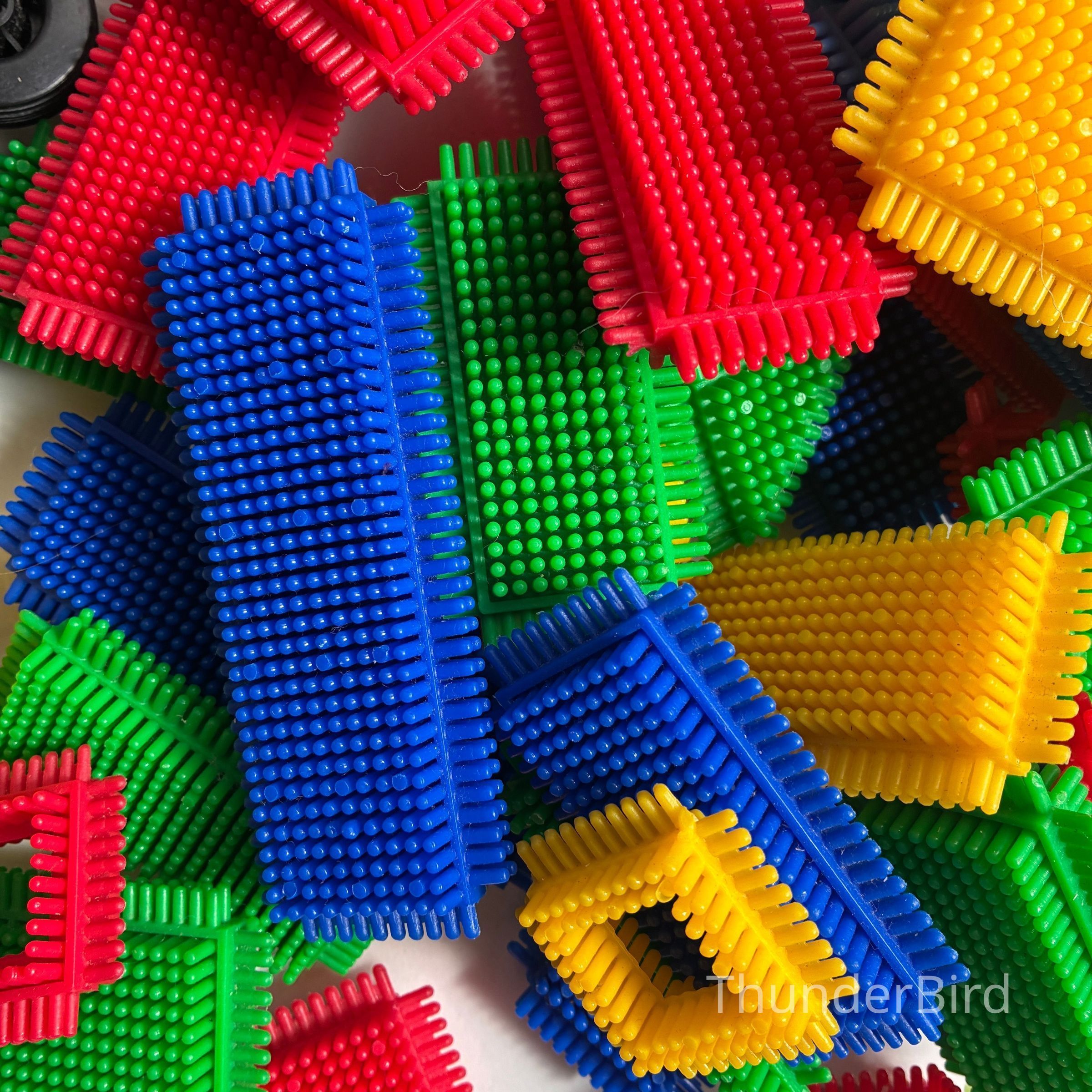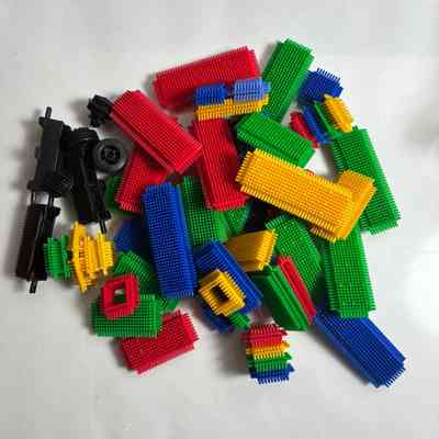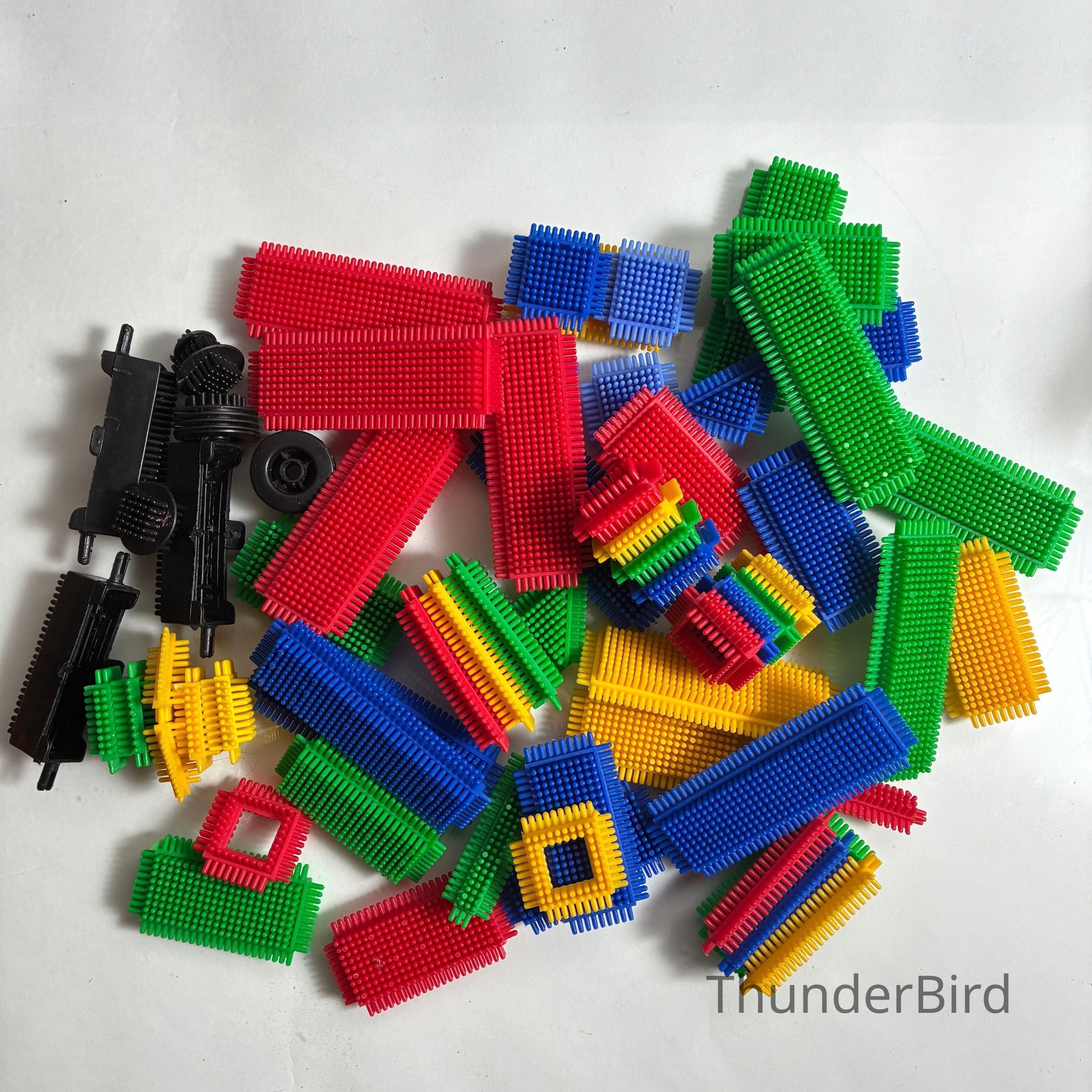 COOL bag of Vintage Playskool Bristle Blocks/Stickie Blocks. These iconic building blocks, introduced in the 1960s, feature soft, flexible bristles that interlock to create endless structures. Let these blocks inspire creativity and fine motor skills as you relive the joy of childhood play. Unleash your imagination and rediscover the magic of these very fun creative toys.