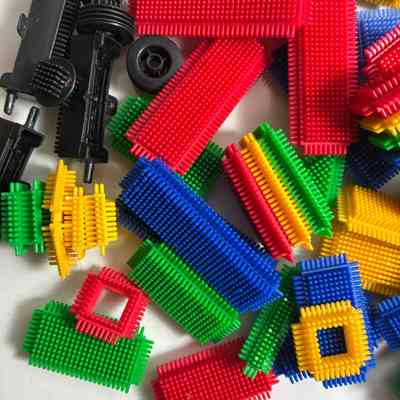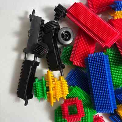The Vintage Playskool Bristle Blocks in this bag are in good vintage condition. Please review the provided photos for a closer examination of their condition.