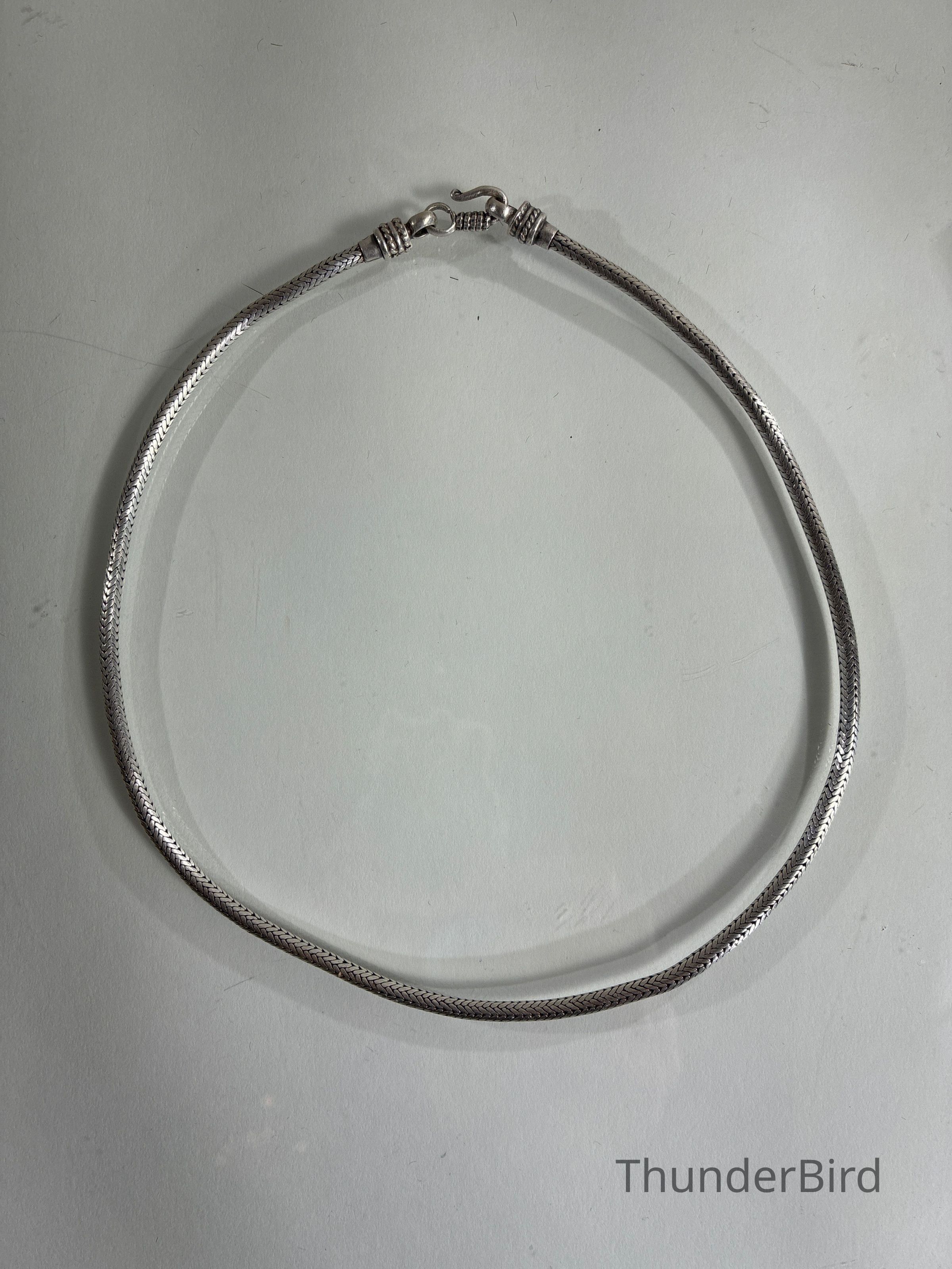 The necklace bears a small “G.S” mark to one end, likely the silversmith’s initials. This style is consistent with high-quality export jewellery made for Western markets, appreciated for both its craftsmanship and wearable modern style.