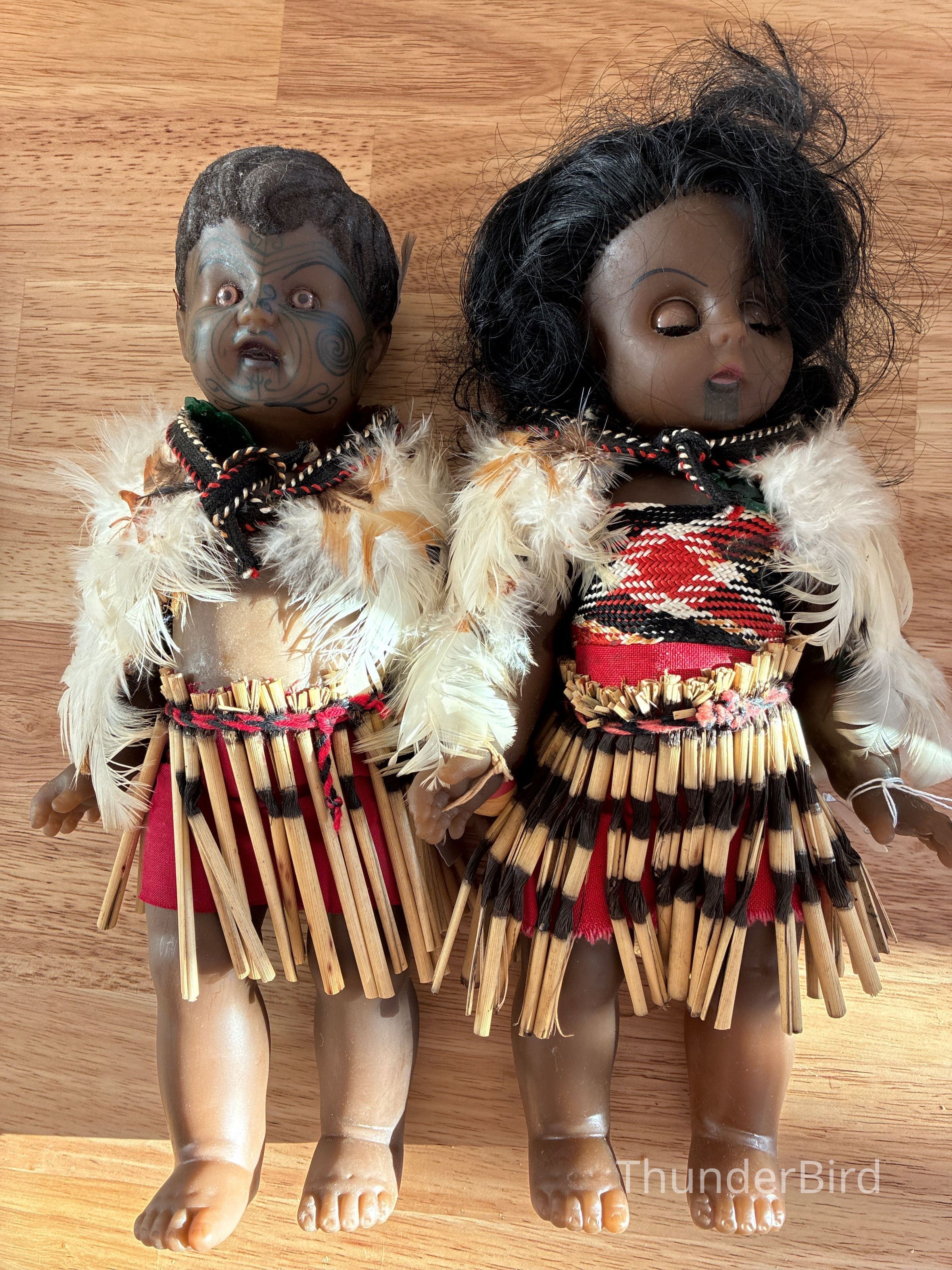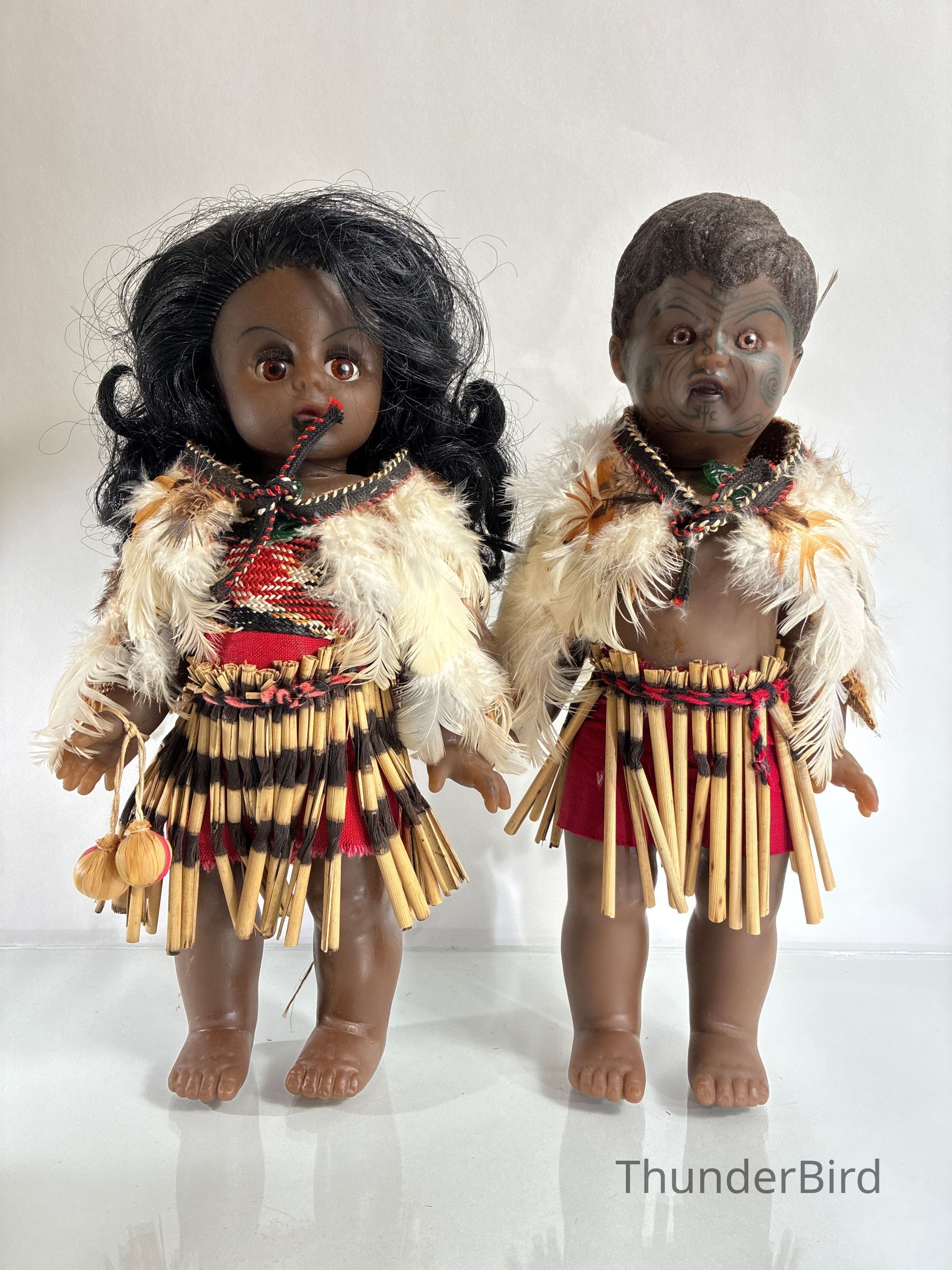 26.8.25b Rare Pair of Maori Dolls in Traditional Dress – Circa Mid-20th CenturyEntry/Object ID