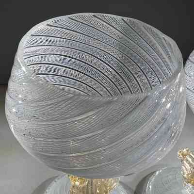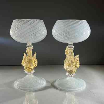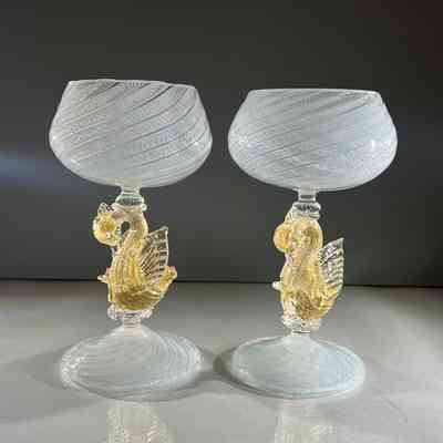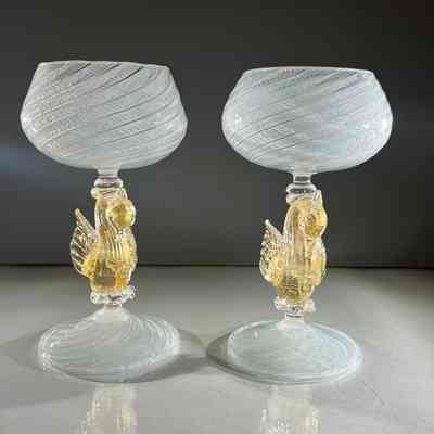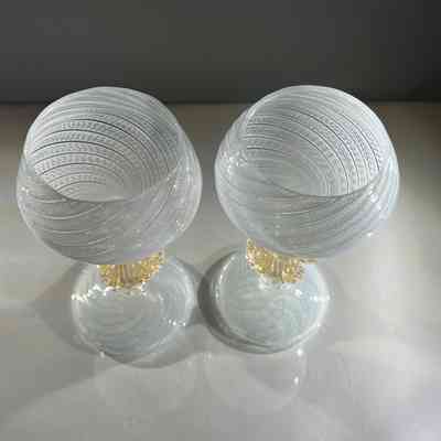 9.12.25f Vintage Murano Glass Swan Stem Wine Goblets Garza Cane Pair c1950s (Pair 2)Entry/Object ID