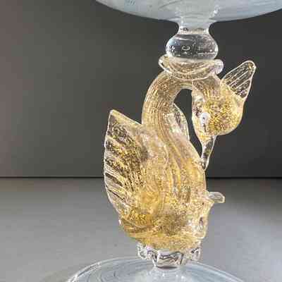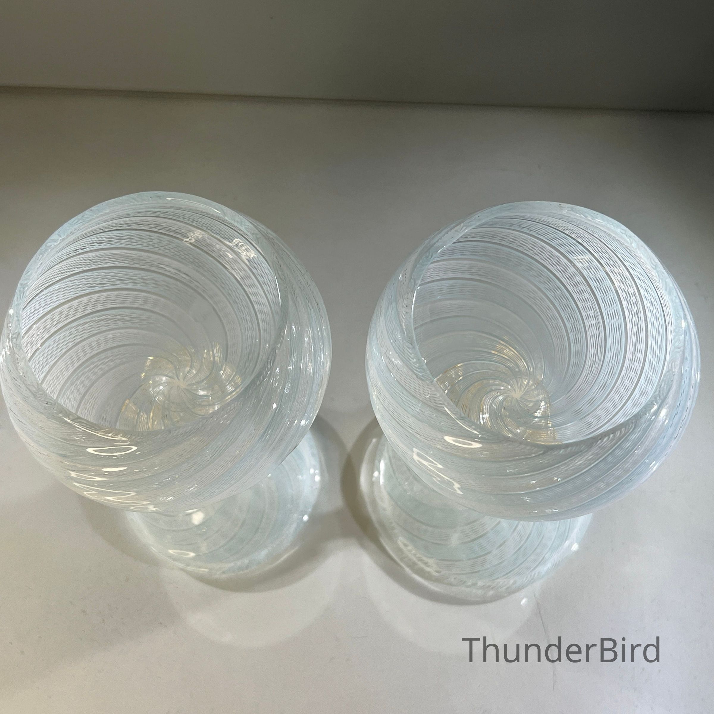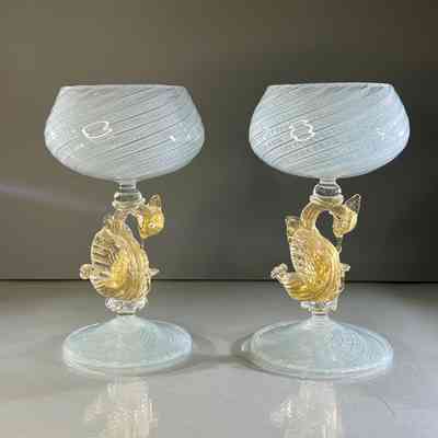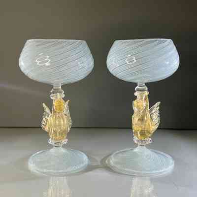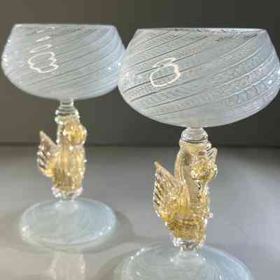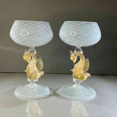 9.12.25g Vintage Murano Glass Swan Stem Wine Goblets Garza Cane Pair c1950s (Pair 1)Entry/Object ID