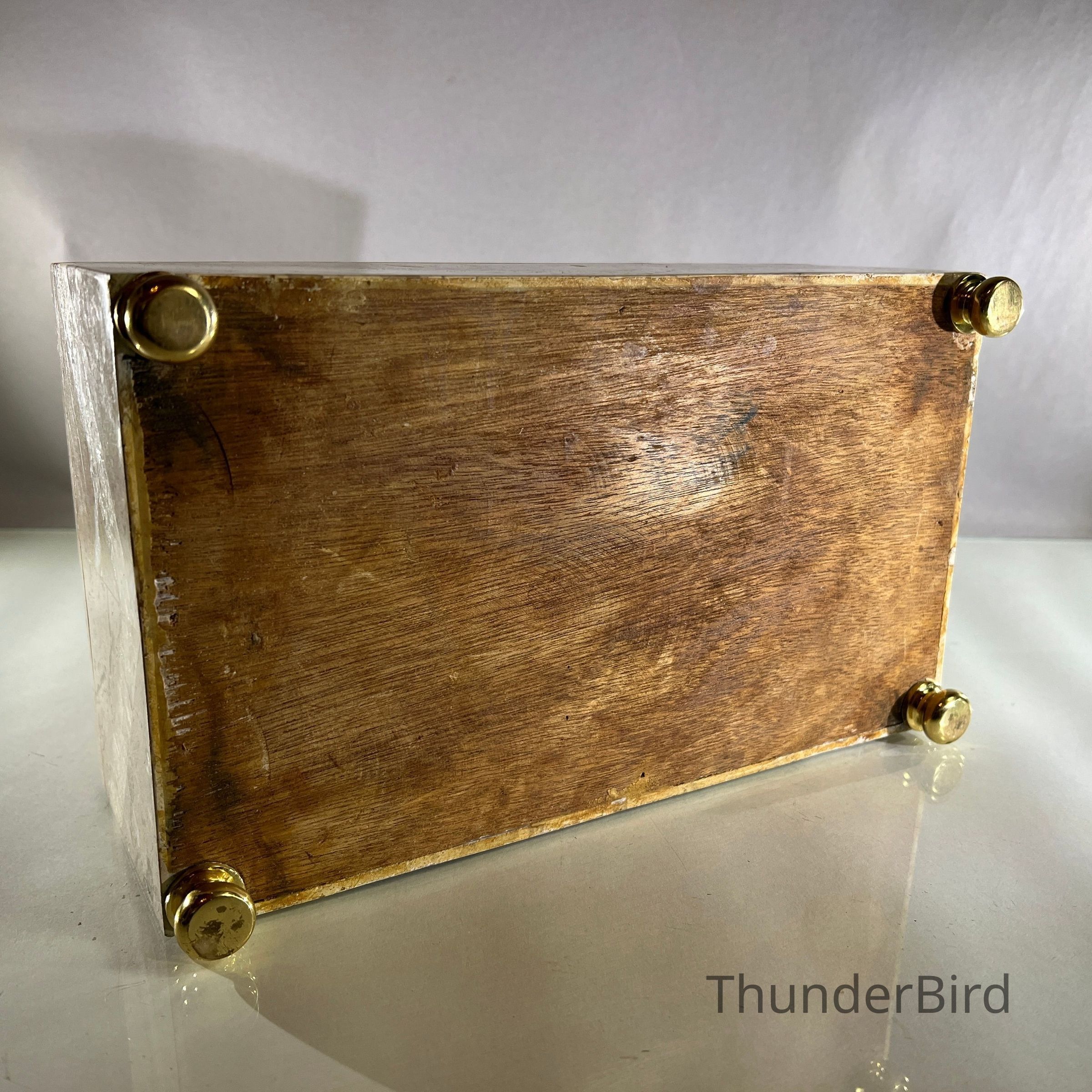Good vintage condition overall. There is light surface wear and minor marks consistent with age and careful use. Stone panels are intact with no obvious losses. Brass elements show patina & could be polished.