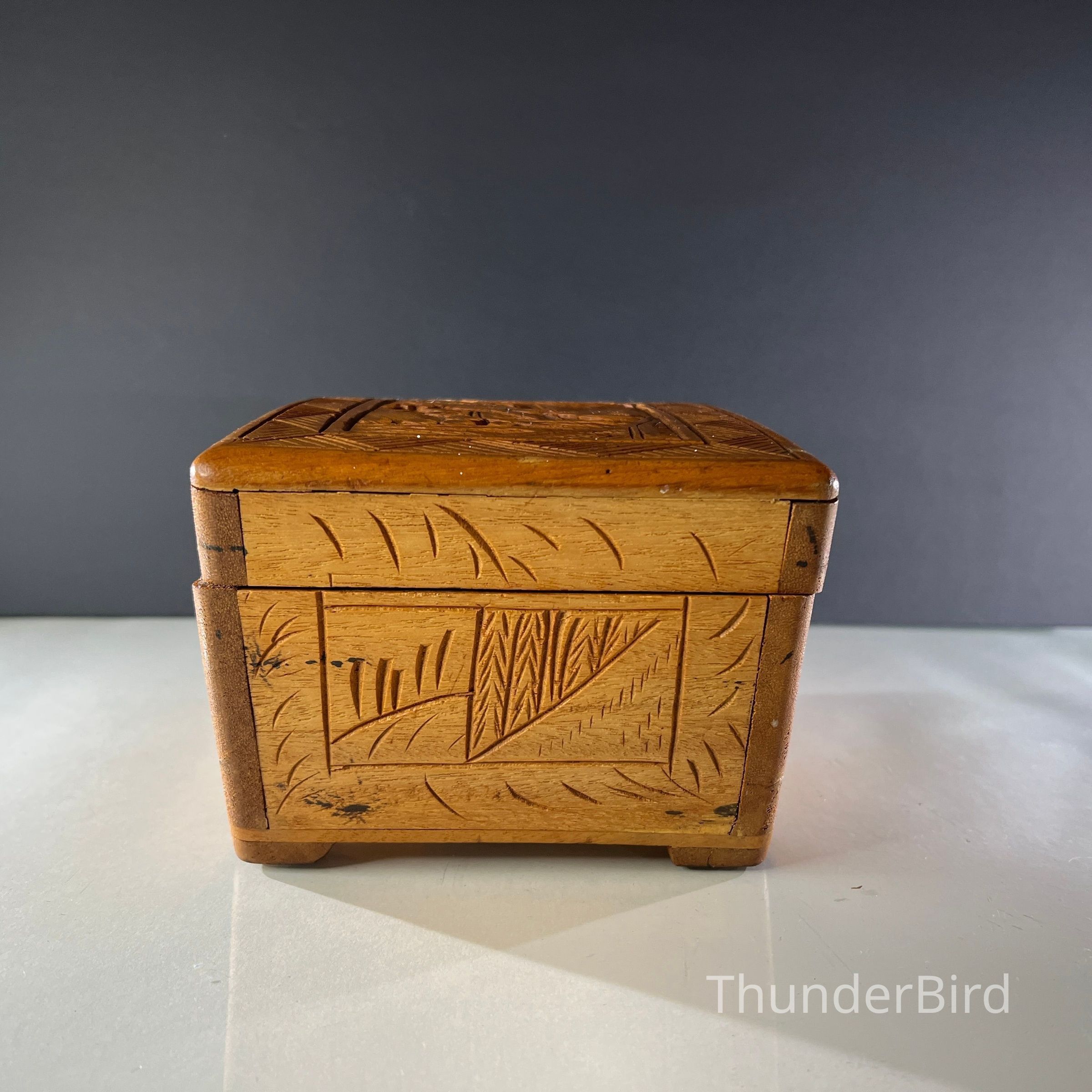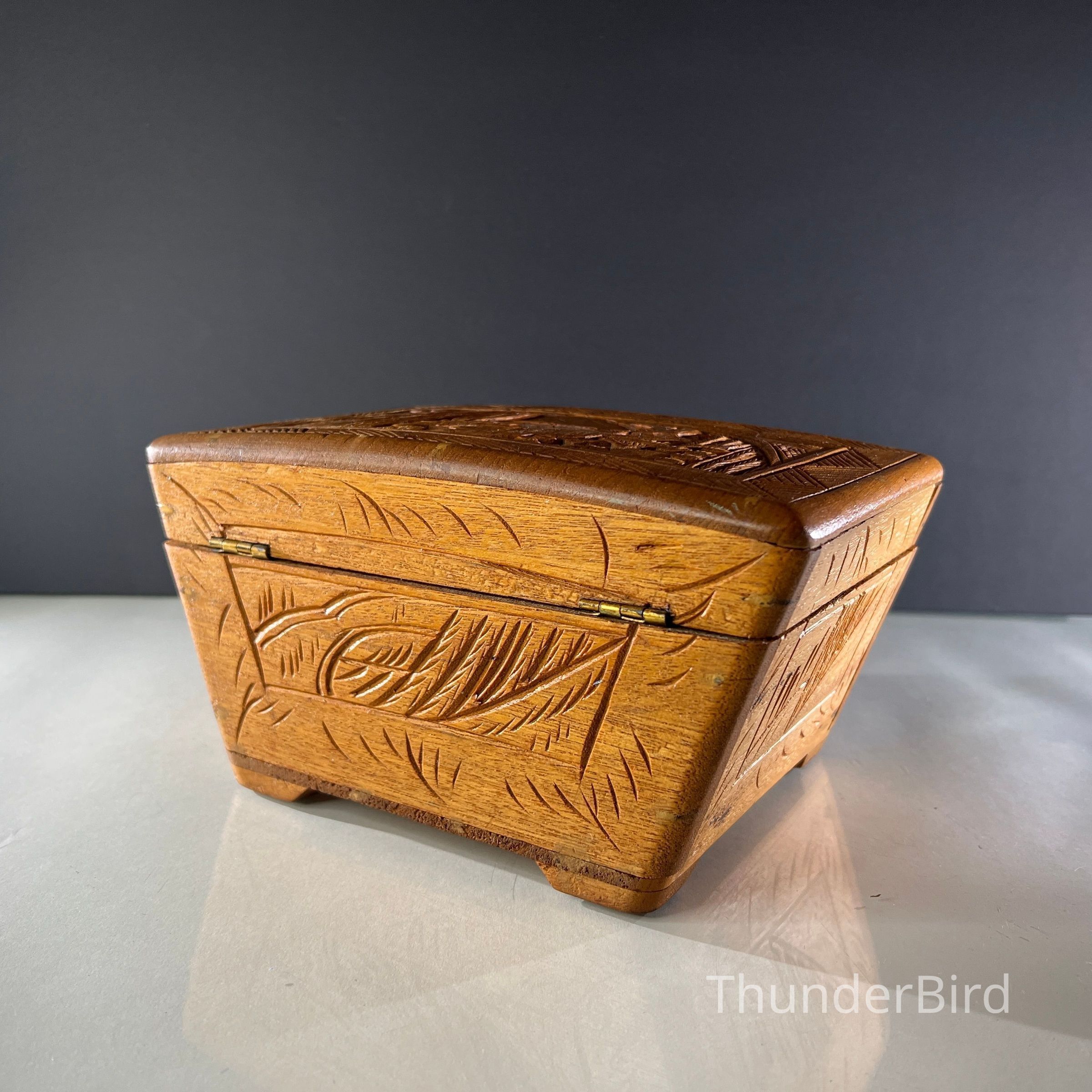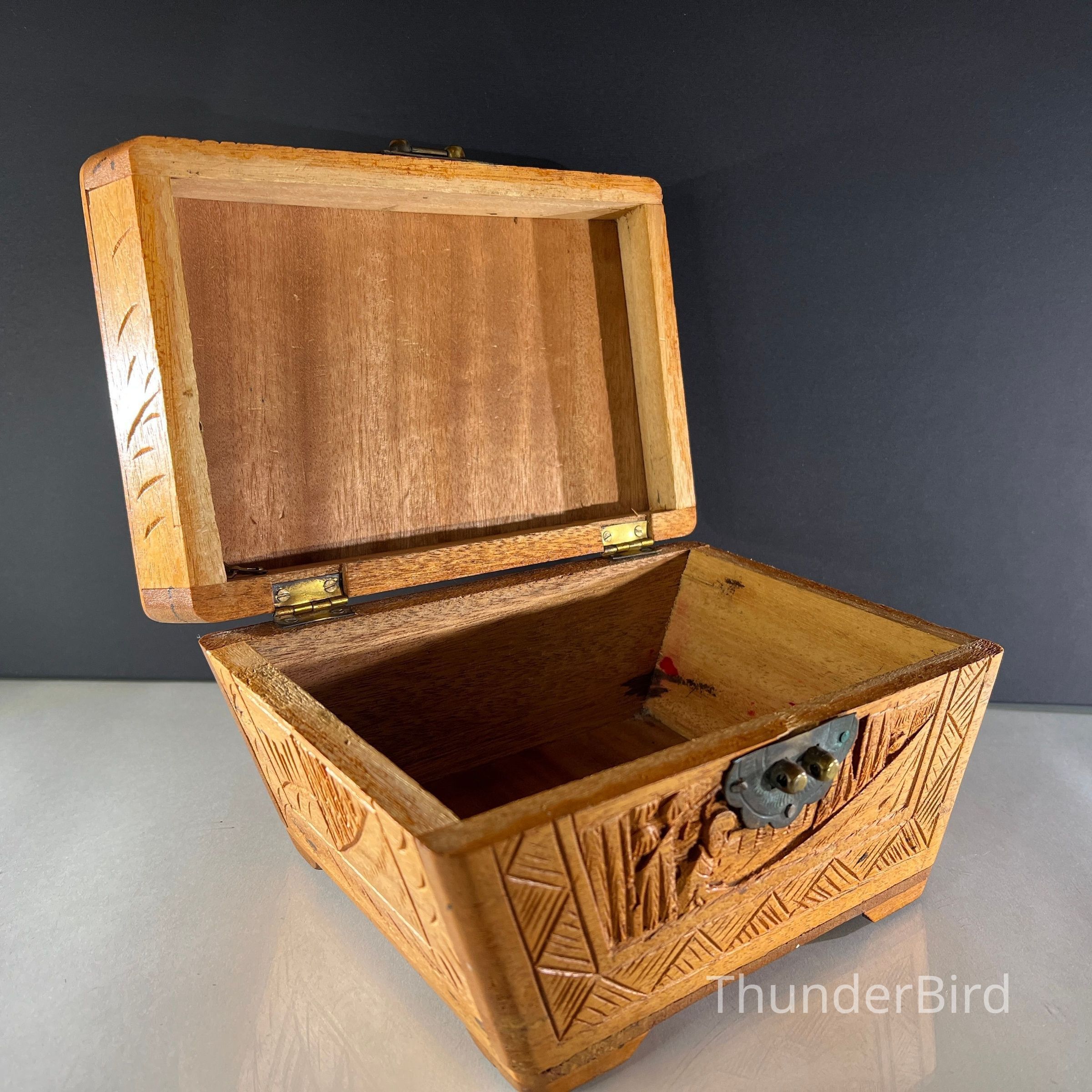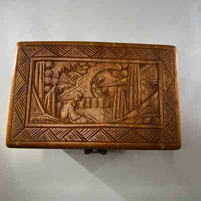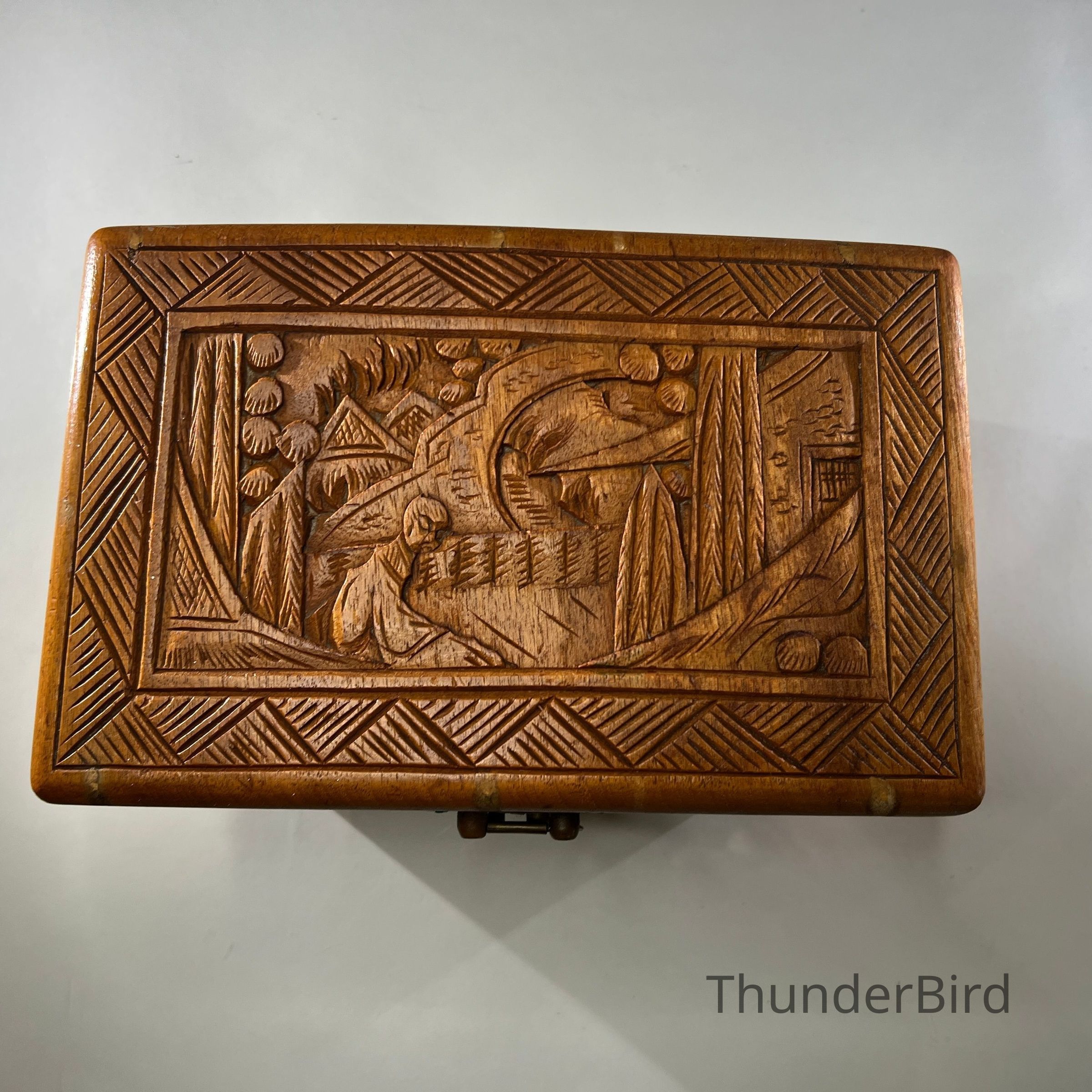 9.2.26a Vintage Hand Carved Chinese Camphor Wood Jewellery Box With Brass LockEntry/Object ID