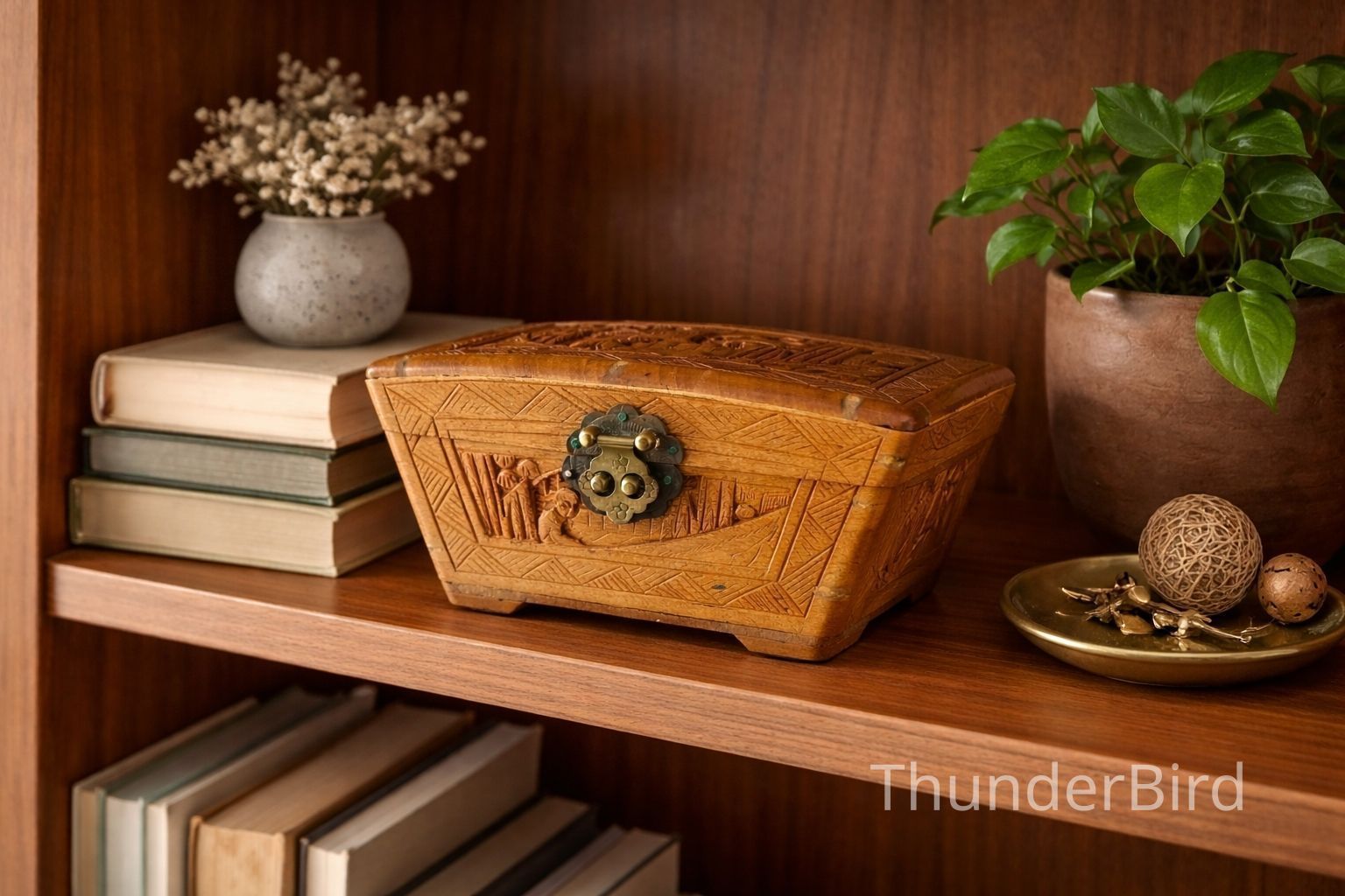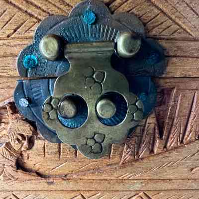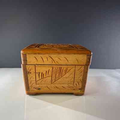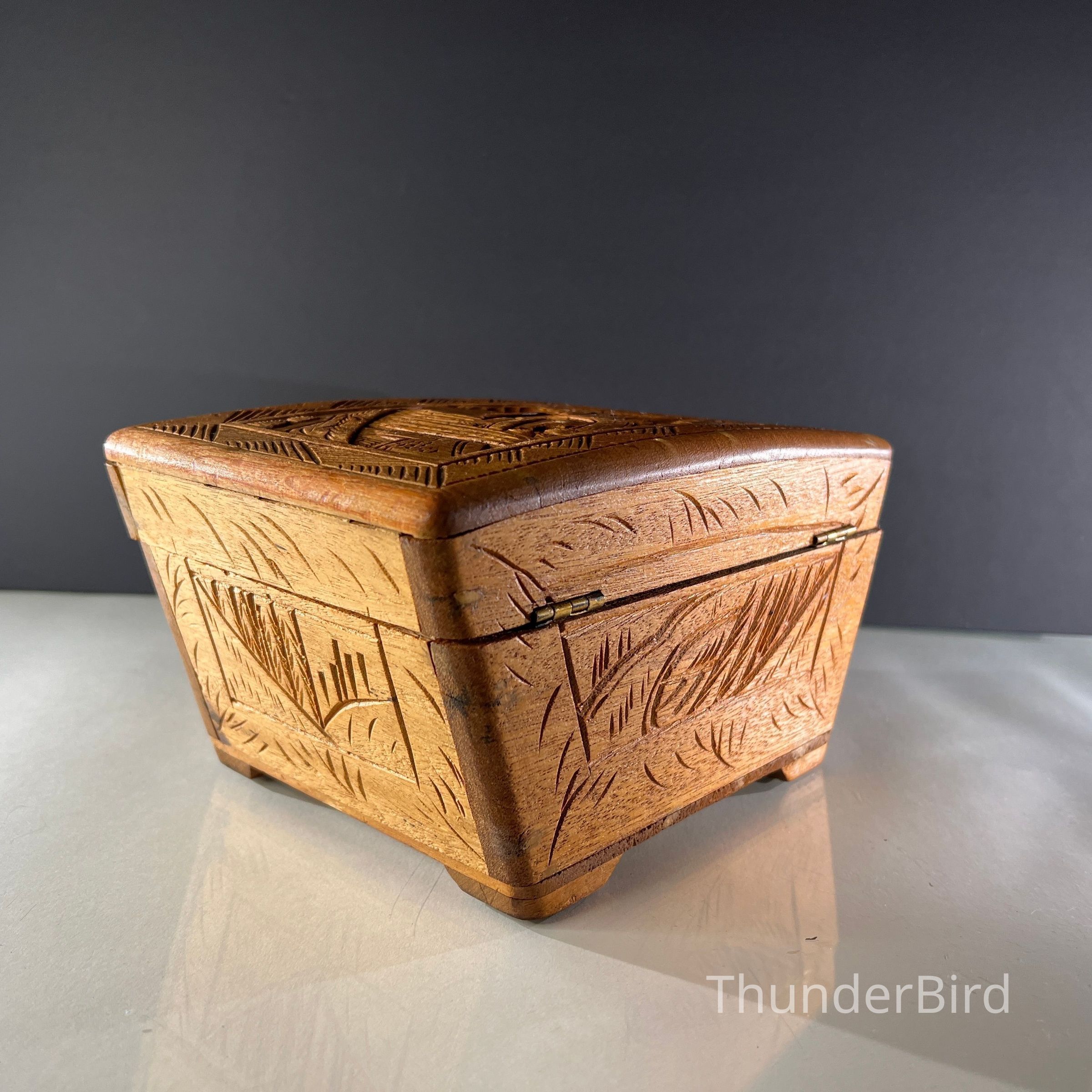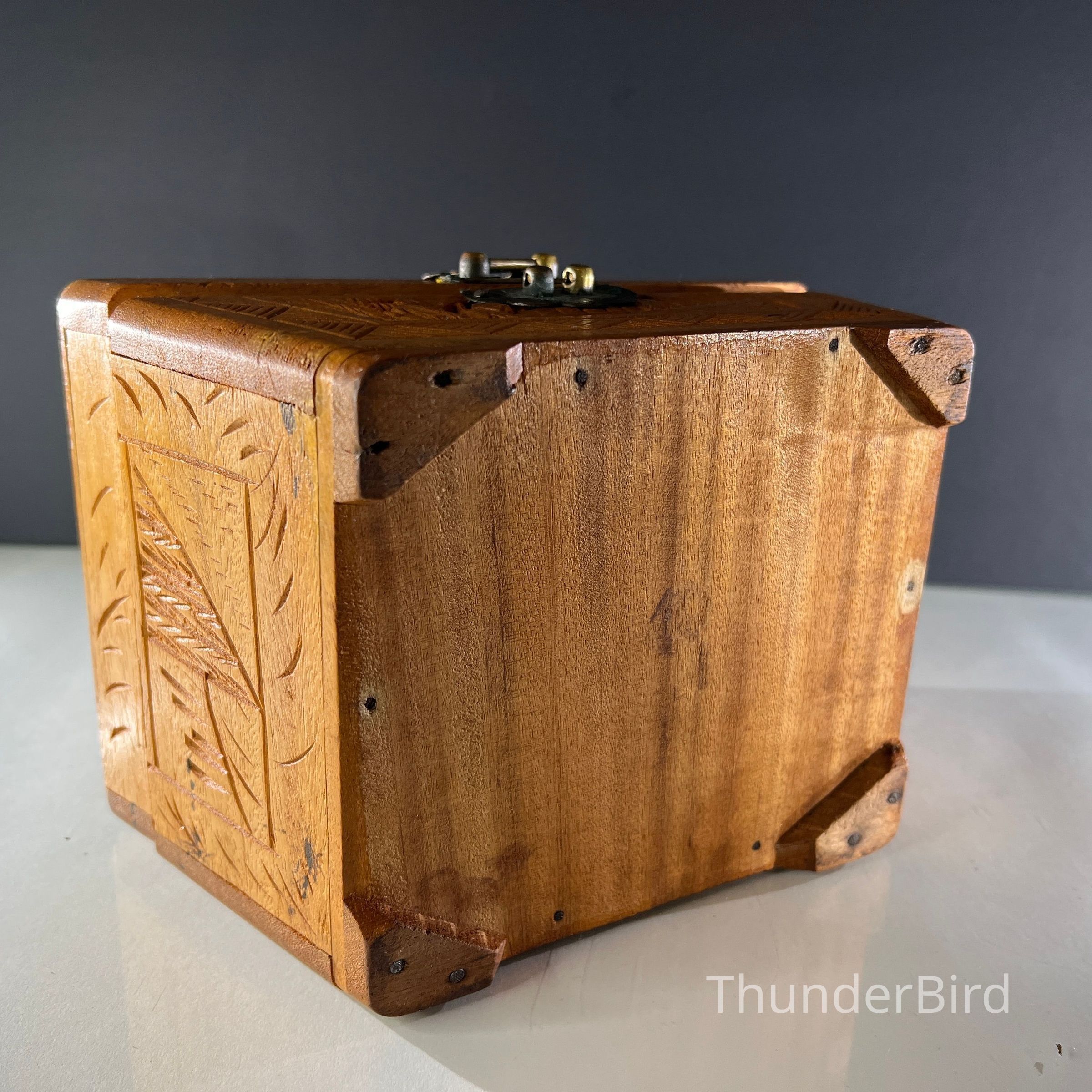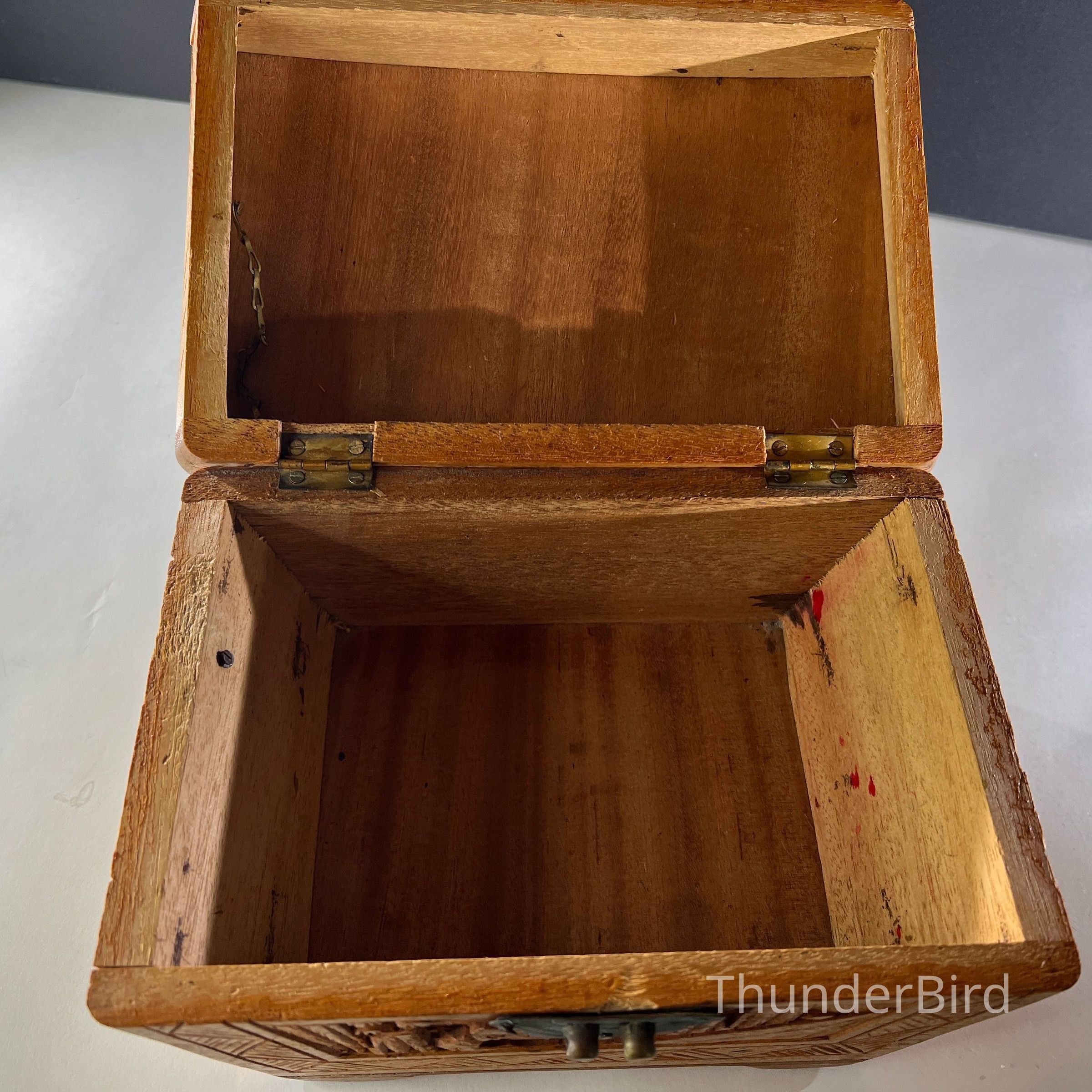 9.2.26a Vintage Hand Carved Chinese Camphor Wood Jewellery Box With Brass LockEntry/Object ID