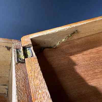 Good vintage condition. General age related wear including minor surface marks, small scuffs and light edge wear. Brass clasp shows natural patina. Interior clean and solid. The chain that attached the lid to the main box has broken - it is unneeded & is an easy fix. Please refer to photos.