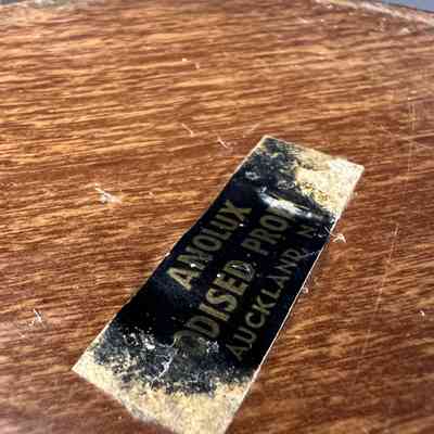 In good vintage condition. Light surface scratches to the anodised aluminium consistent with age and careful use. Timber base and central detail show minor wear. Original label present but worn.