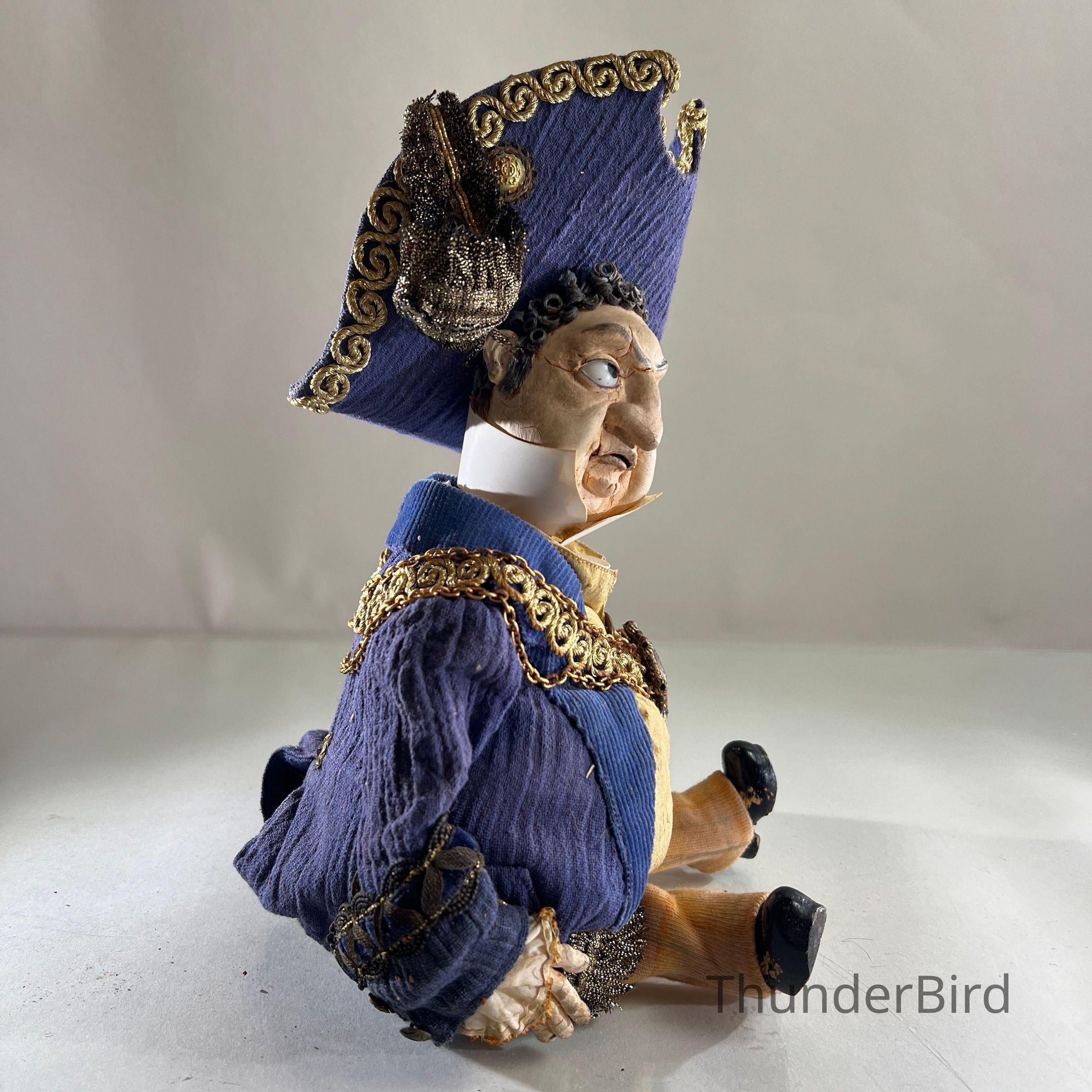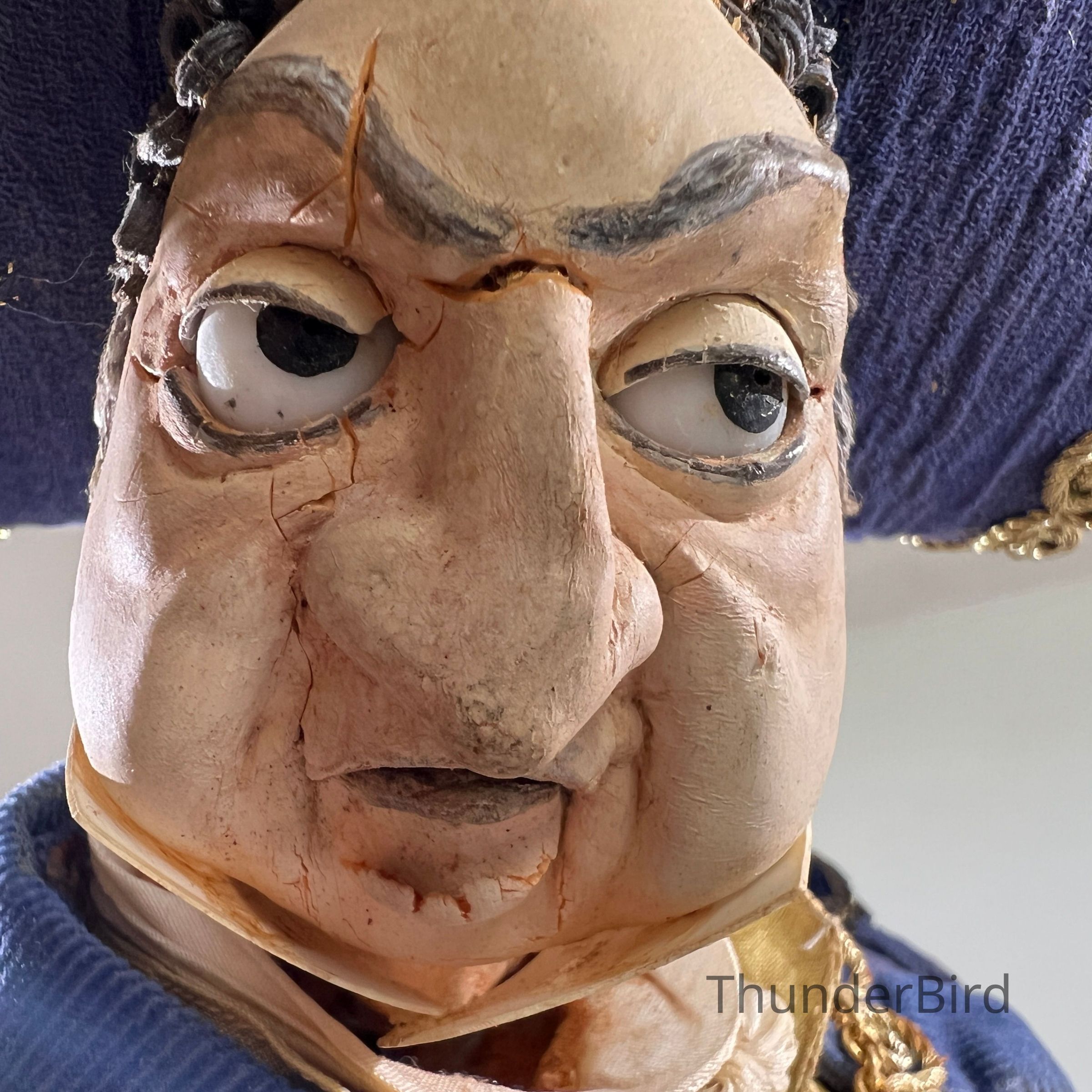 This puppet was part of a large group of original pieces donated by Platt to a local charity. Many were in poor condition or lacked identifying information. As a former colleague of Platt, I hand-selected the most distinctive and evocative examples to preserve as collector items—museum-level works of craft and cultural legacy.