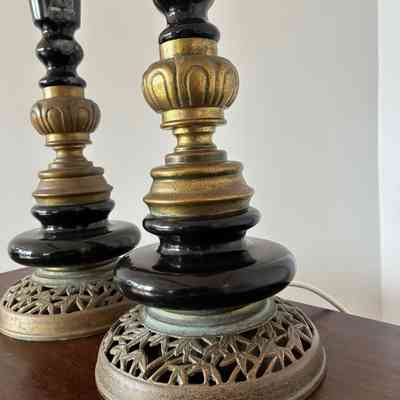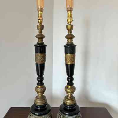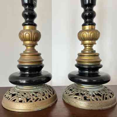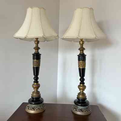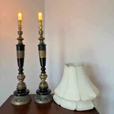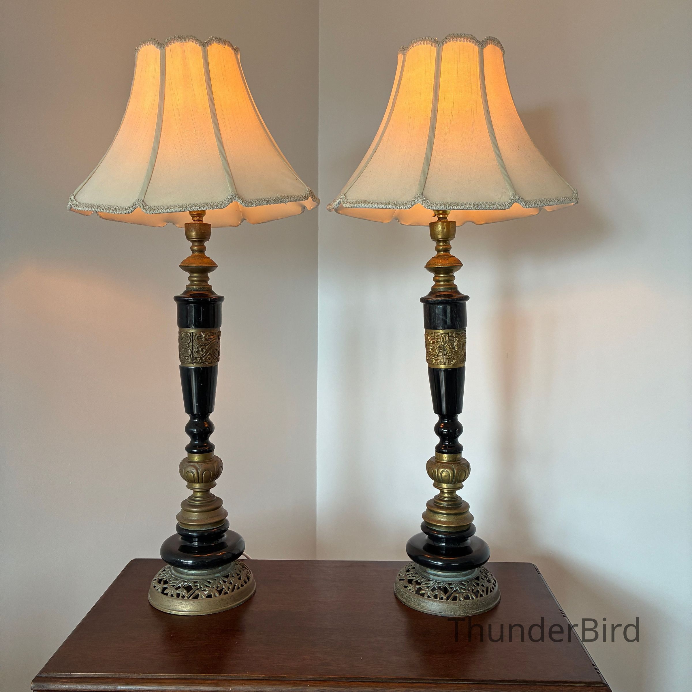 The pair comes with possibly original vintage shades. Each lamp has been rewired in the recent past and is in working order.