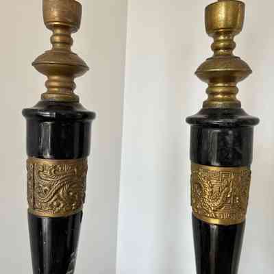 20.5.25K 1950s Bronze & Italian Marble Table Lamps – Attr. James Mont in Marbro StyleEntry/Object ID