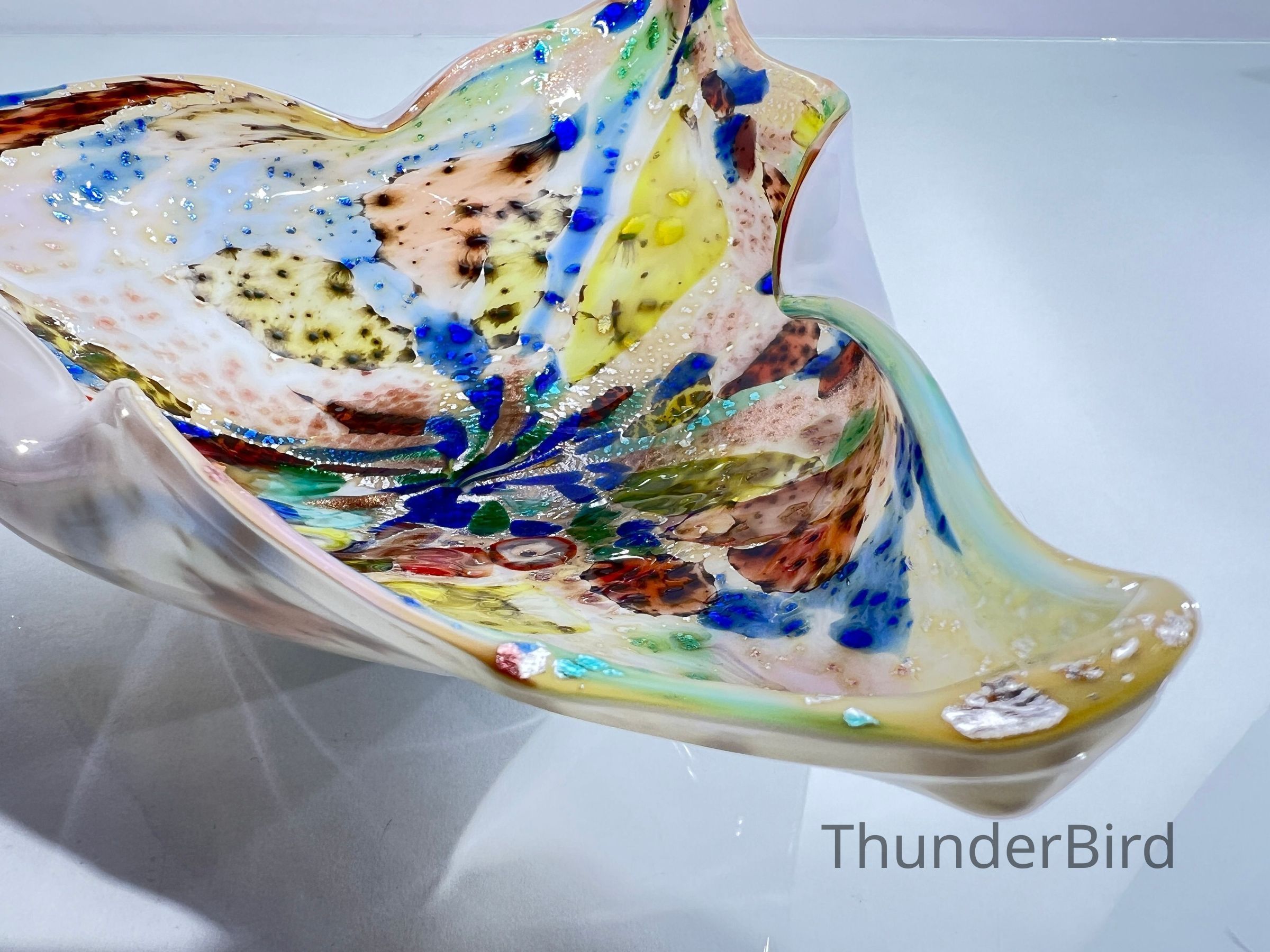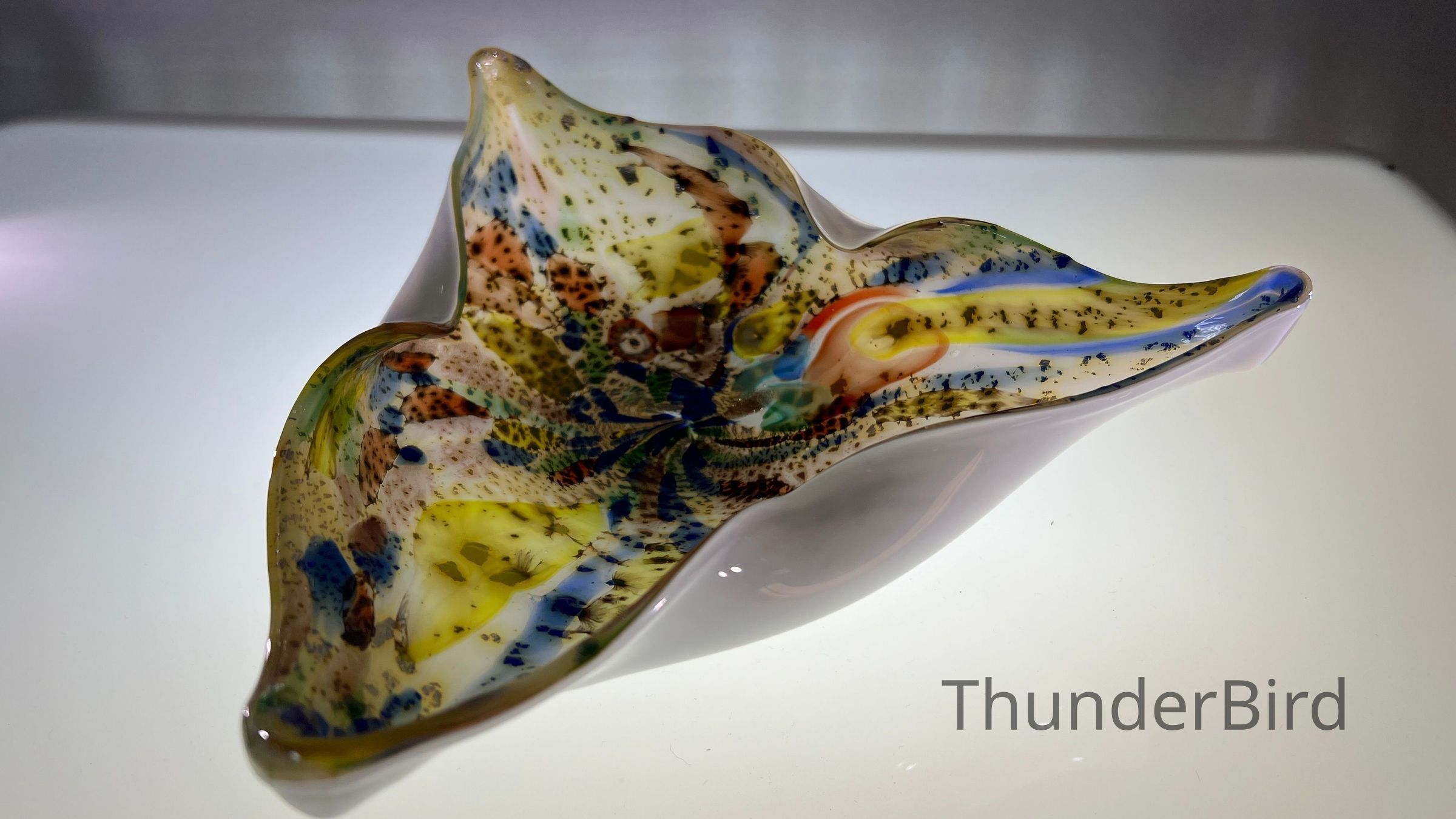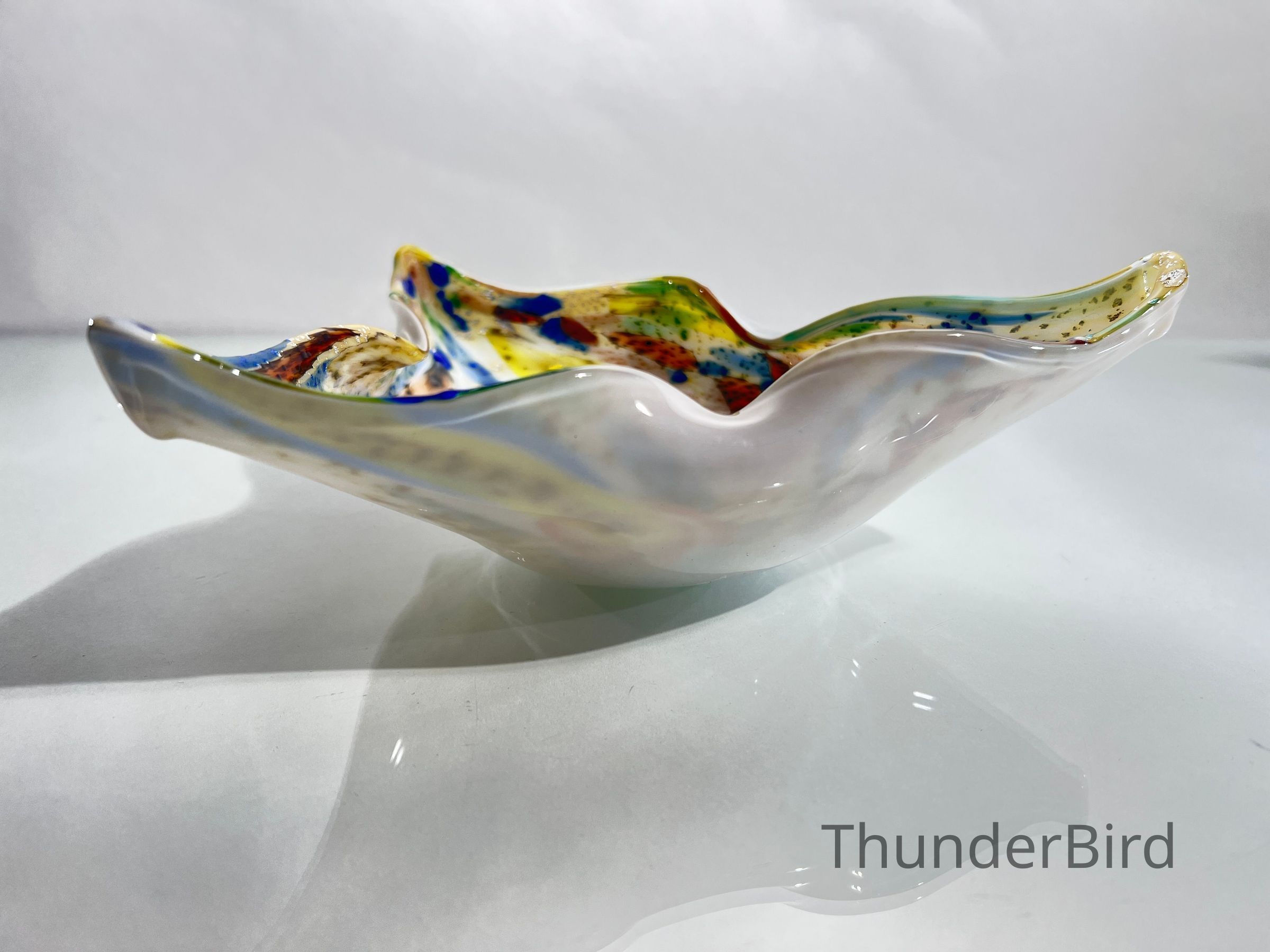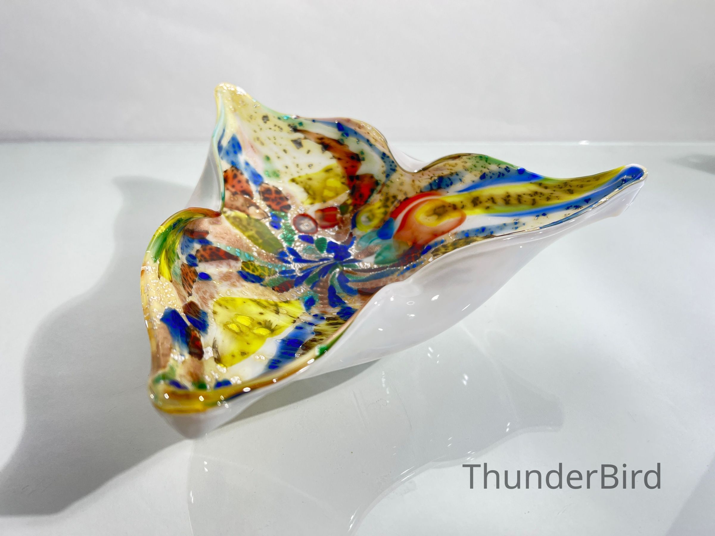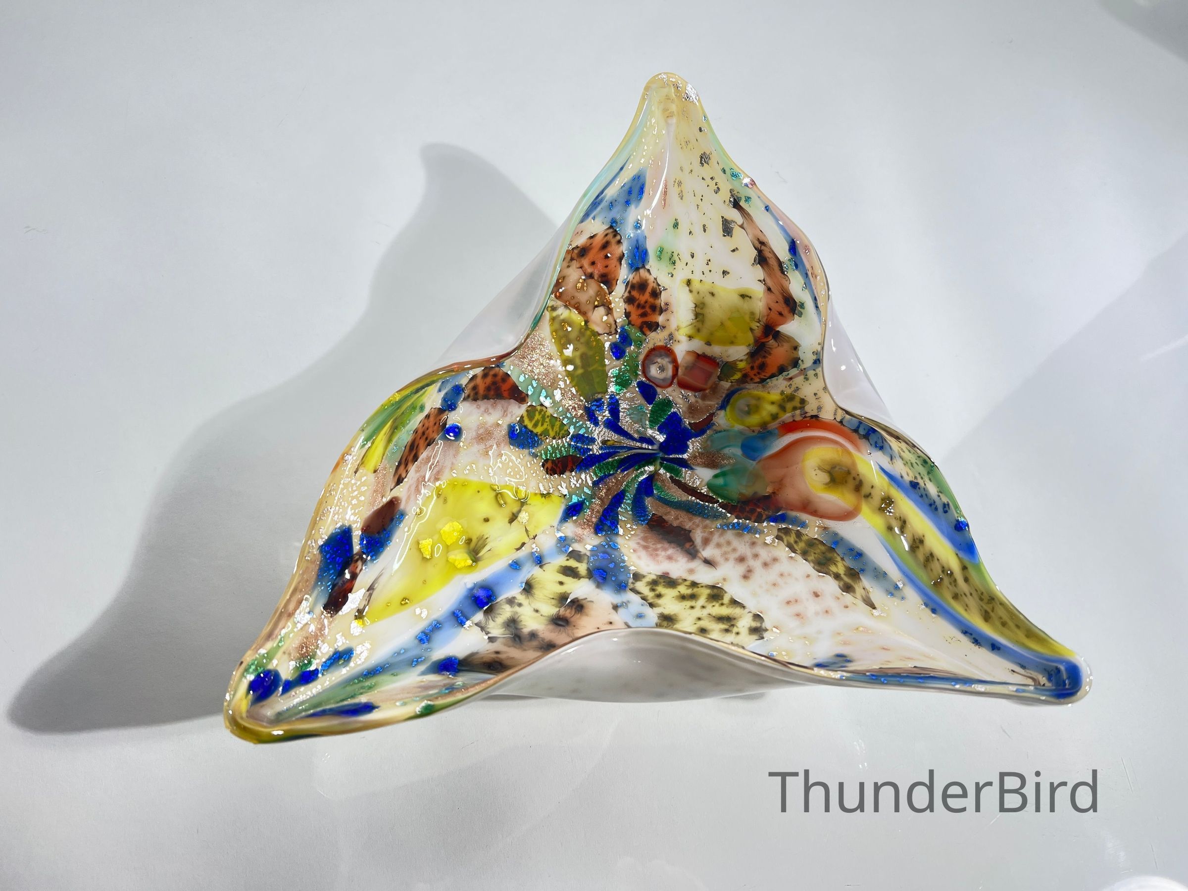 21.4.25a Murano Art Glass Tri-Form Dish with Millefiori Detail - LabeledEntry/Object ID