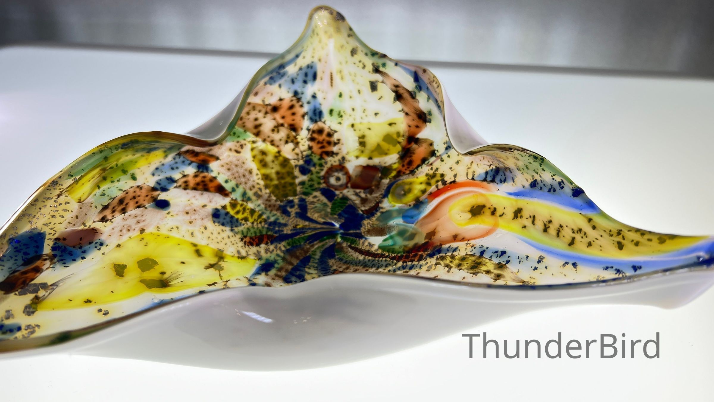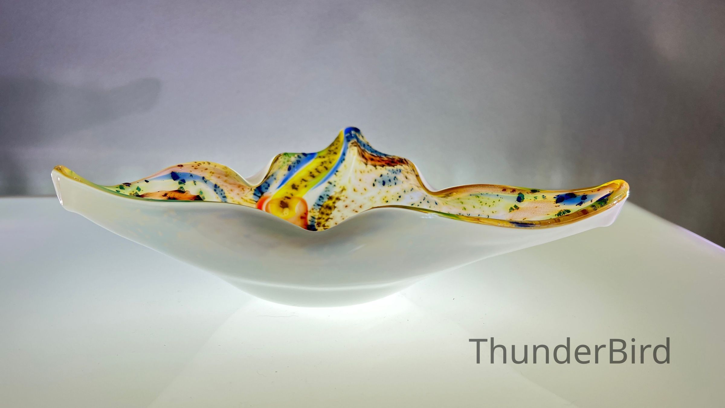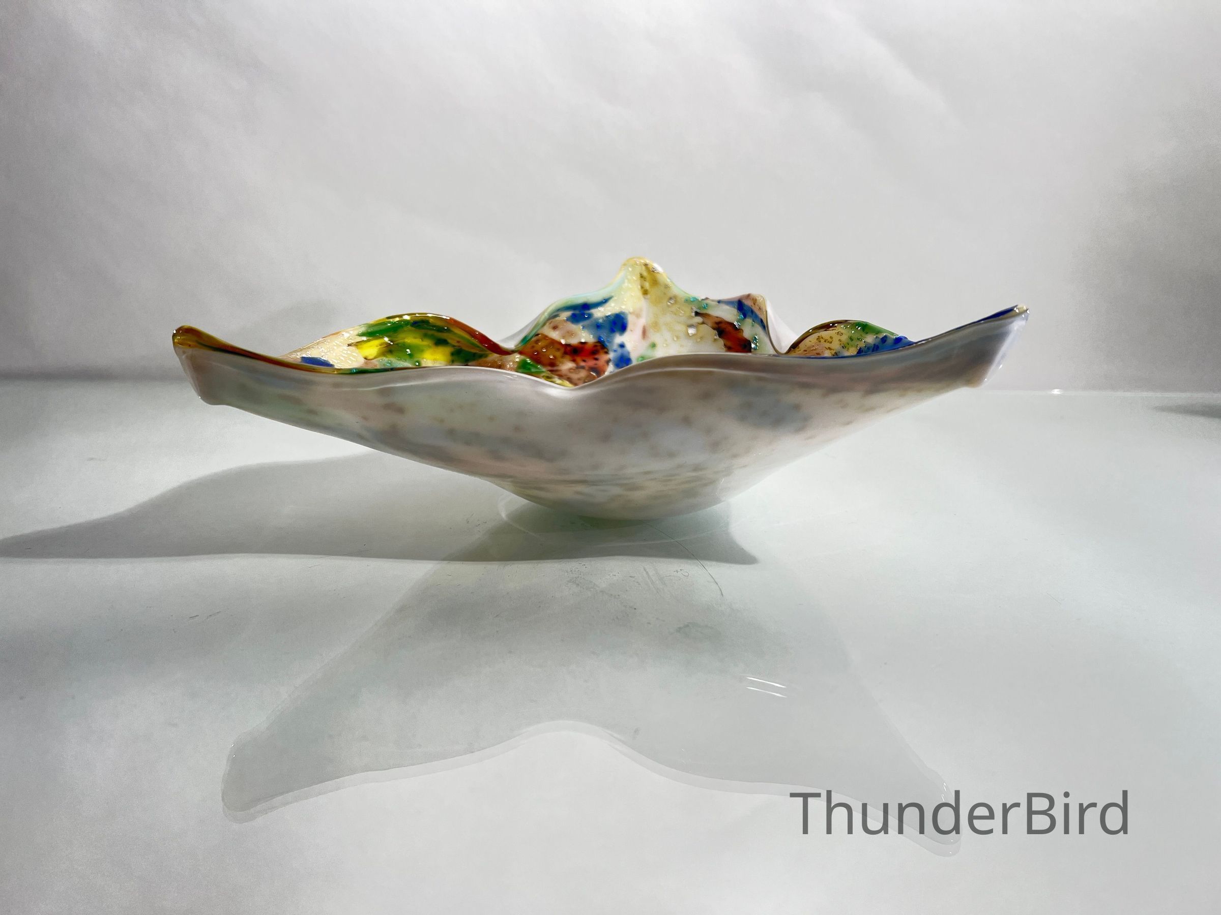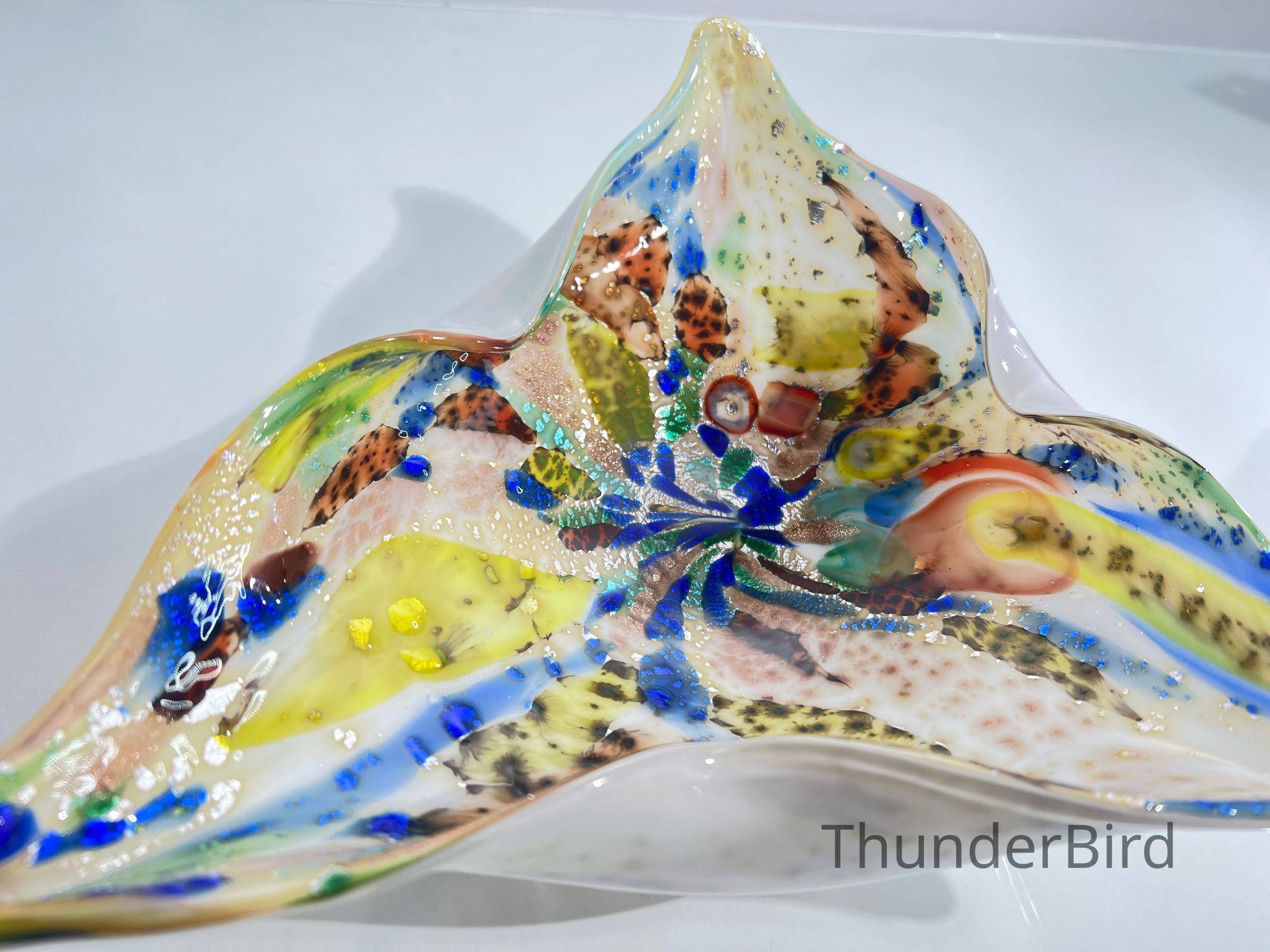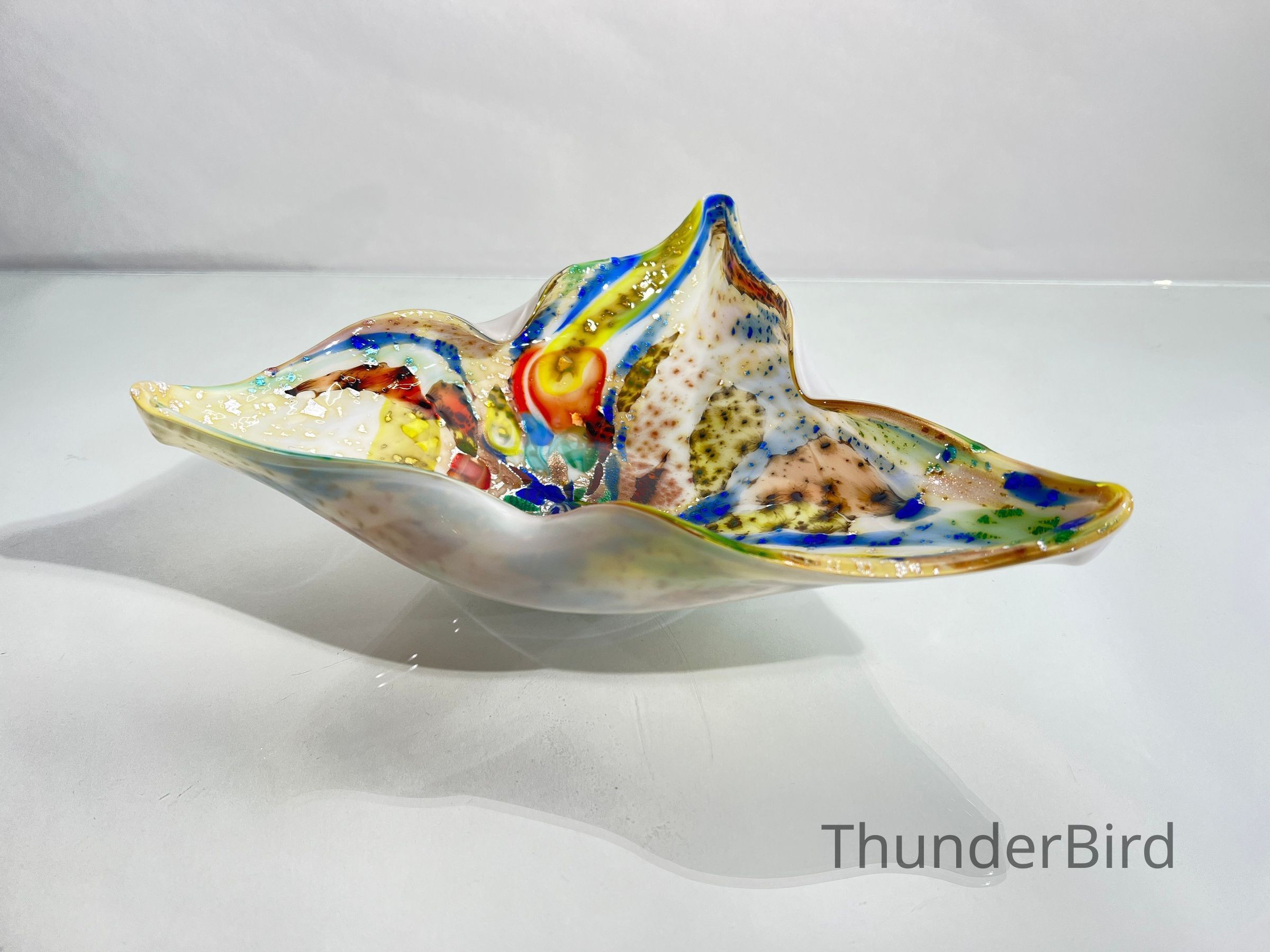 21.4.25a Murano Art Glass Tri-Form Dish with Millefiori Detail - LabeledEntry/Object ID