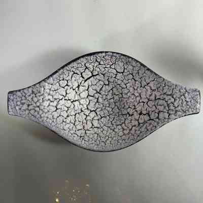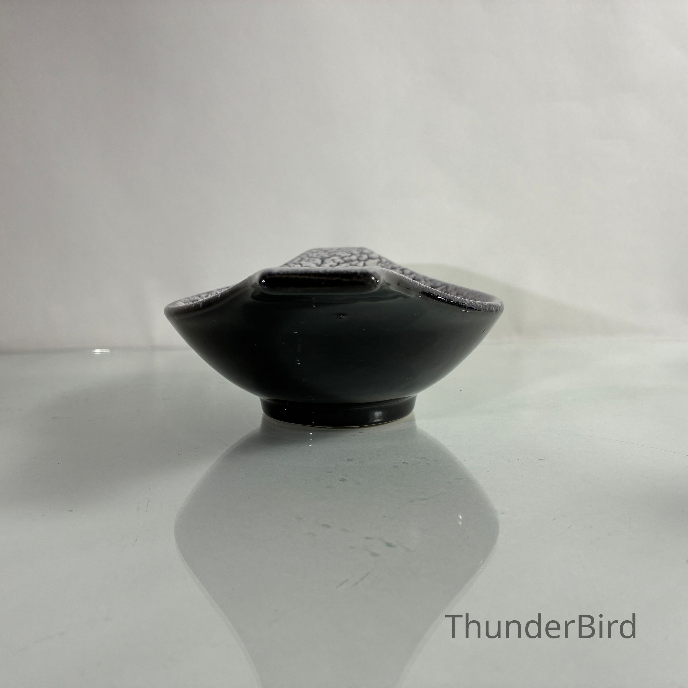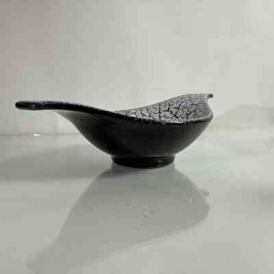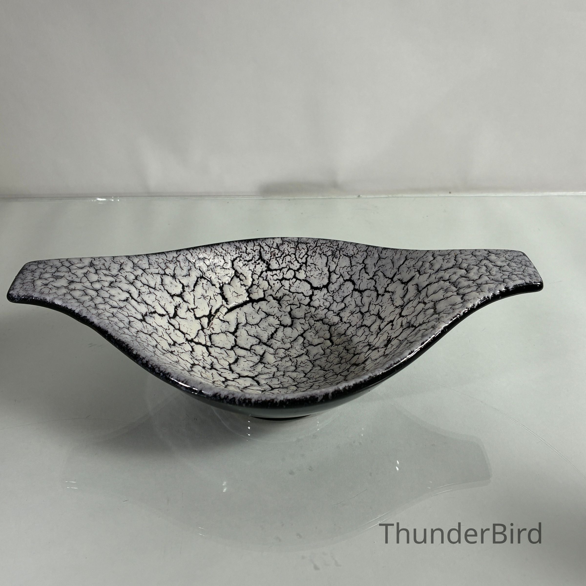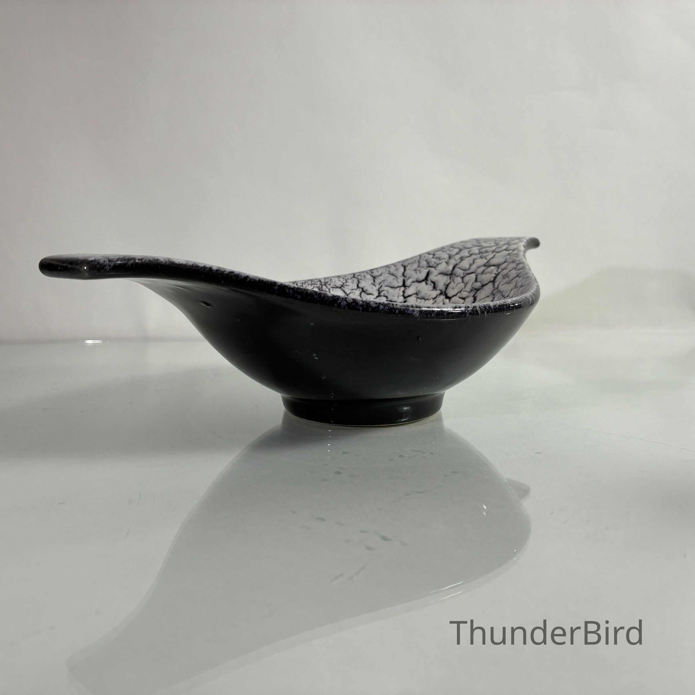 A sculptural mid-century ceramic bowl by Jasba Keramik, West Germany, dating from the 1950s–60s. This elegant form features Jasba’s distinctive Fat Lava-style glaze in a dramatic “cracked ice” finish — a textured white lava glaze that spreads across a glossy black ground, creating rich surface contrast.