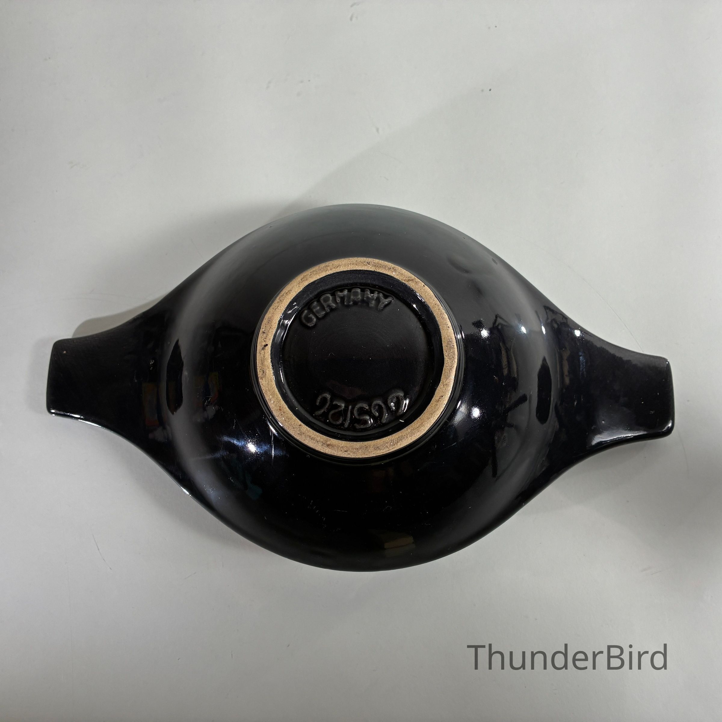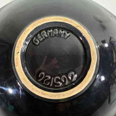 The long, leaf-like form with flared handles and pedestal-style base is marked to the underside “Germany 625/26”, a known Jasba shape number. Founded in 1926, Jasba was known for producing highly decorative and technically refined ceramics, and this piece is a strong example of their post-war production.