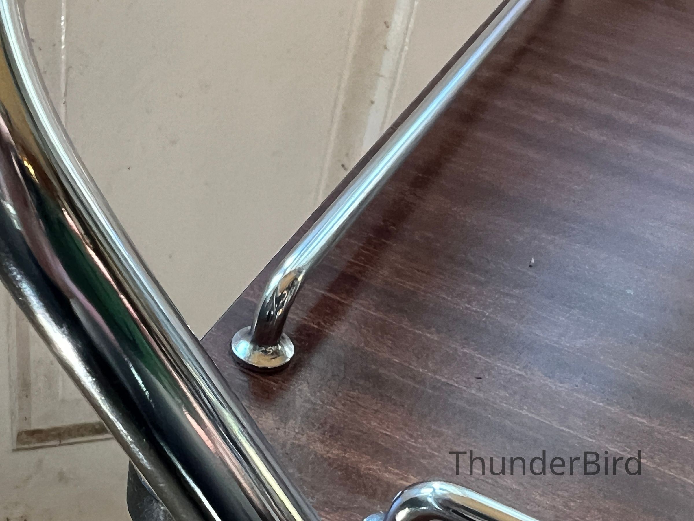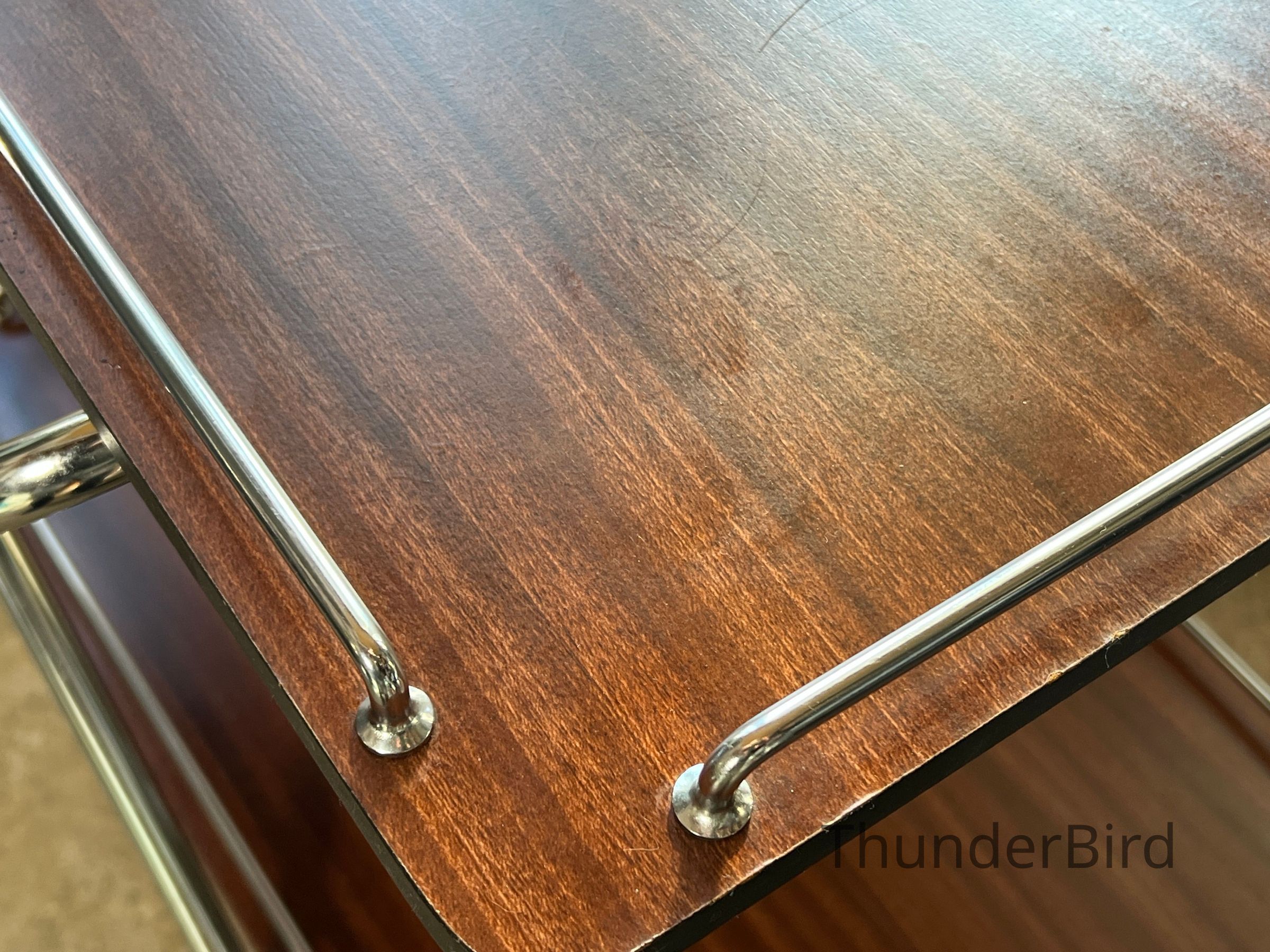 Good vintage condition with light surface wear consistent with age. Chrome and laminate present well. Rolls and folds smoothly.