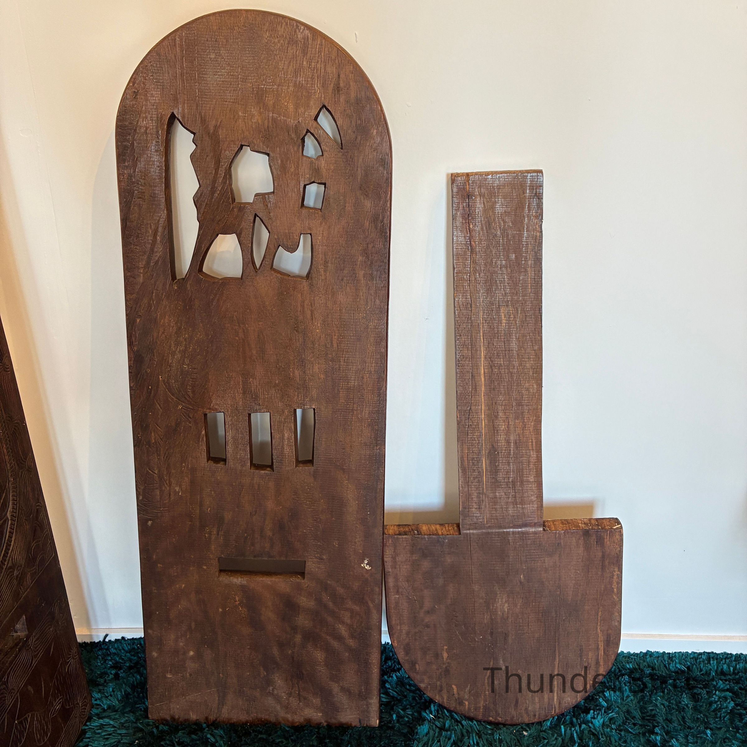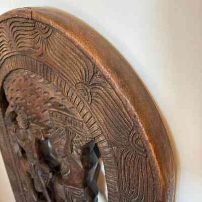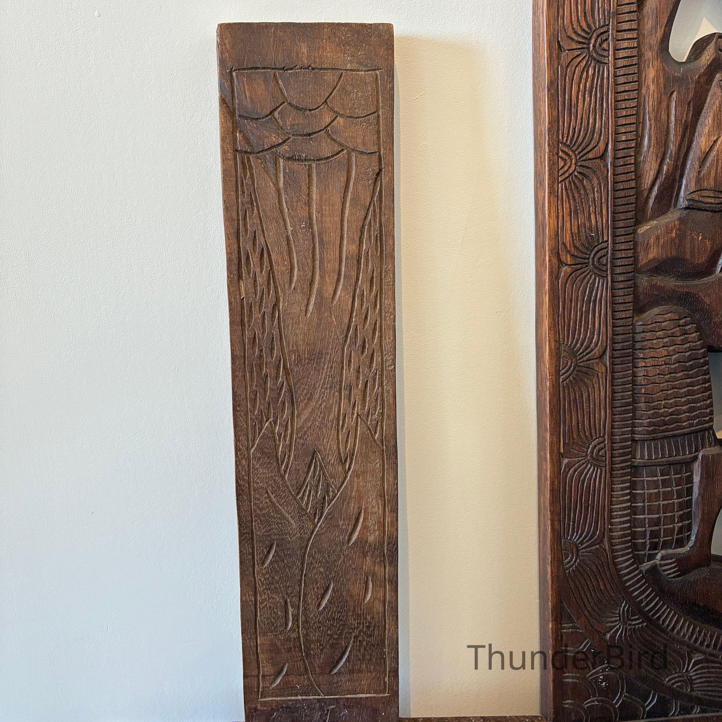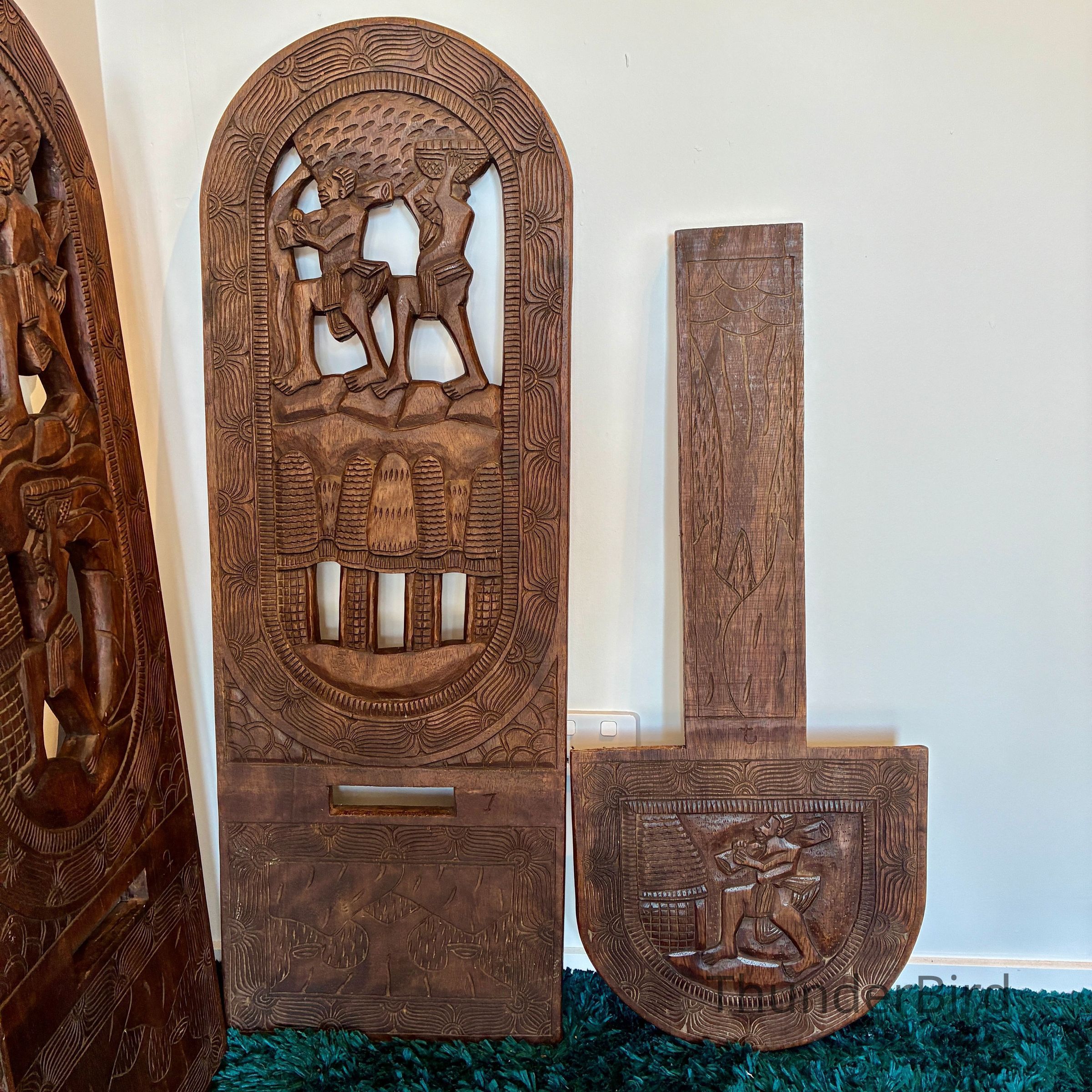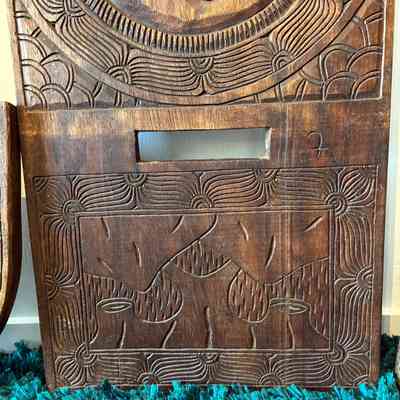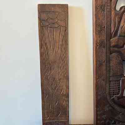 Their bold relief carvings and sculptural form make them excellent as decorative statement pieces, whether displayed upright or separated to show both carved panels.