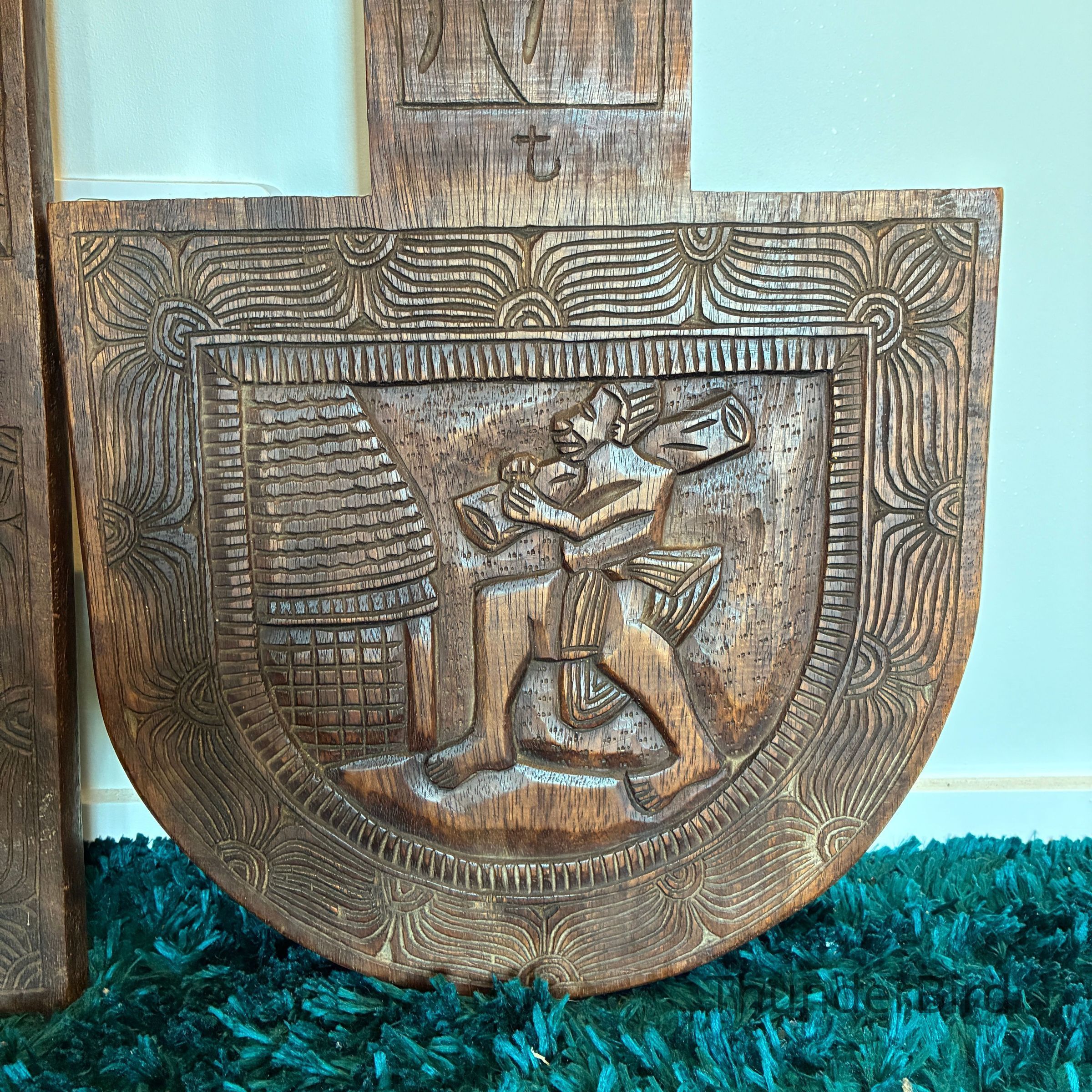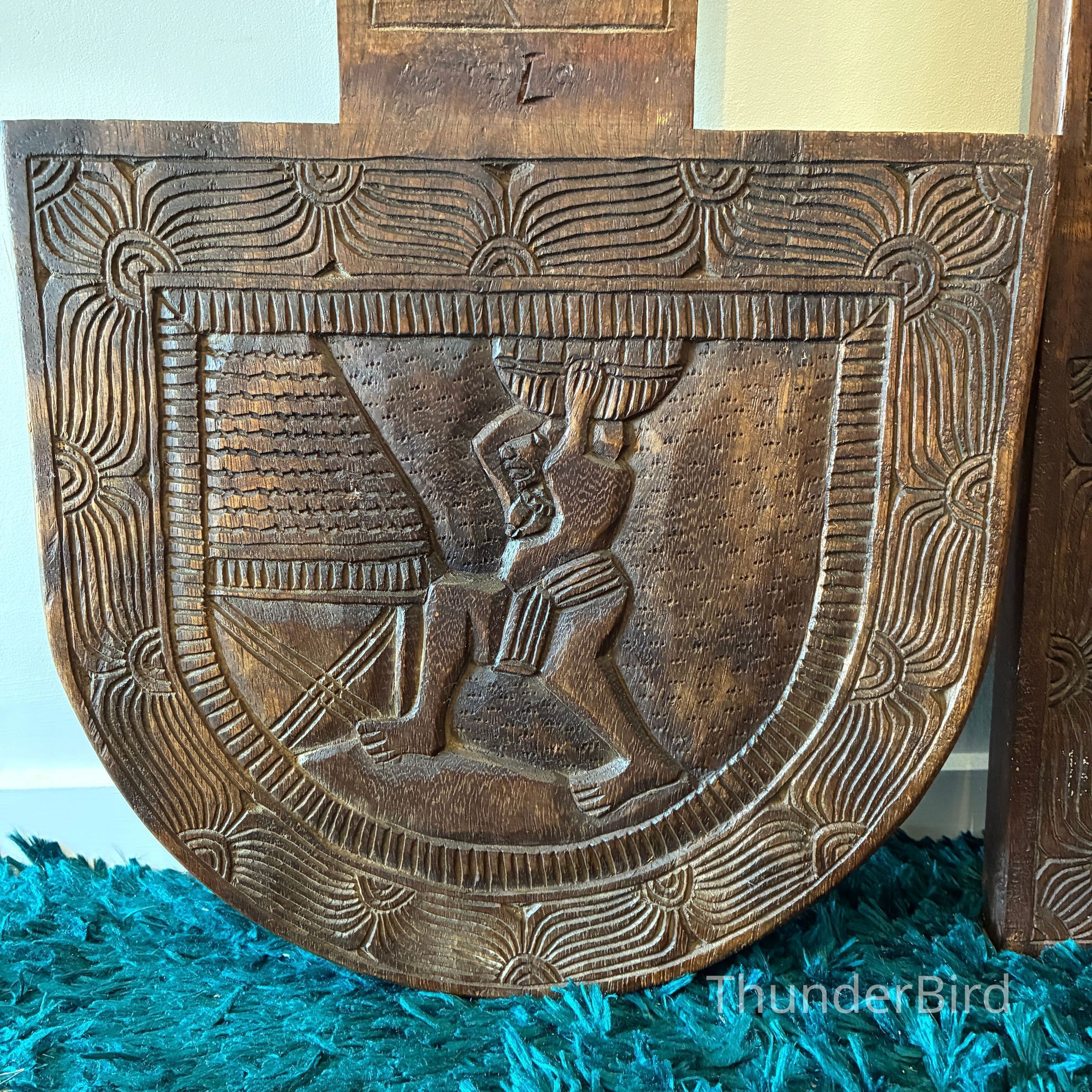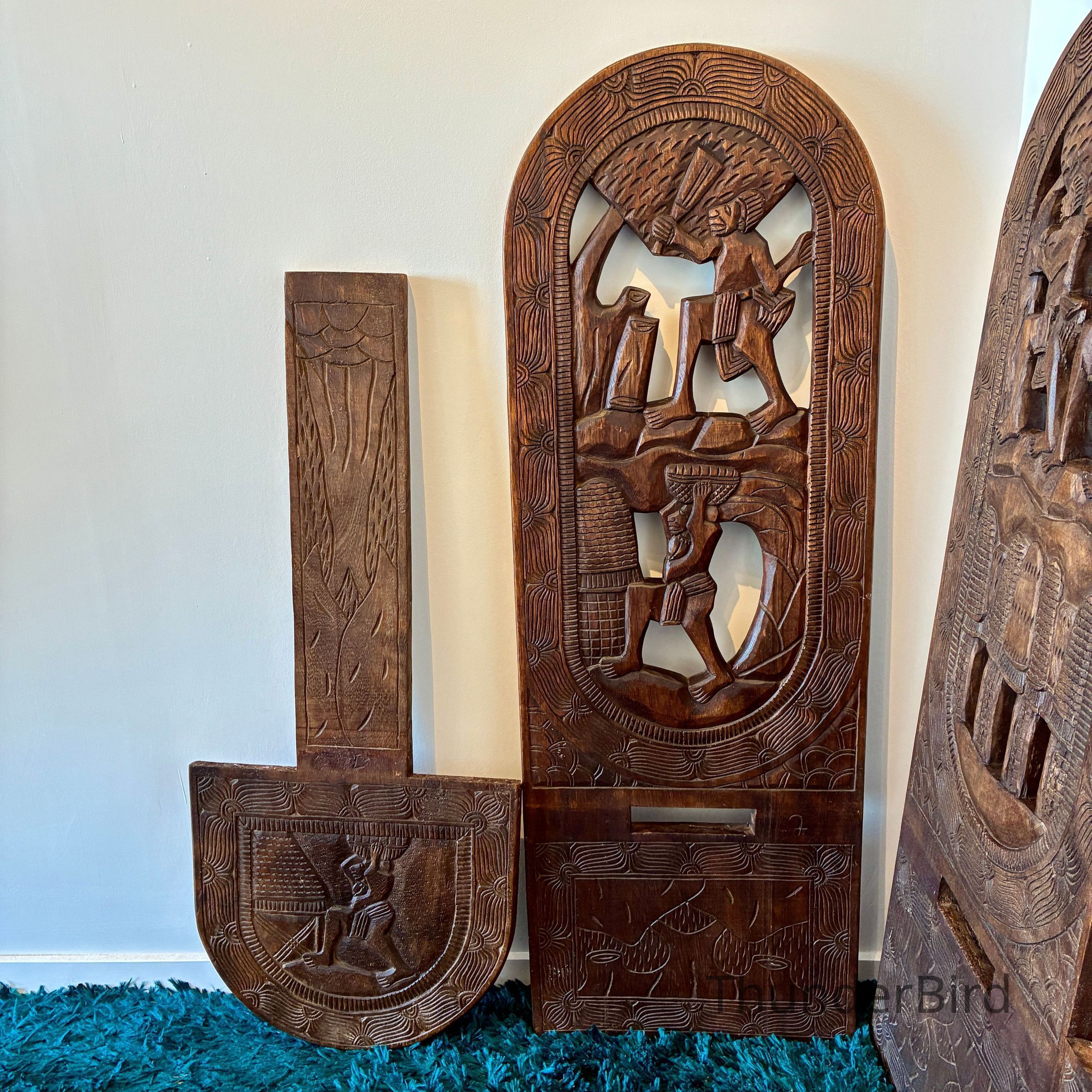Their bold relief carvings and sculptural form make them excellent as decorative statement pieces, whether displayed upright or separated to show both carved panels.