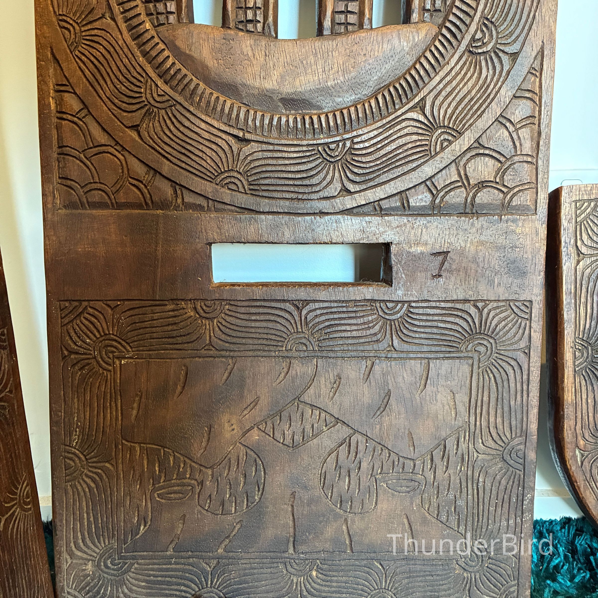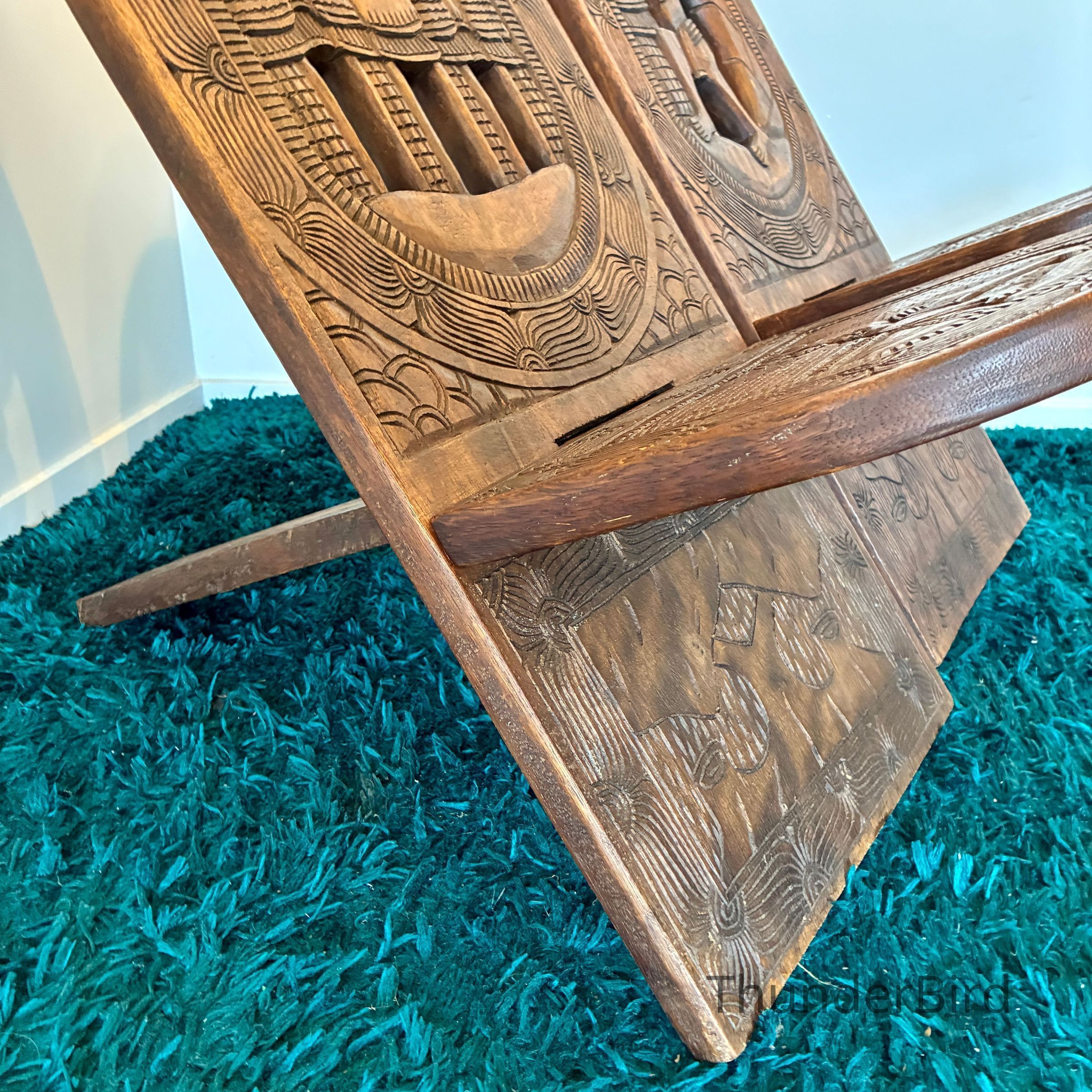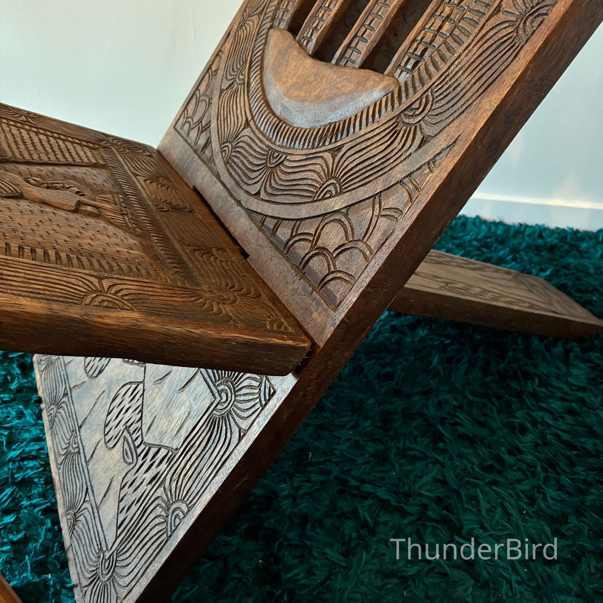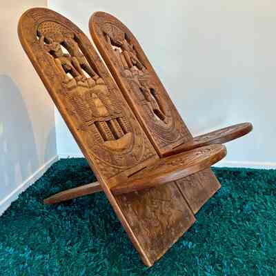 (Each chair separates into two flat carved panels.)