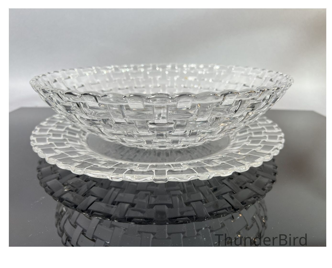 This set, including a generously sized bowl and plate, showcases the exceptional clarity and artistry that defines Nachtmann's crystal creations.