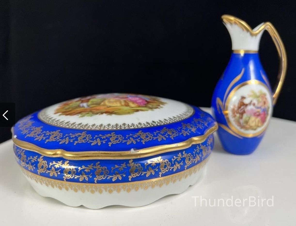 Vintage French Limoges Lidded Trinket Dish And Jug VaseEntry/Object ID
