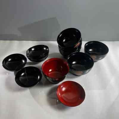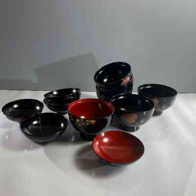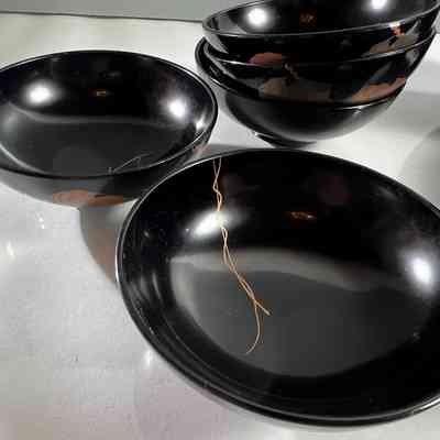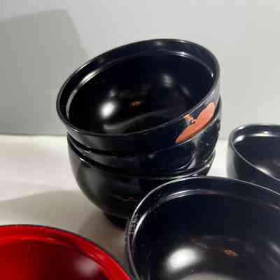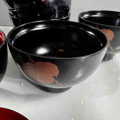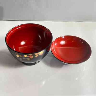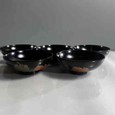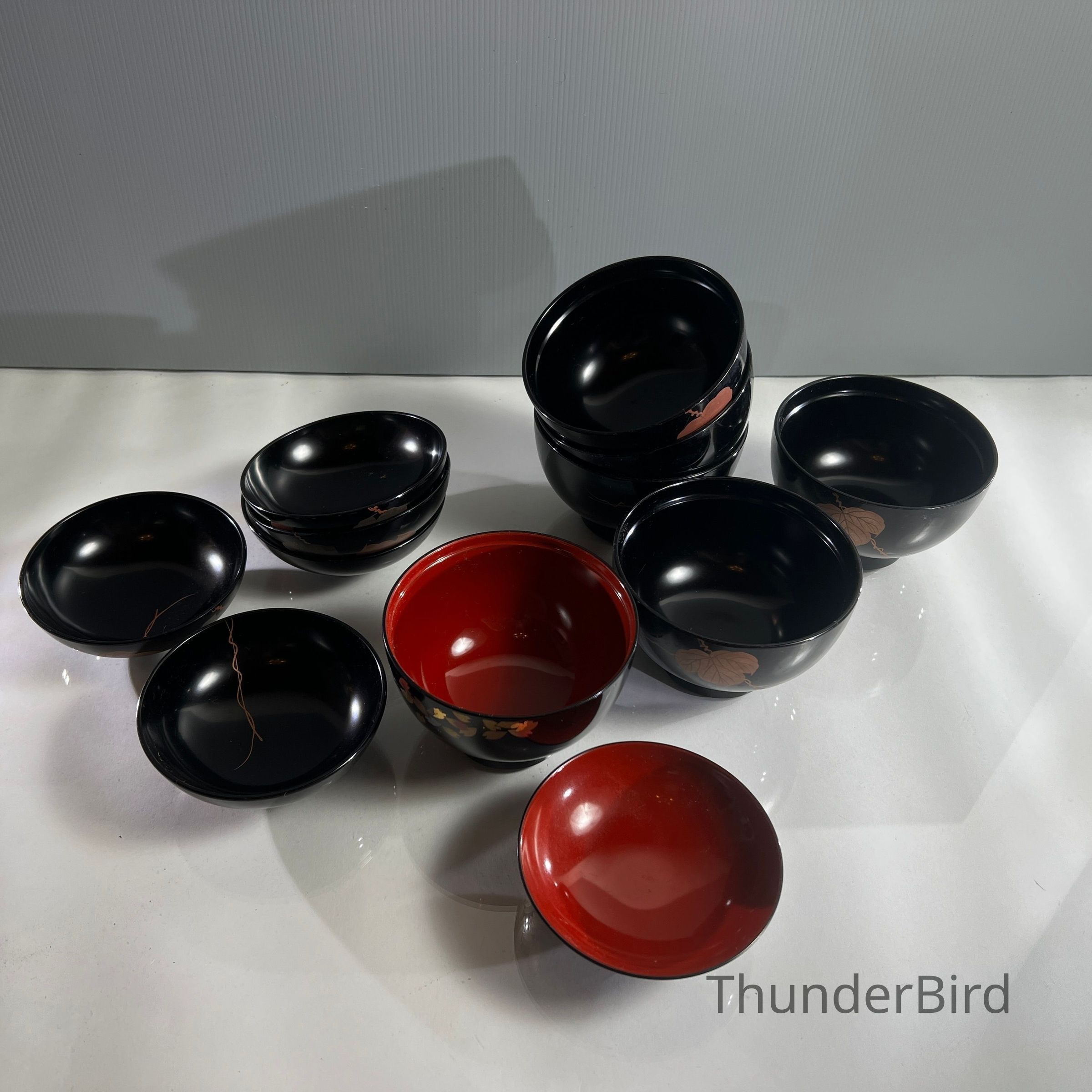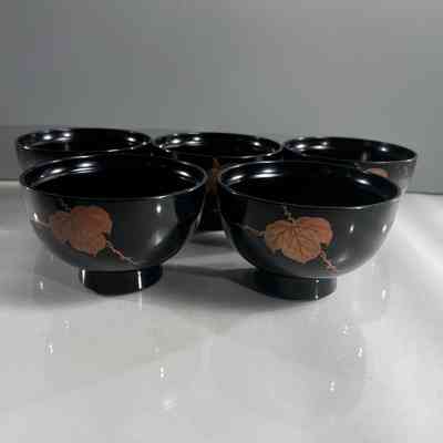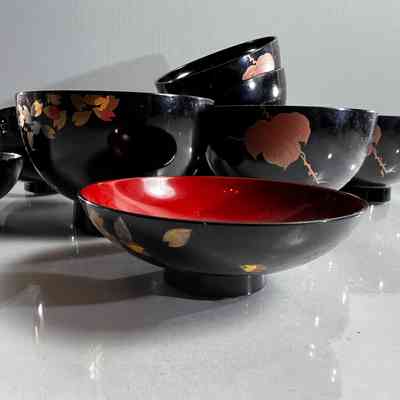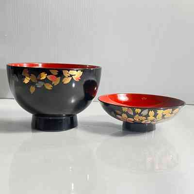Vintage Japanese Urushi Lacquer Bowls With Gold Maki-e DecorationEntry/Object ID