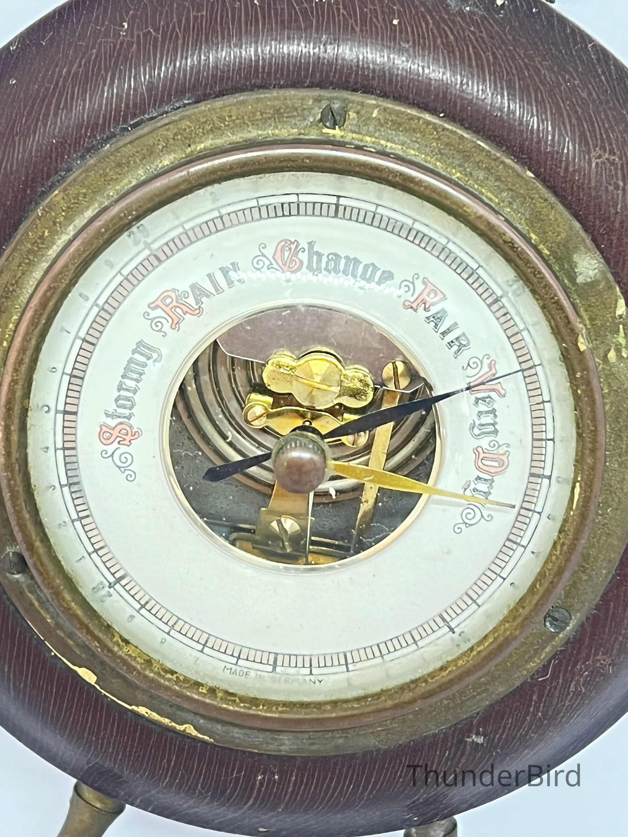 Vintage Ships Wheel Barometer, German Mid Century. Wood and Brass