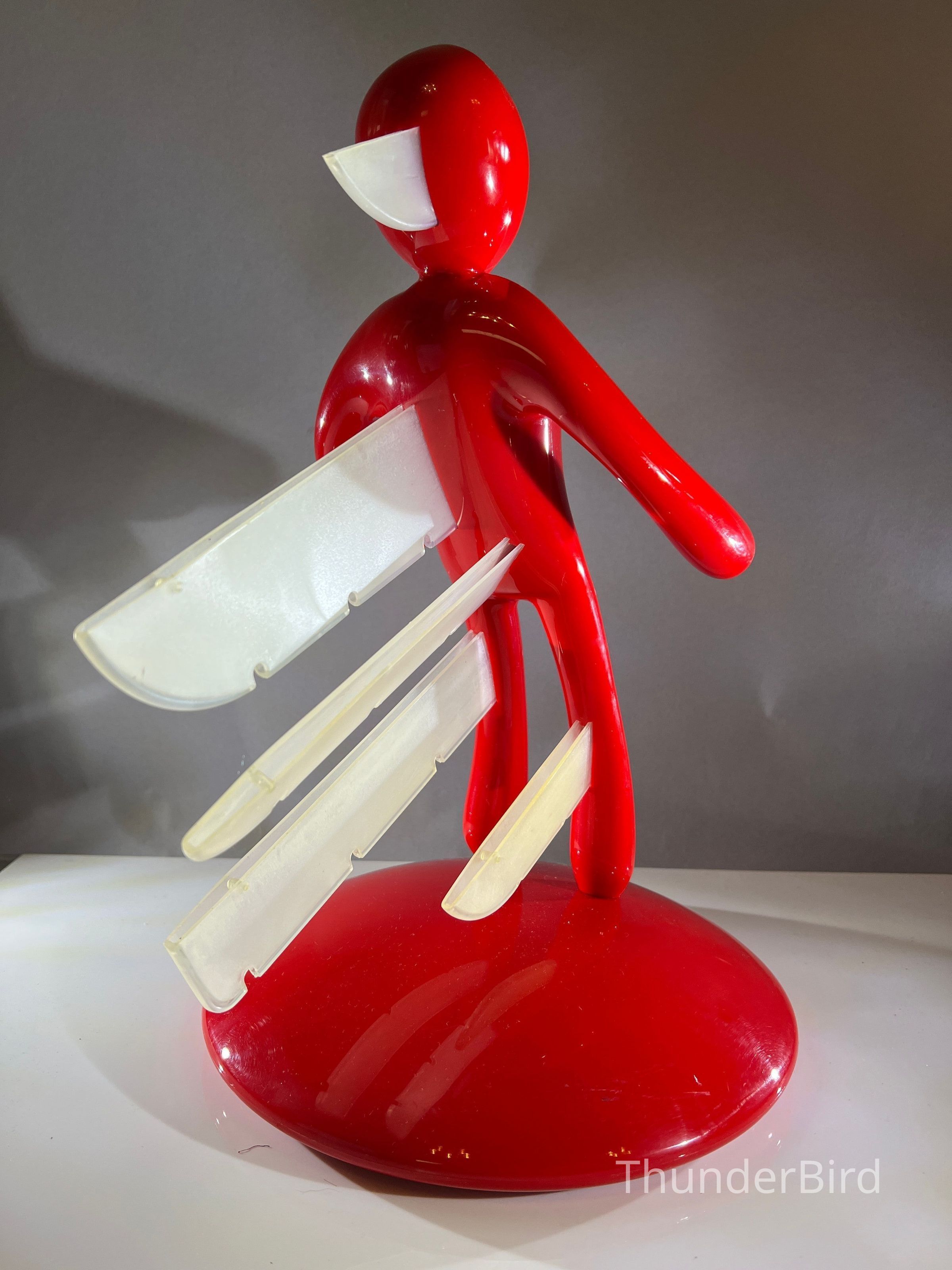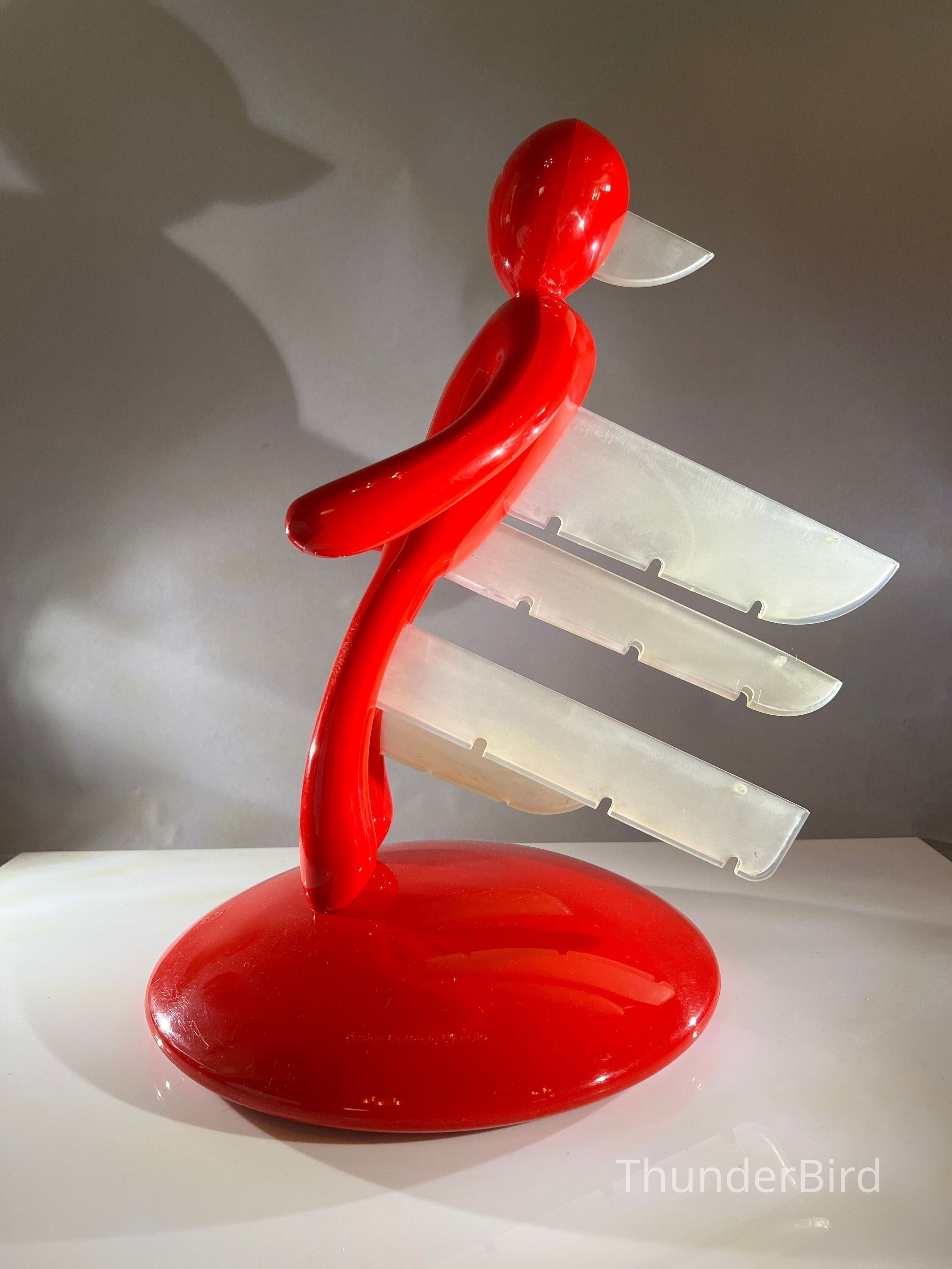 A striking and collectible 'Voodoo' knife holder, designed by Raffaele Iannello for Vice Versa. This bold, sculptural piece is both functional and artistic, featuring a dramatic red humanoid figure with knife slots positioned through its body. A must-have statement piece for lovers of mid-century modern and contemporary design.