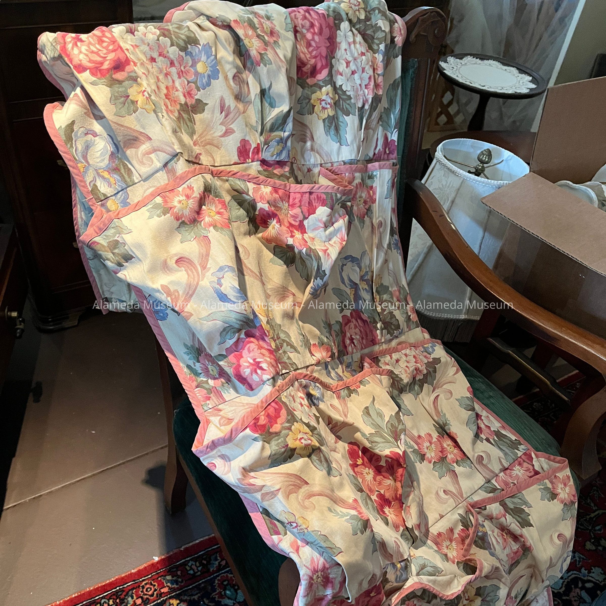 18-pocket hanging shoe rack with floral and pink fabric, c. 1940Entry/Object ID