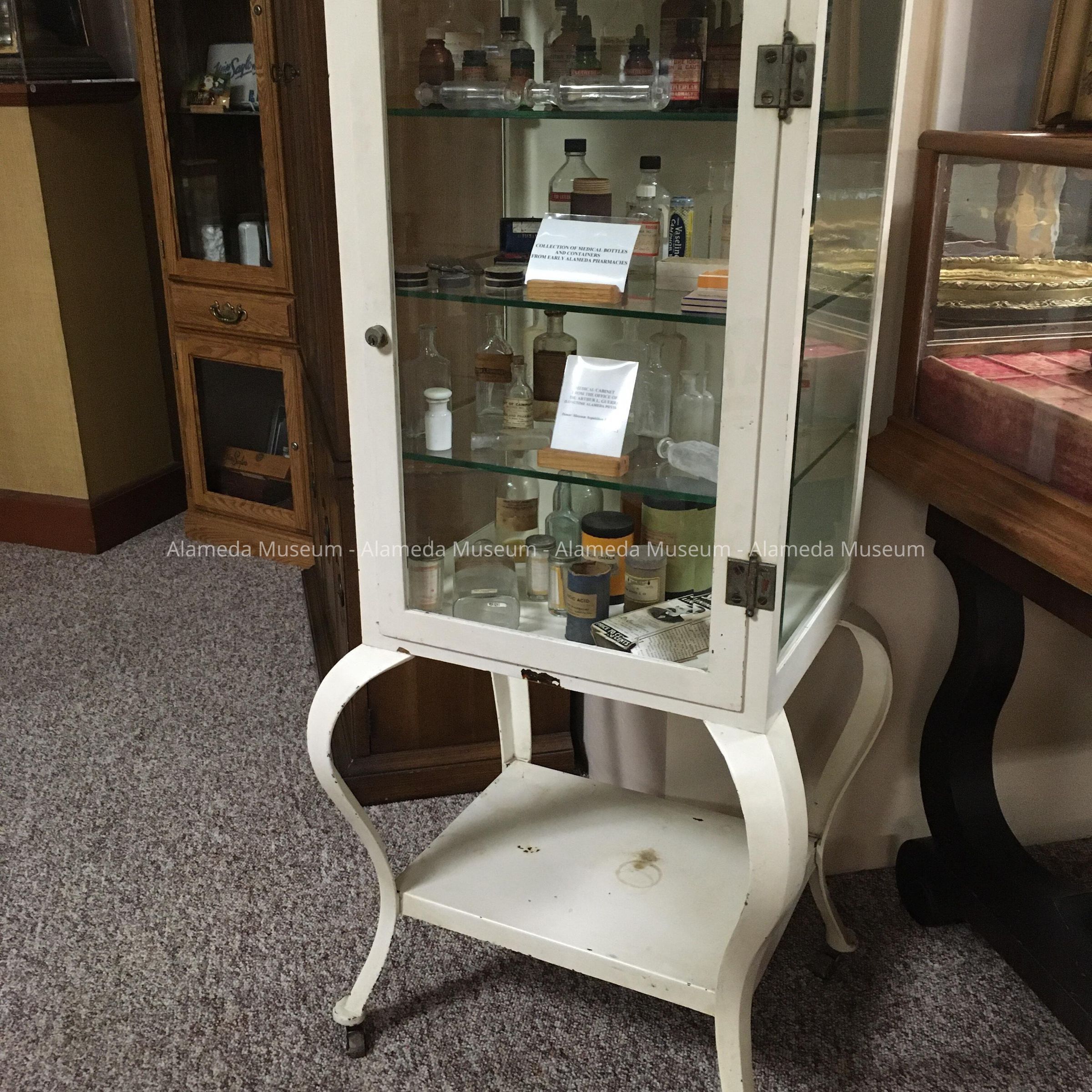 Medical cabinet belonged to the late Doctor Arthur L. Guerra. Dr. Guerra was a longtime resident of Alameda and practiced medicine at the Alameda Hospital.