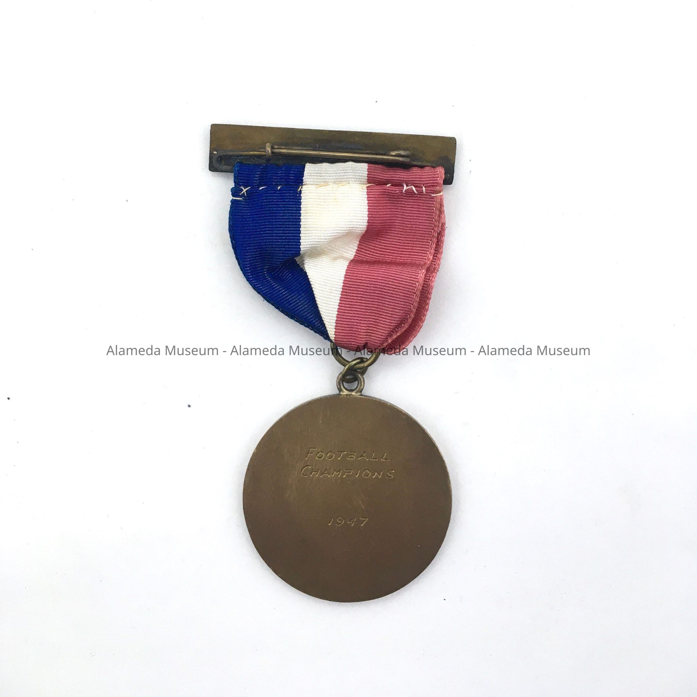 HISTORY OF OBJECT: A MEDAL FOR A FOOTBALL CHAMPIONSHIP IN 1947, BY THE NAVAL AIR STATION TRAINING ATHLETIC CONFERENCE.