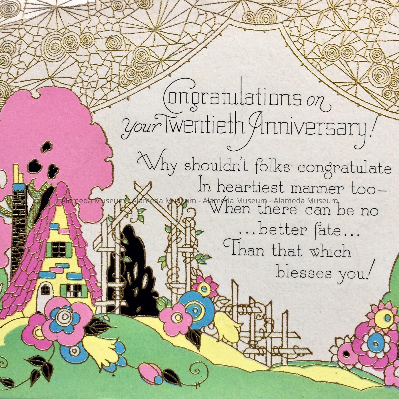 20th anniversary greeting card, sent to Wm. and Adeline Cox, 1937Entry/Object ID