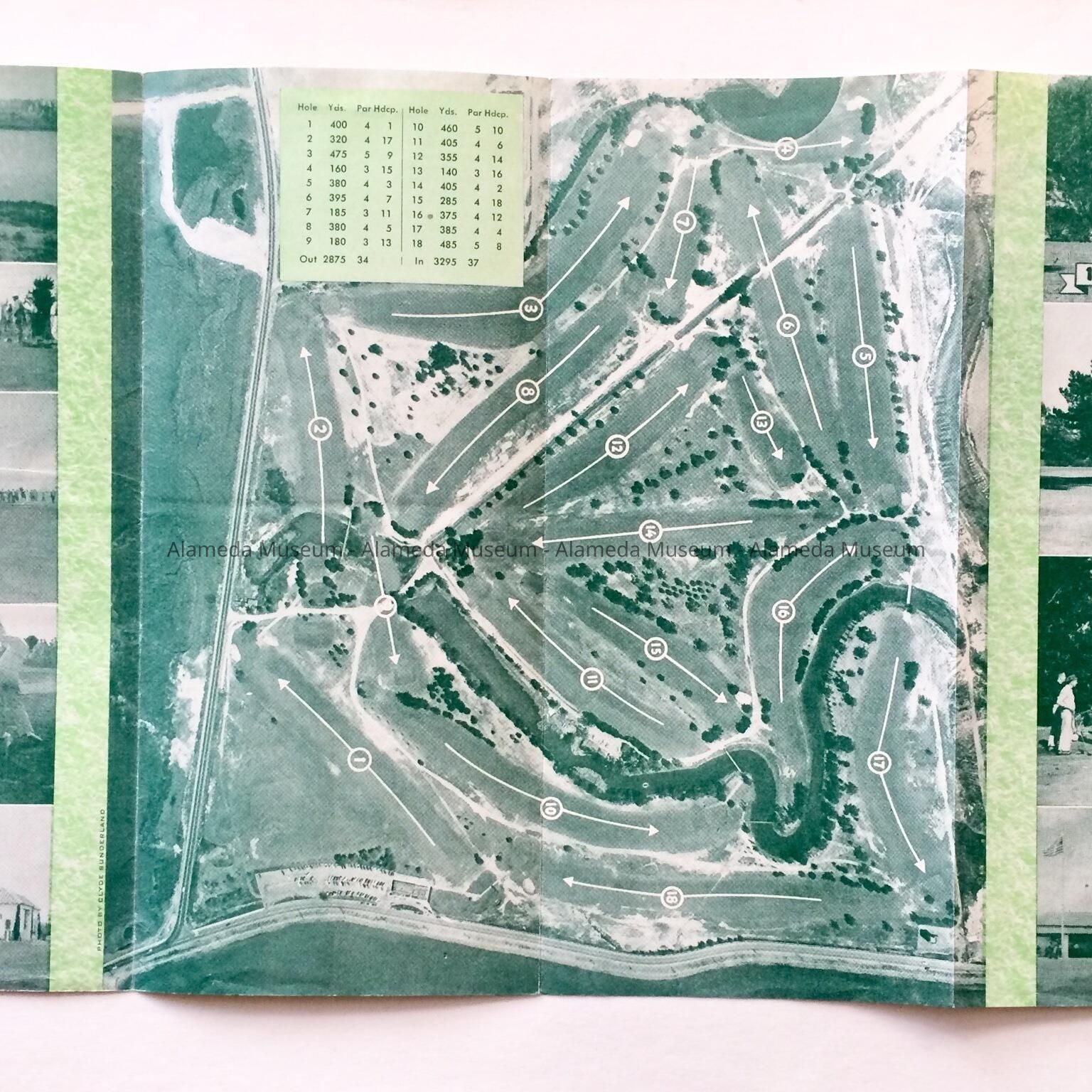 History of Object: Flyer for the 25th anniversary of the Alameda Muncipal Golf Course, 1952. Inside shows scenes from 1927 and 1952 and a map; Also includes a history and a photo of Earl Fry and staff, and a list of Champions from the Alameda Golf Club, Alameda City, Alameda Commuters, and Alameda Women's Golf Club Champions.