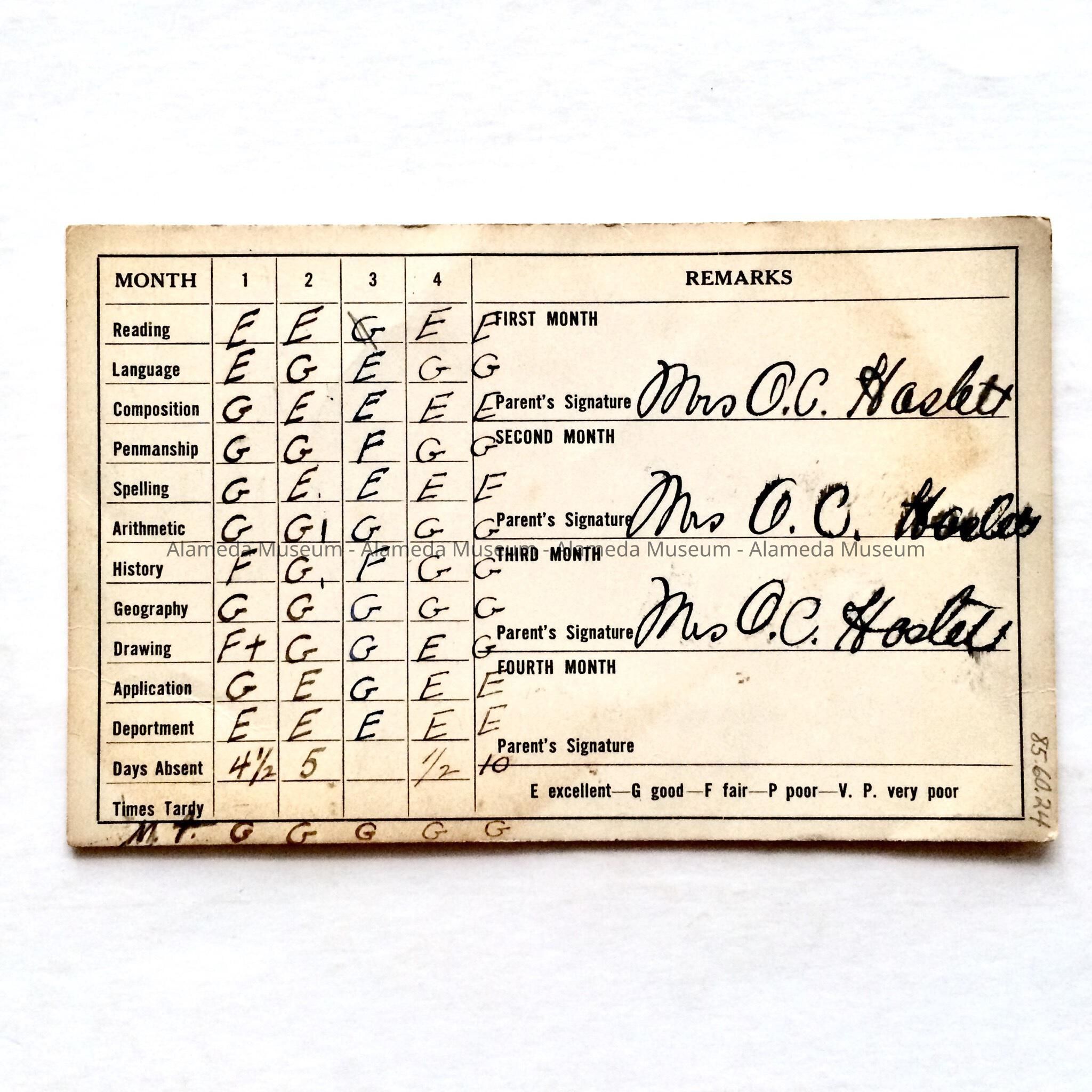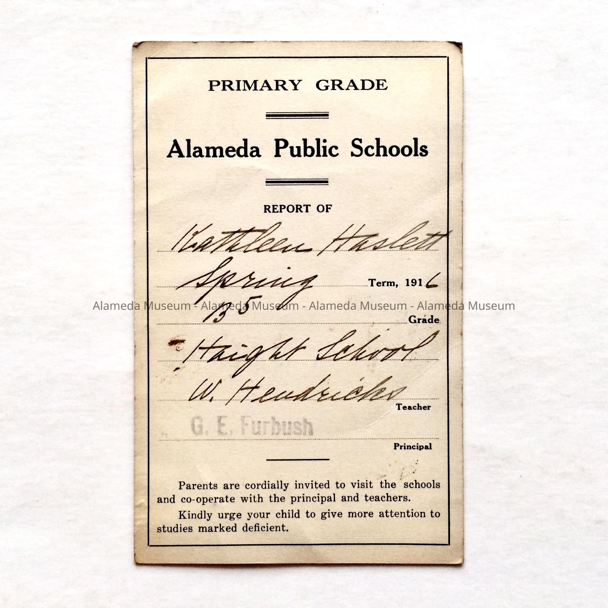 5th Grade Report Card Haight School of Kathleen Haslett, 1916Entry/Object ID