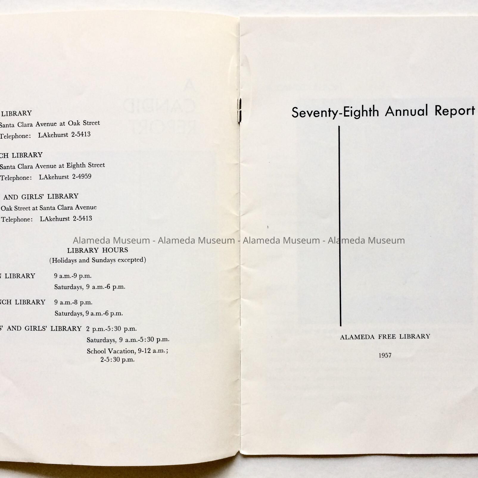 78th Annual Report 'A Candid Report' of the Alameda Free Library, 1957Entry/Object ID