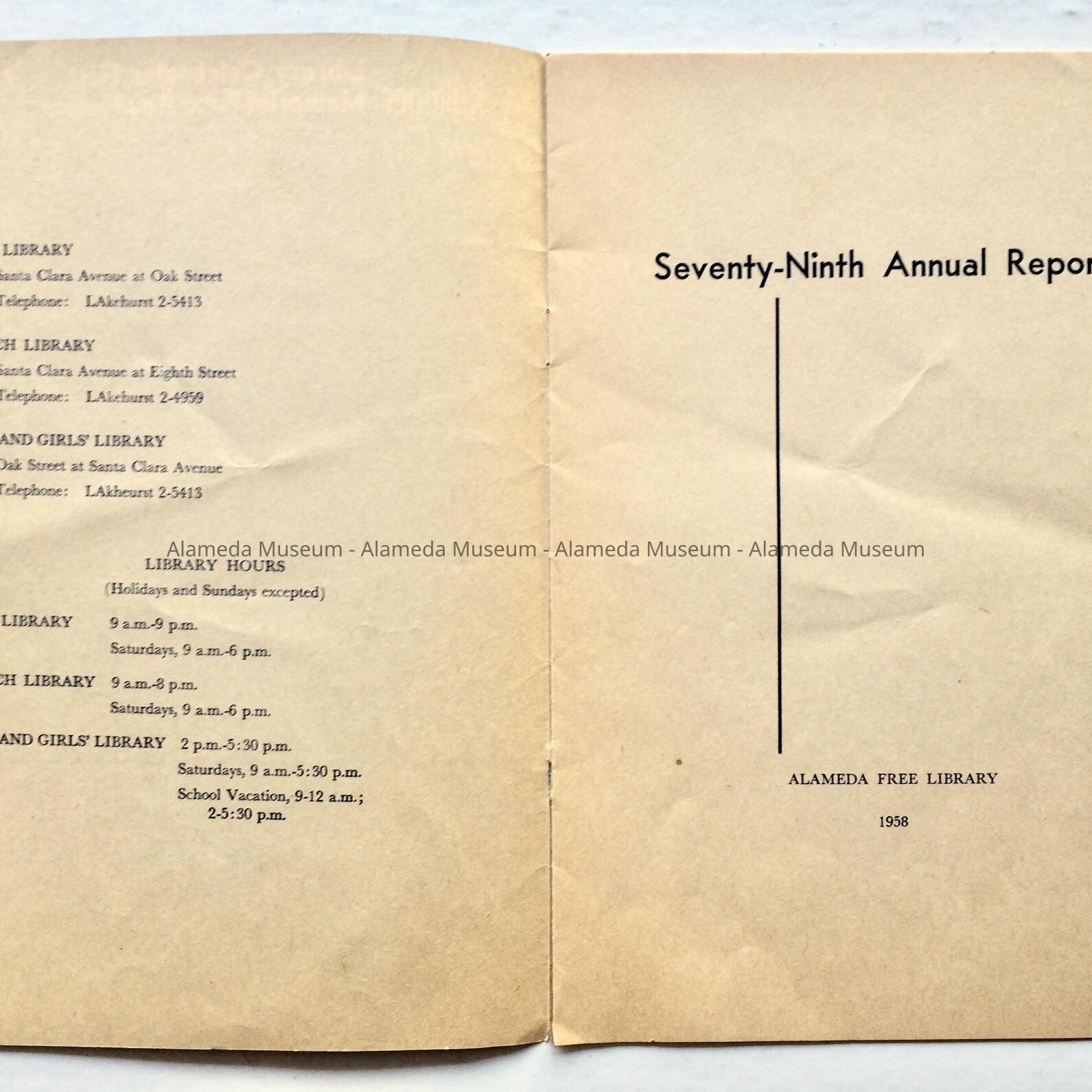79th Annual Reports of the Alameda Free Library, 1958Entry/Object ID
