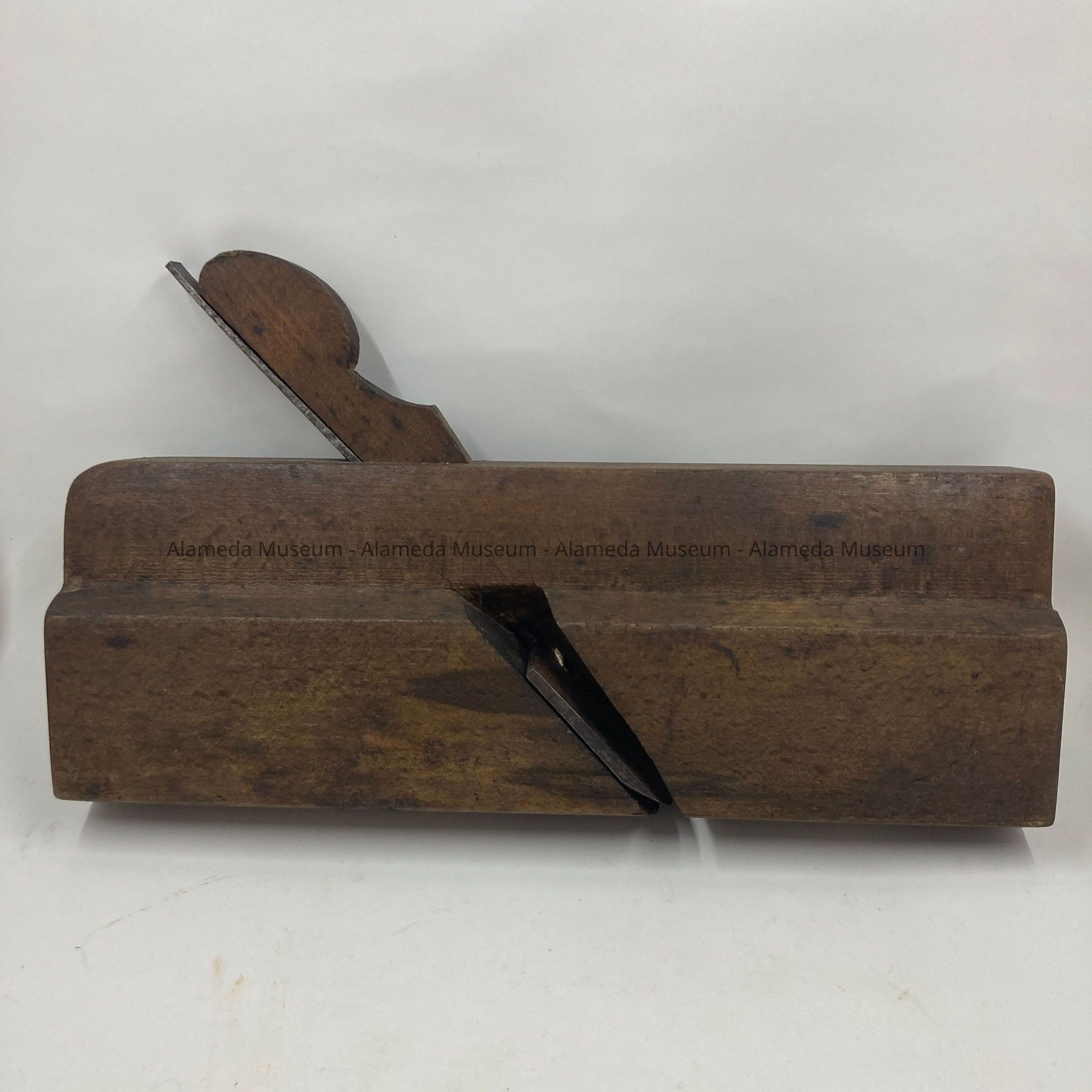 History of Object: 9.5" Hand plane, part of a collection of carpentry tools, owned by John Ucovich (presumed), an immigrant carpenter from Montenegro. John Ucovich moved to Alameda around 1925, and ran a trucking business in Oakland. By 1938 John (aged 61) lived with his wife, Myrtle May, at 775 Santa Clara. He died as the result of injuries sustained after being run over by a streetcar on March 28, 1938.