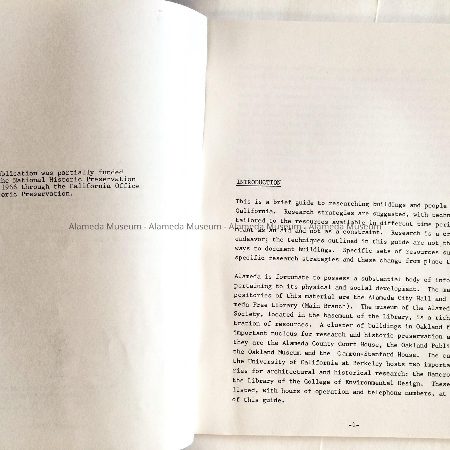 'A Guide for Historical Research in Alameda, CA', by Woody Minor, 1979Entry/Object ID
