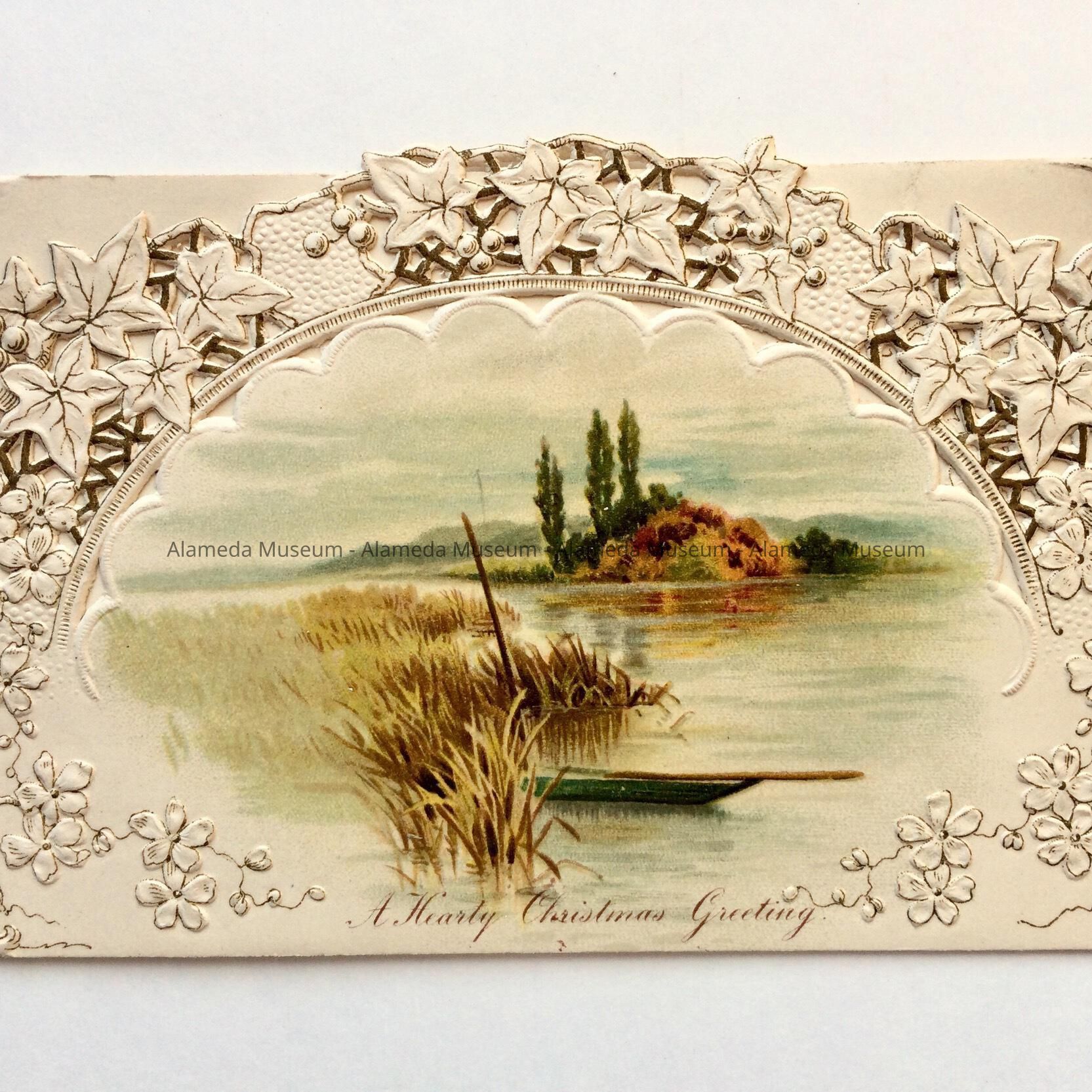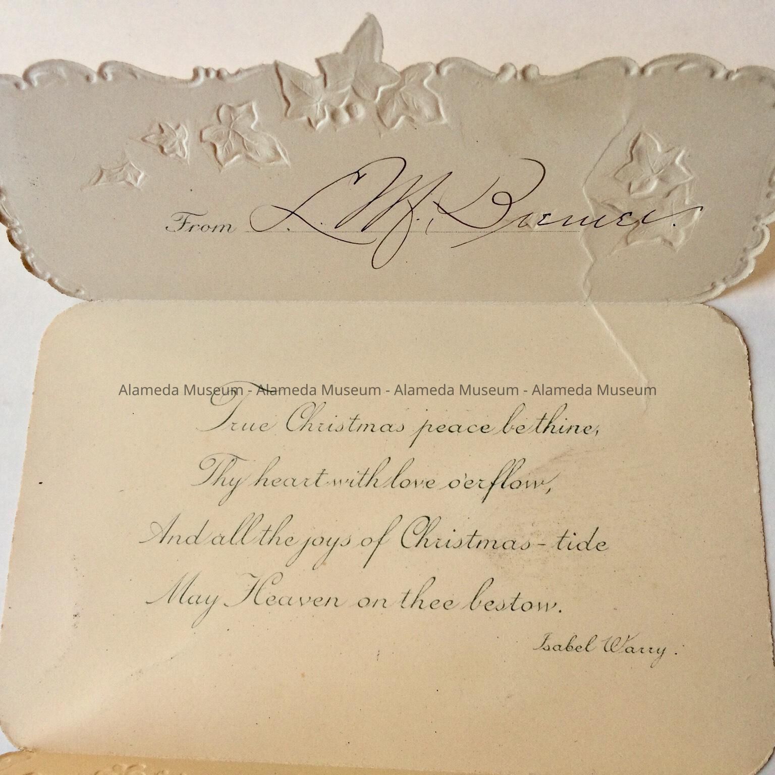 History of Object: Christmas card that originally belonged to Charlotte Deas, member of an early Alameda family.