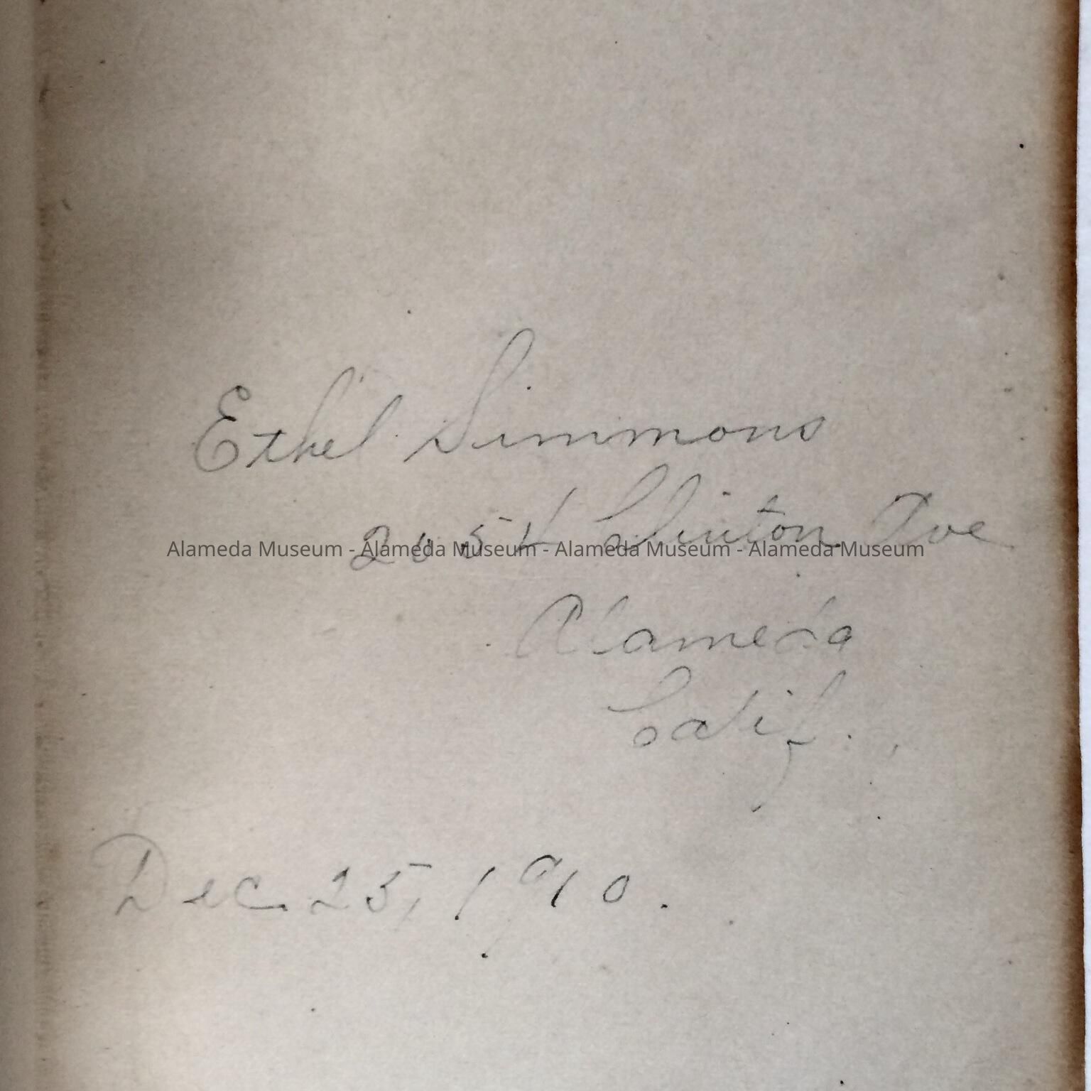 PERSONAL HISTORY: ETHEL EDELLA SIMMONS, BORN IN INDIANA, 1883. DIED IN ALAMEDA, AUG 19, 1974. LIVED AT 2254 CLINTON AVENUE, WHEN RECEIVING NURSING TRAINING.