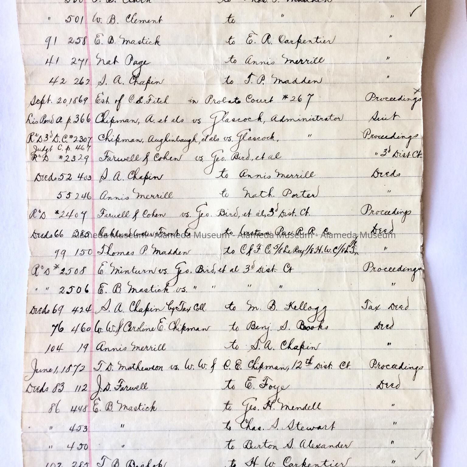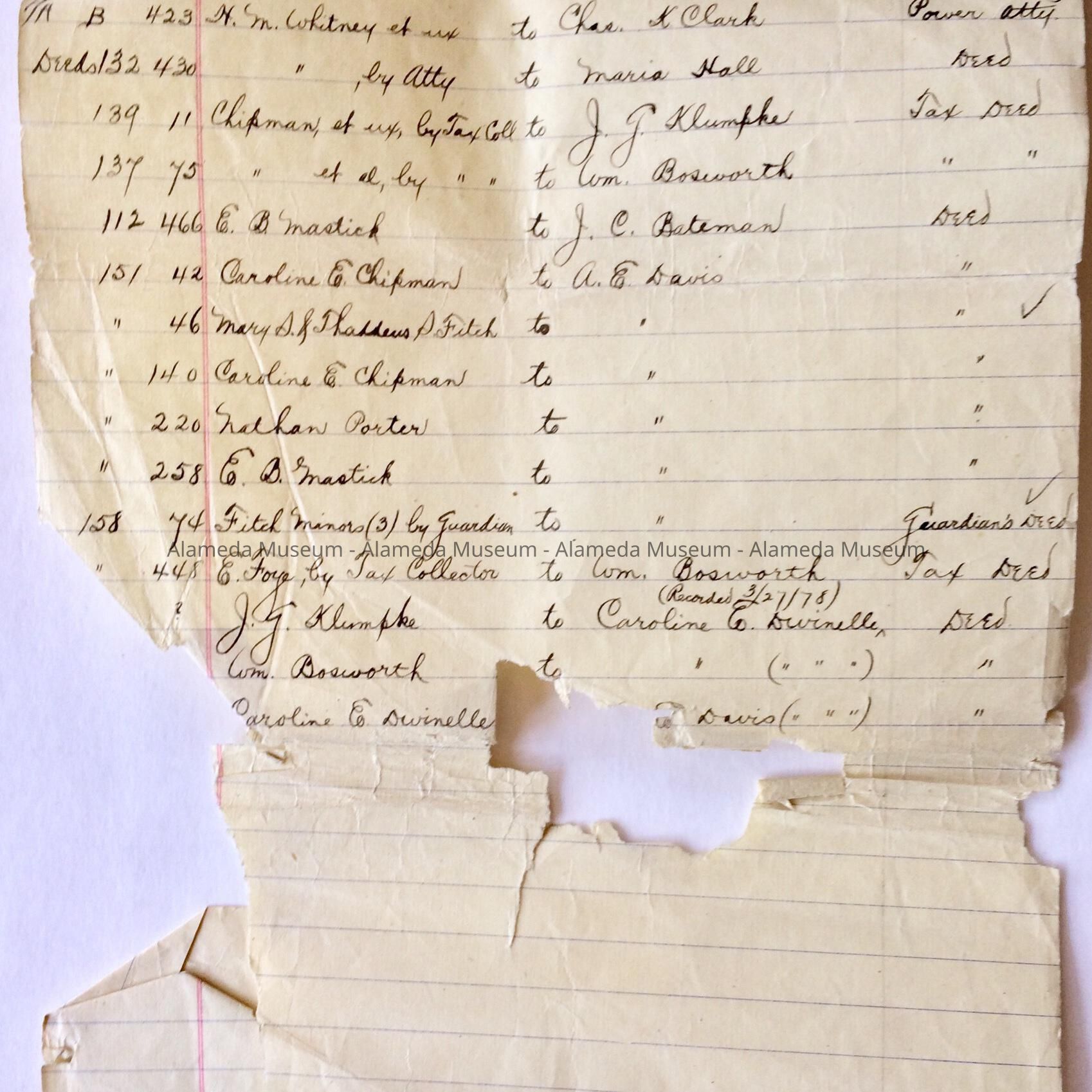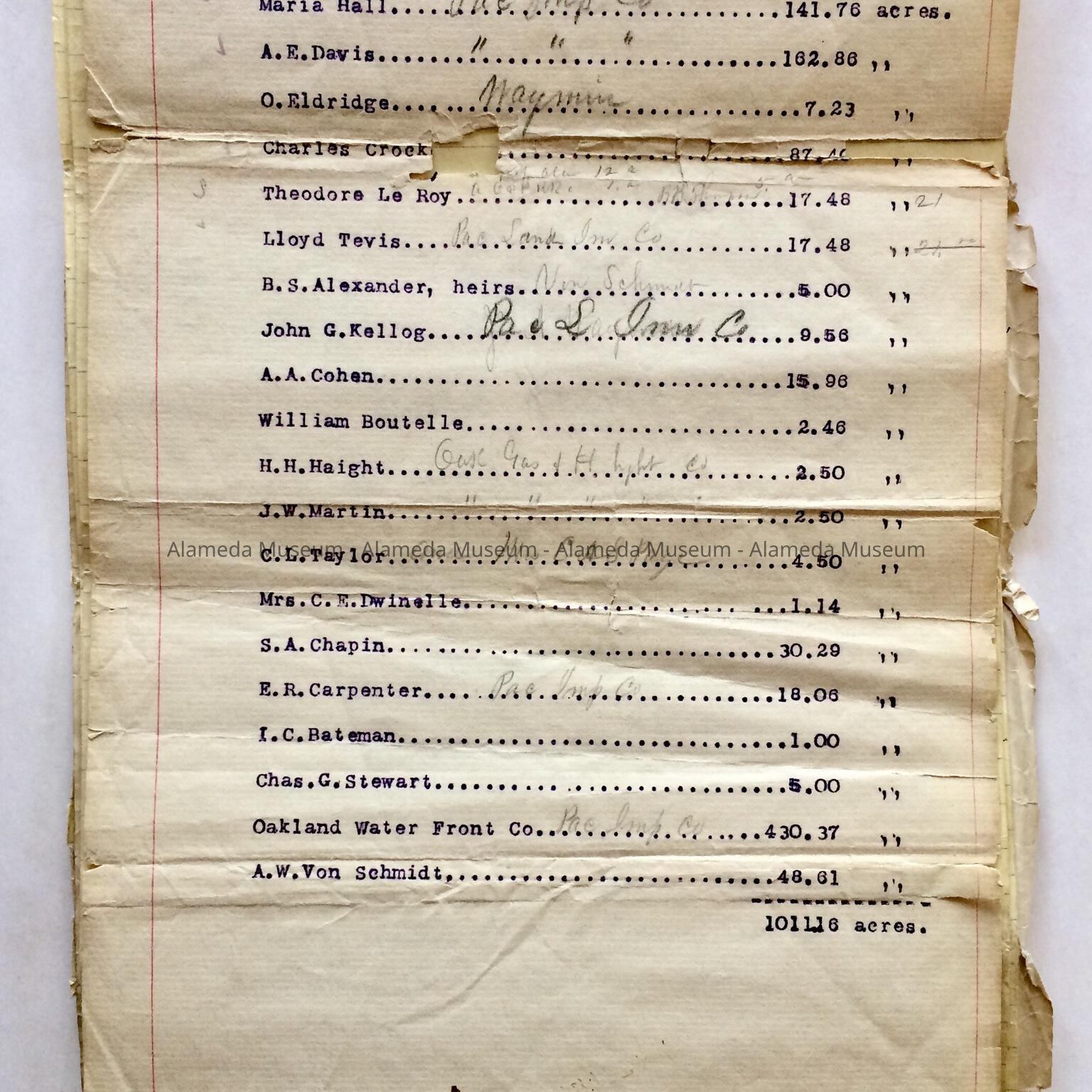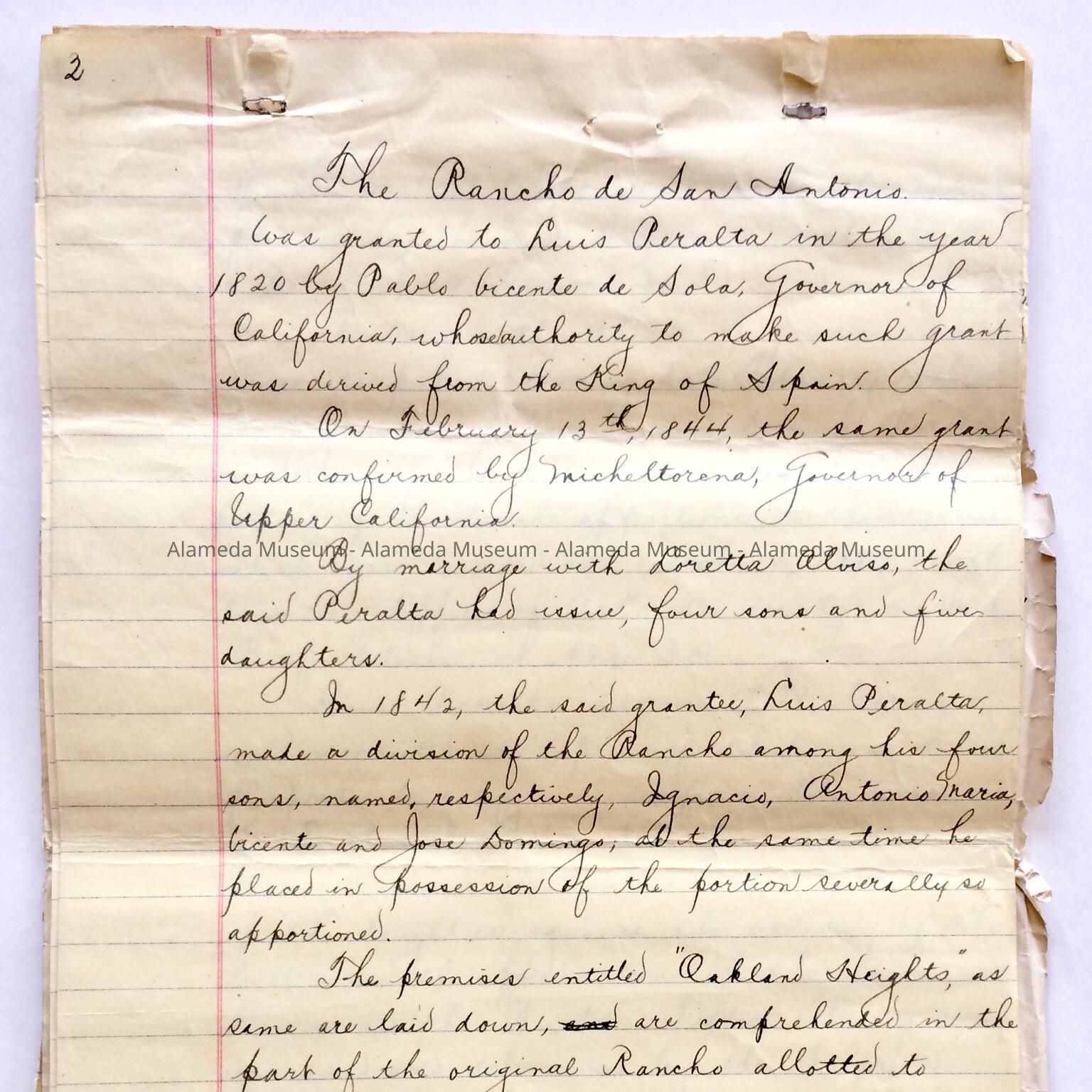 Document was given to the Alameda Historical Society prior to 1971 and never catalogued.