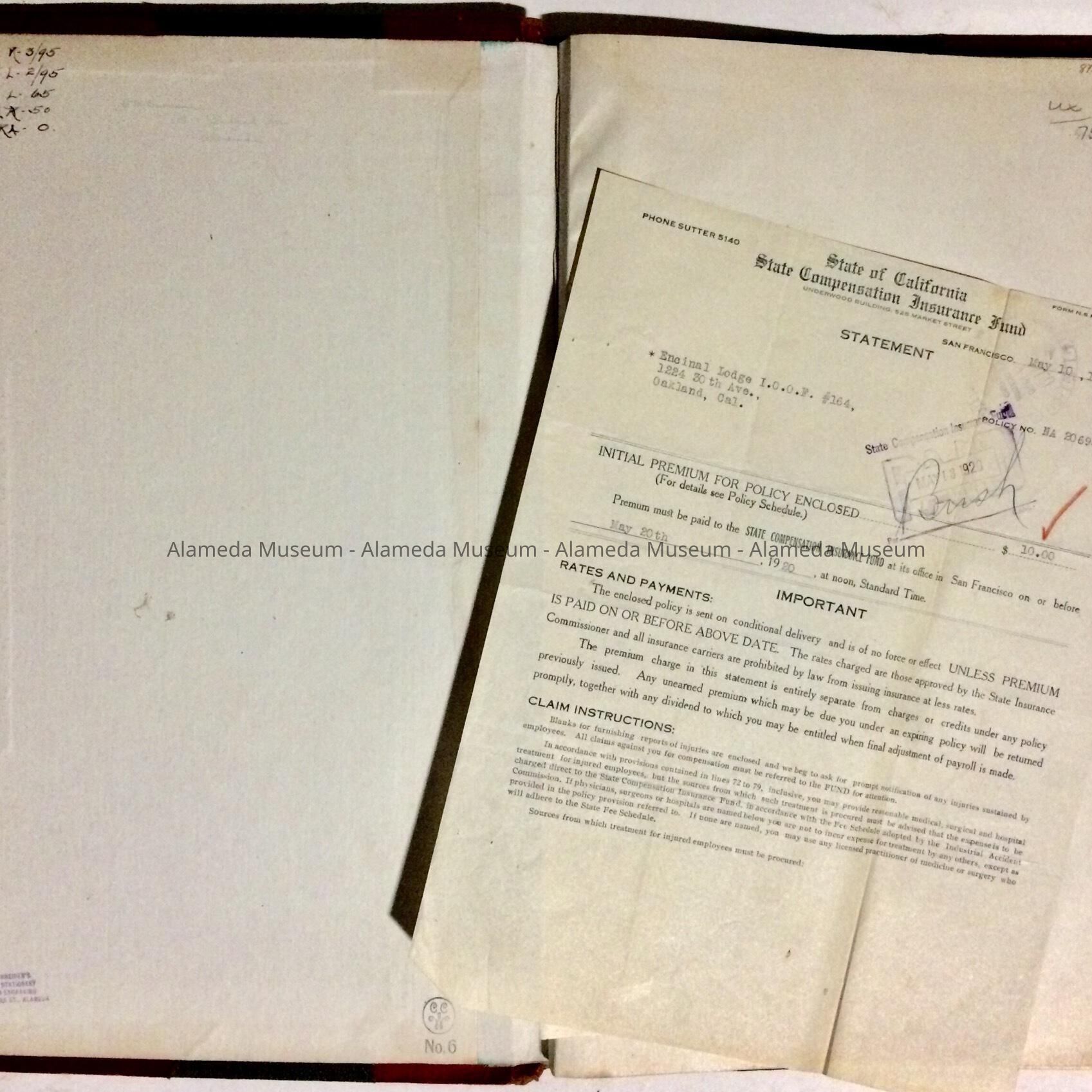 History of Object: Account book (ledger) of the Independent Order of Odd Fellows, Alameda branch #164.