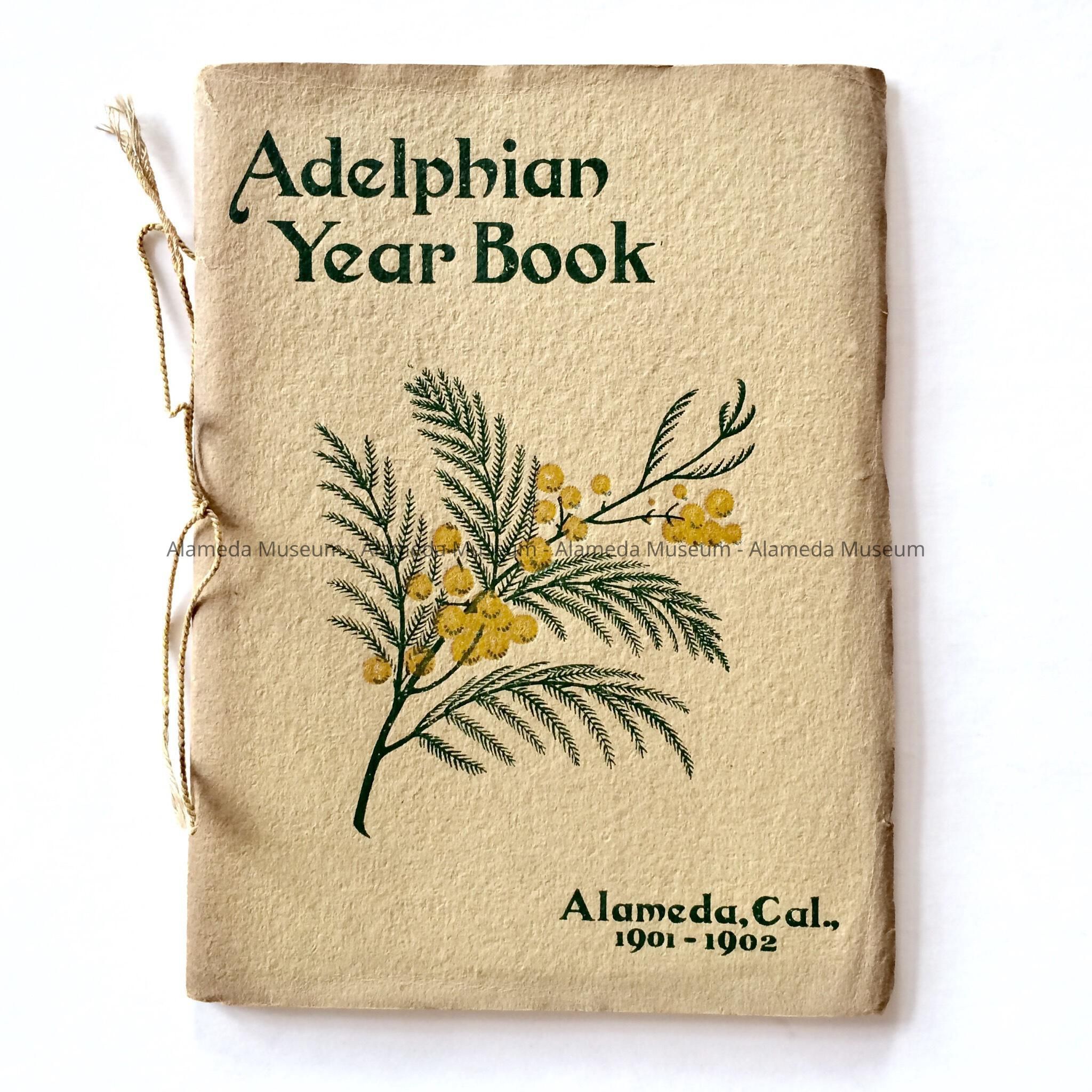 Description: Soft bound booklet with cover design featuring fern like plant in green and yellow colored type on an off white colored background. Bold printed caption "Adelphian Yearbook" also included on the cover.