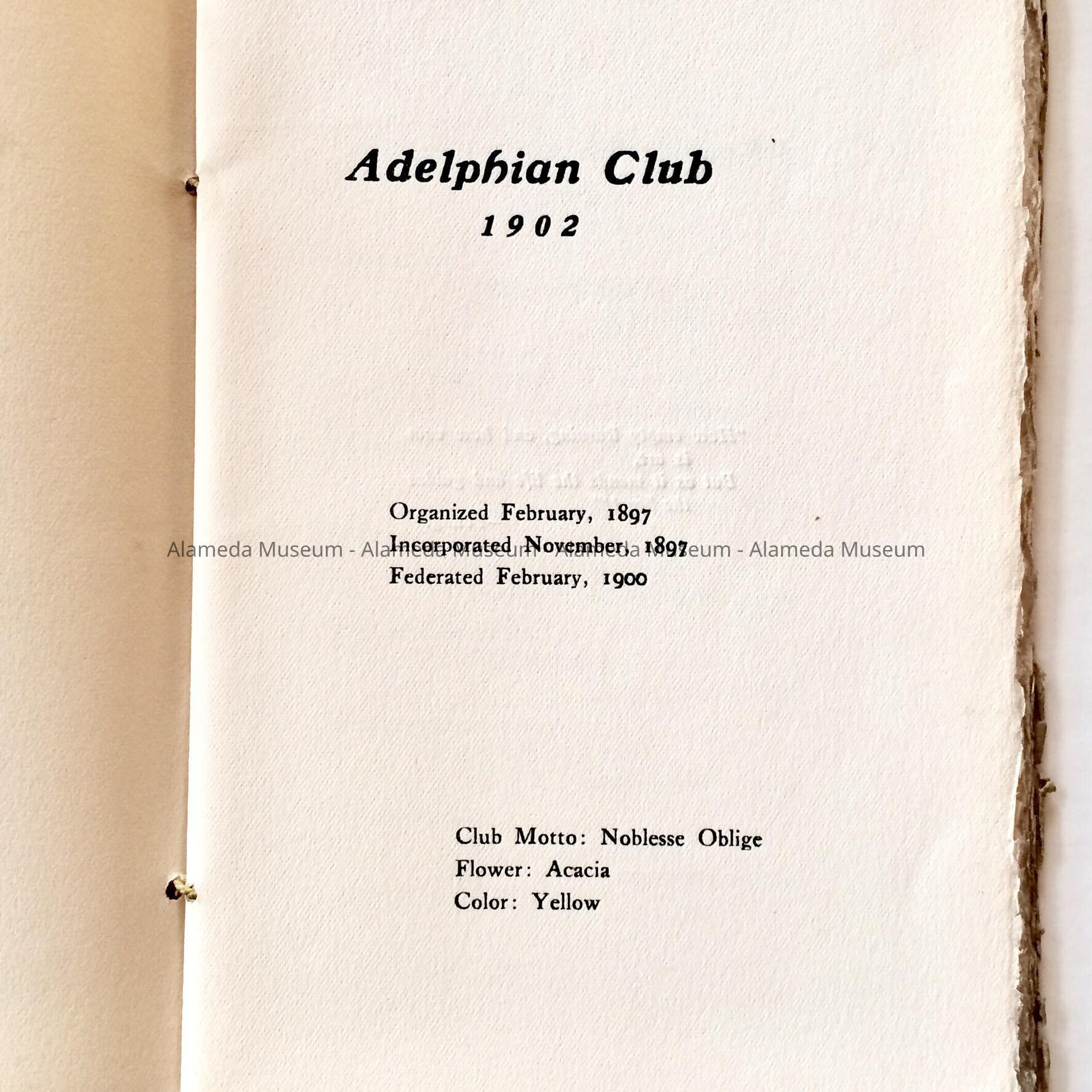 History: Adelphian Club yearbook for 1901-2 listing Board of Directors, officers, members and President's report. Member addresses are also listed.