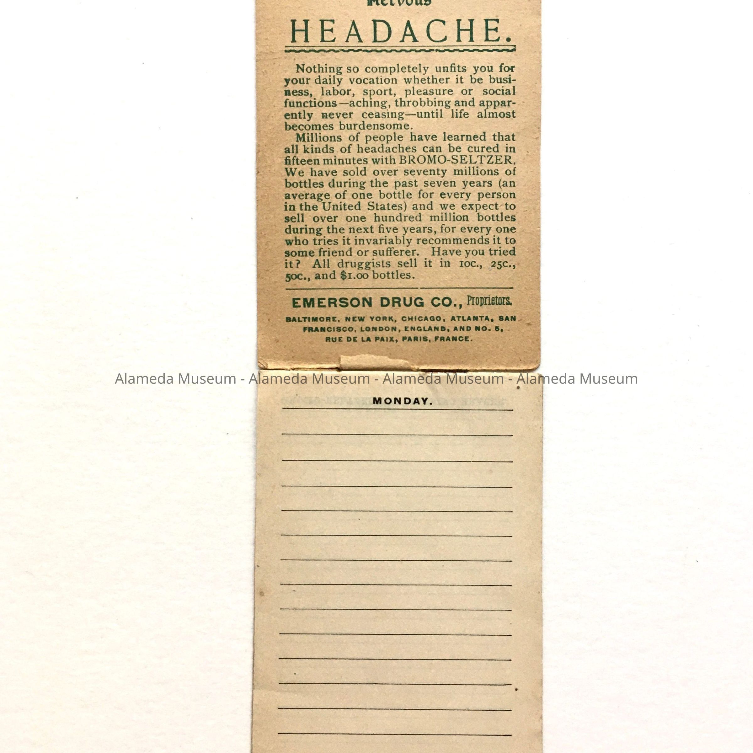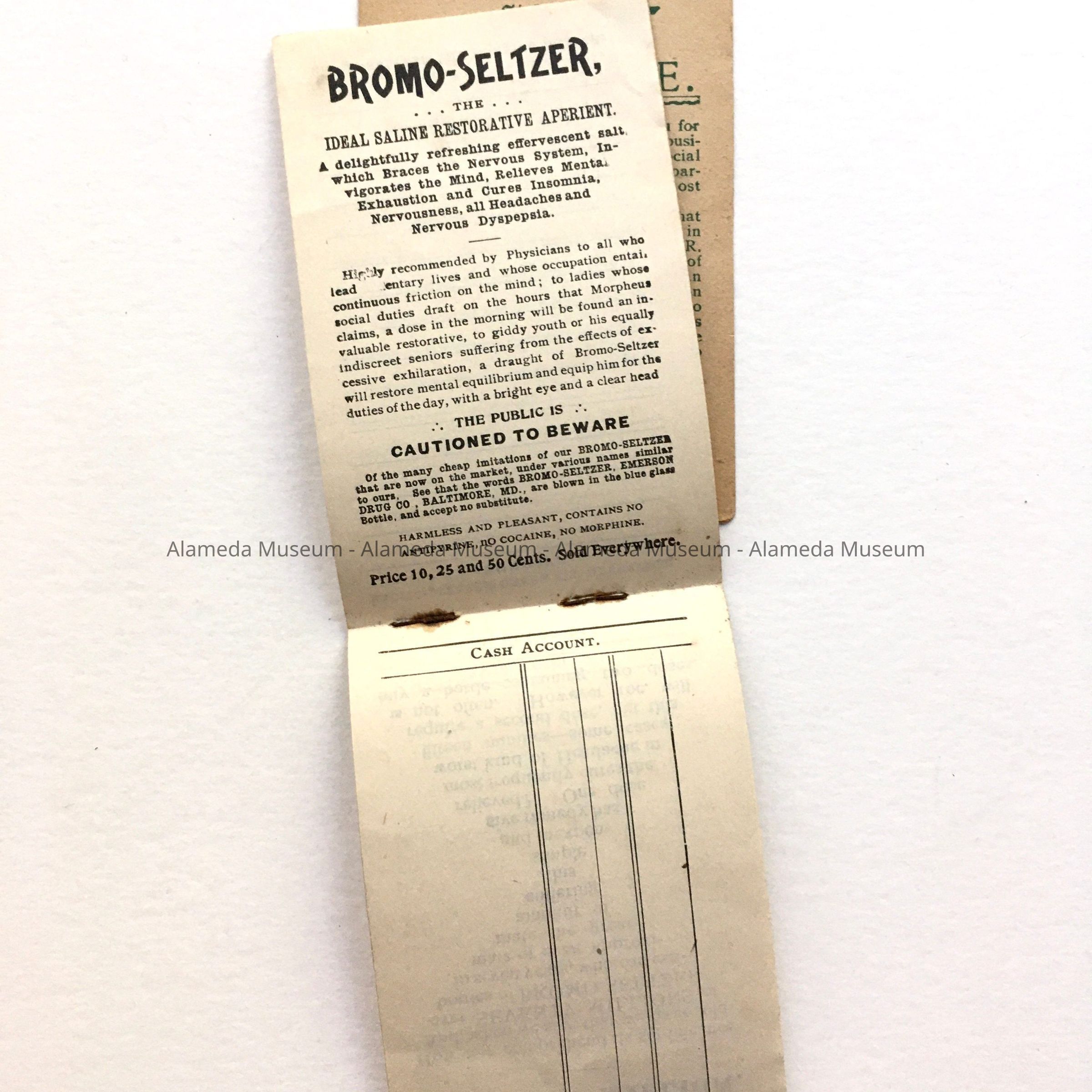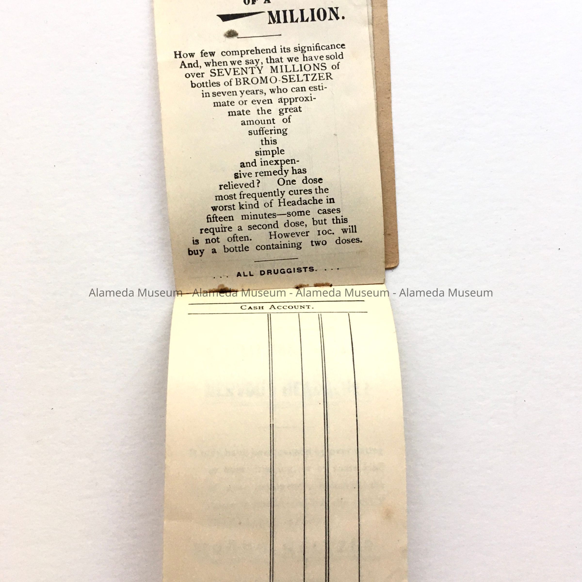 Advertising Booklet 'Daily Memorandum and Cash Account' issued by the Encinal Pharmacy, early 1900sEntry/Object ID