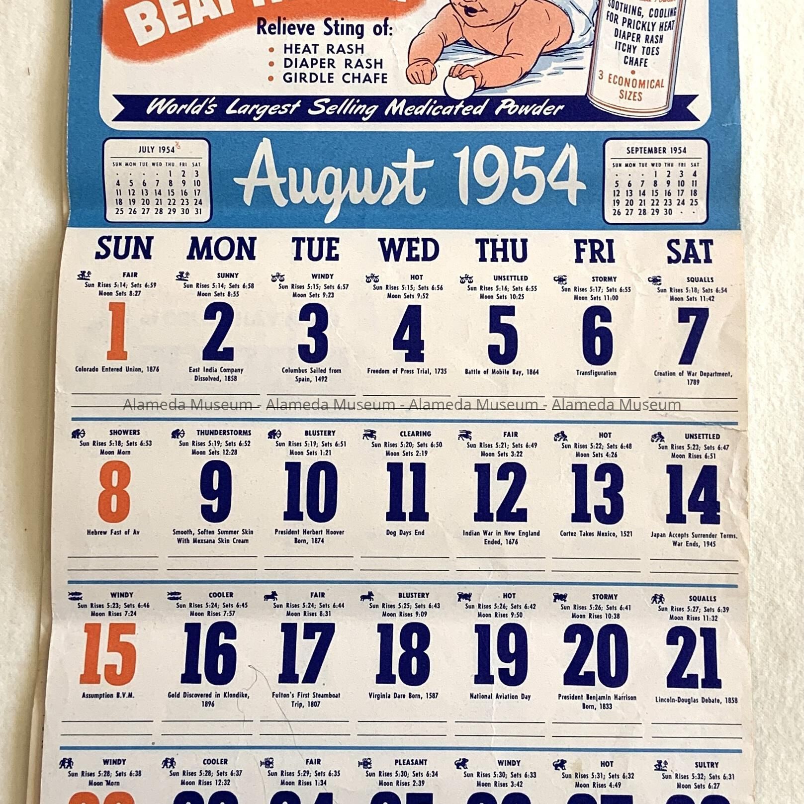 Advertising Calendar for the Alameda Drug Company, 1954Entry/Object ID