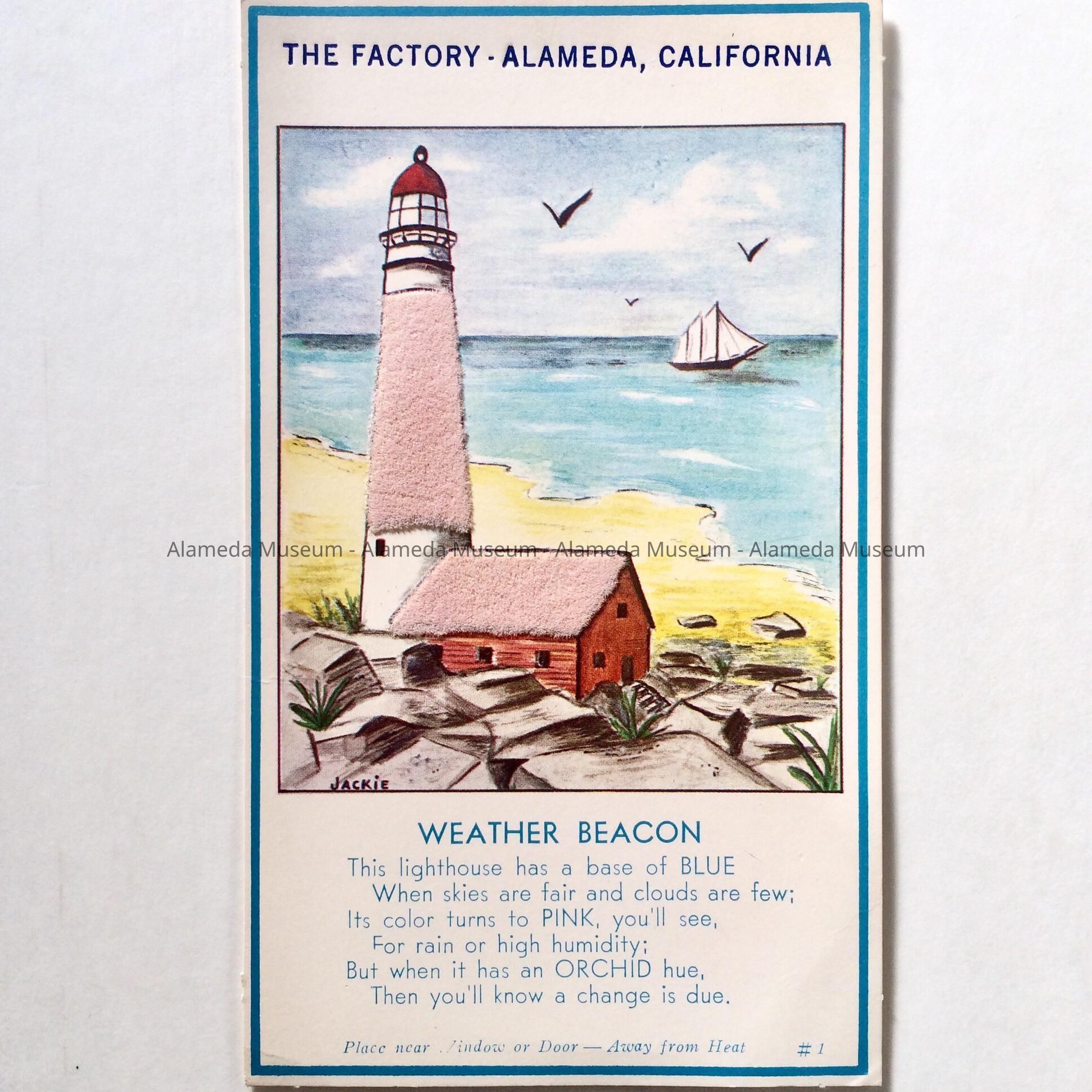 HISTORY OF OBJECT: AN ILLUSTRATED CARD WHICH SERVES AS A FORECASTER OF WEATHER, ISSUED BY THE FACTORY, ALAMEDA.
